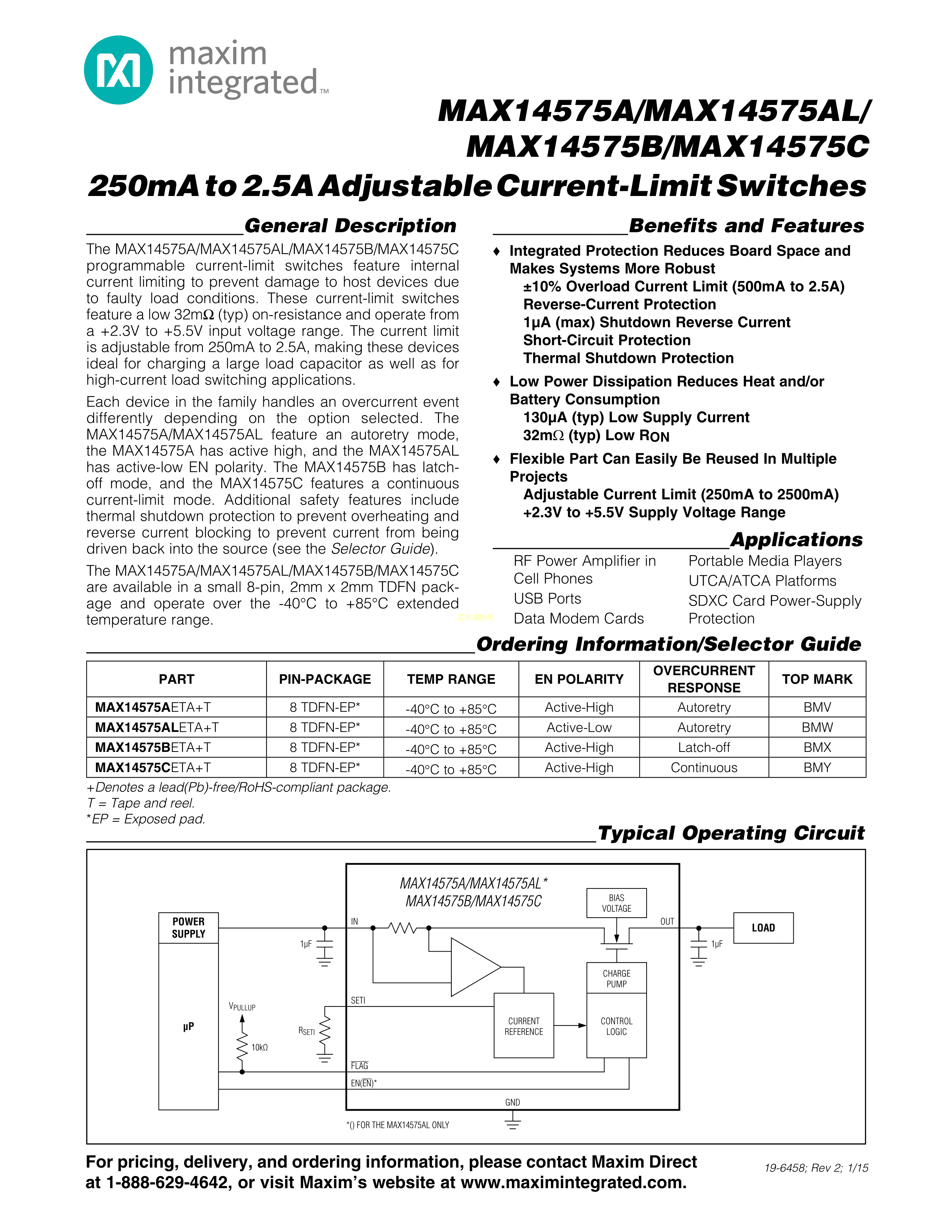 MAX14575AETA+T数据手册TDFN-8_EP封装MAXIM(美信)PDF规格书,中英文下载
