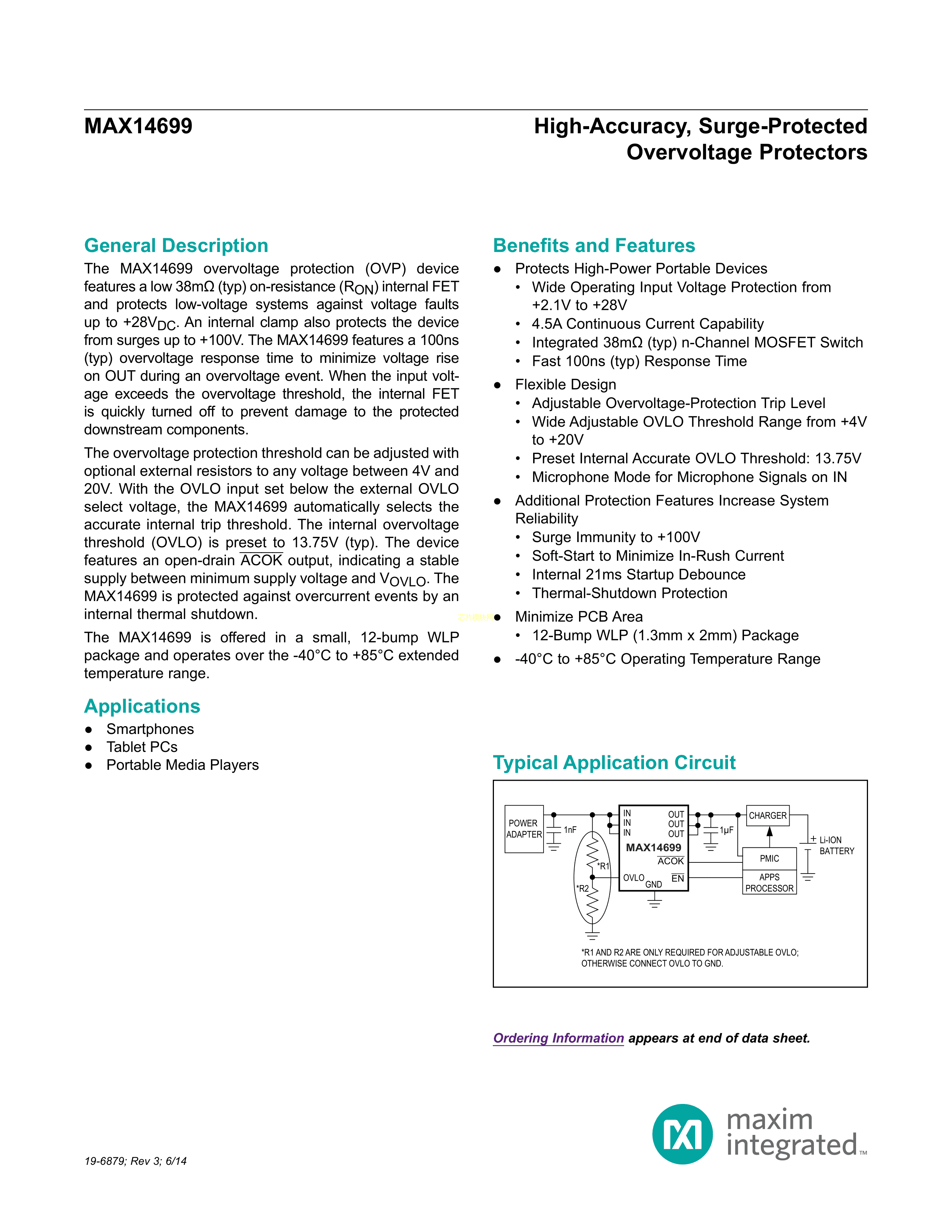 MAX14699EWC+T数据手册WLP-12封装MAXIM(美信)PDF规格书,中英文下载