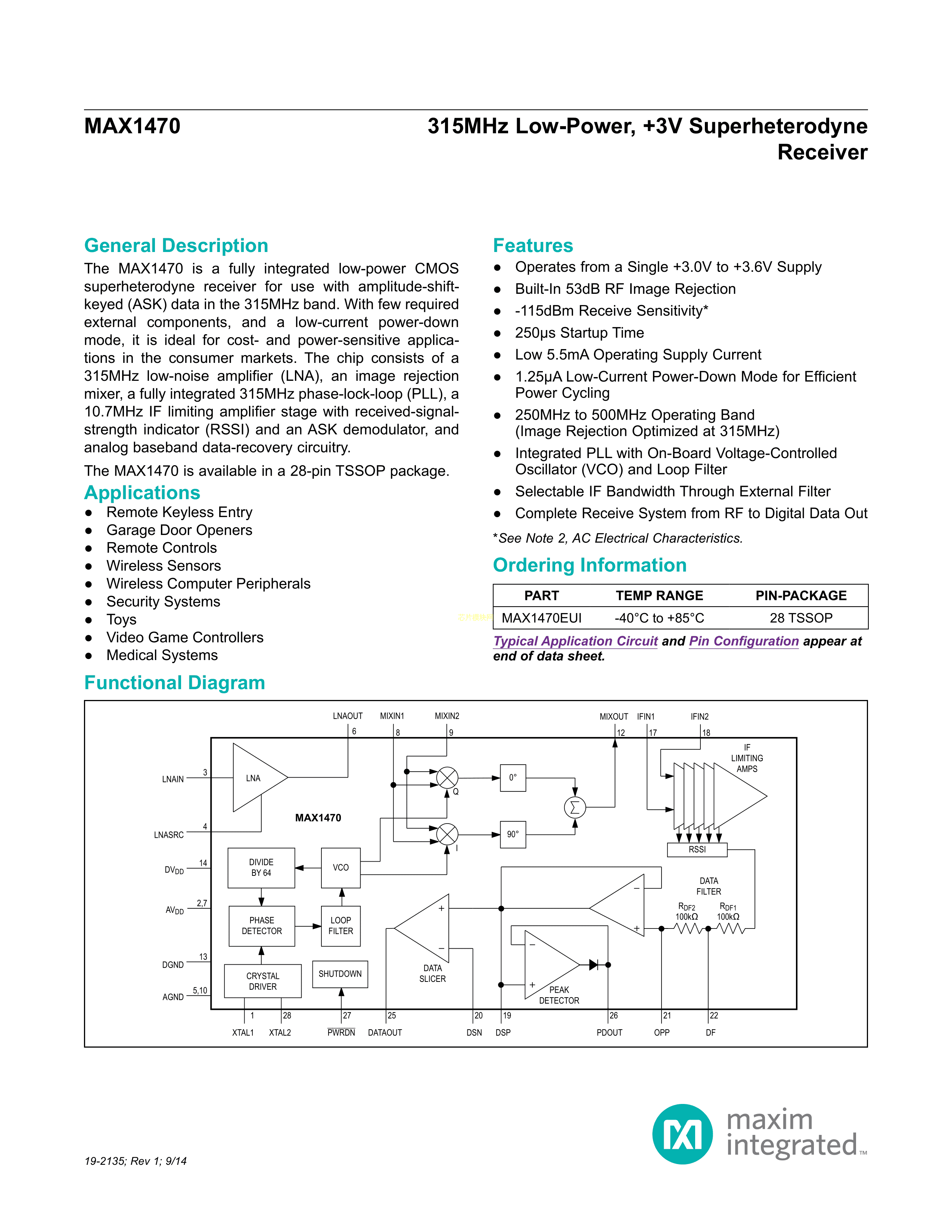 MAX1470EUI+T数据手册TSSOP-28封装MAXIM(美信)PDF规格书,中英文下载