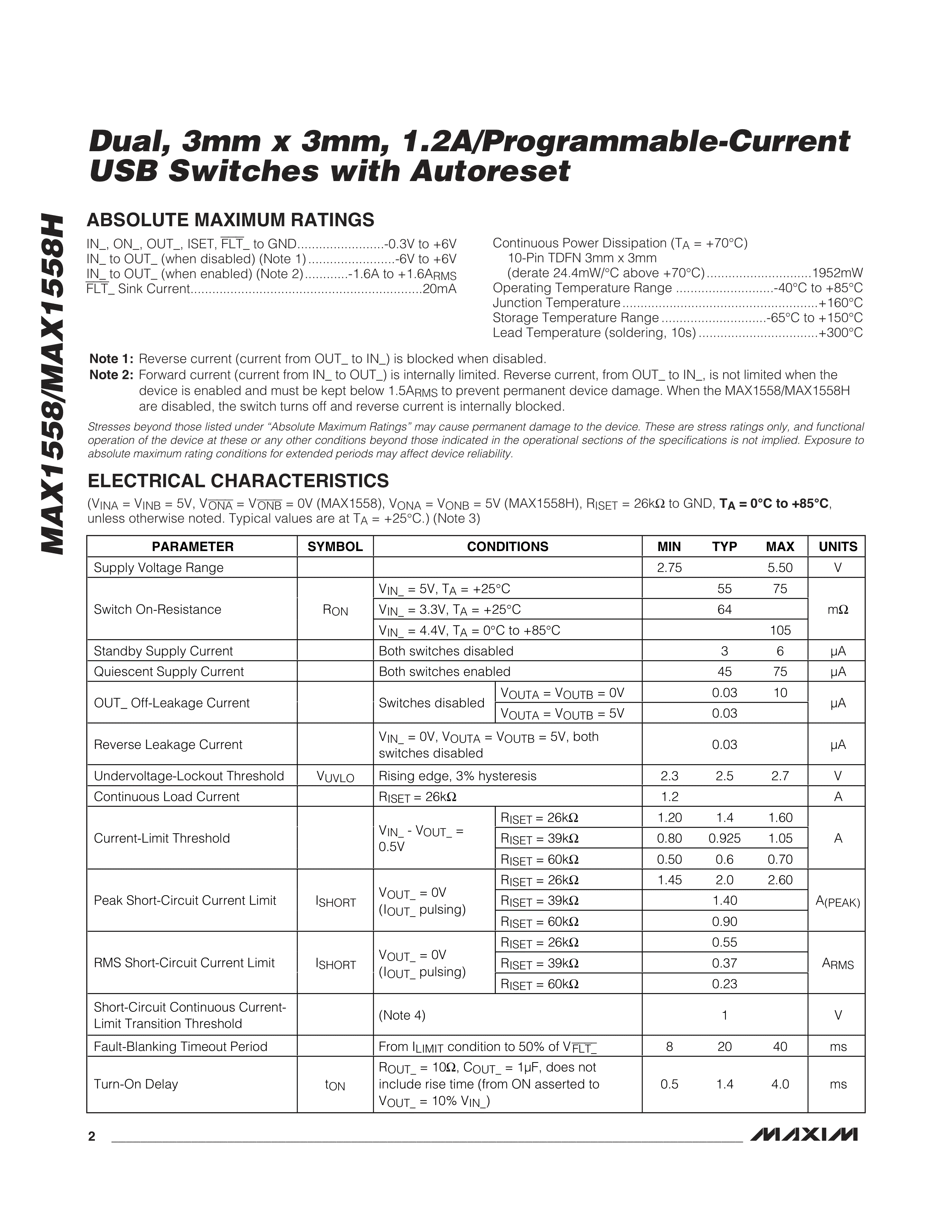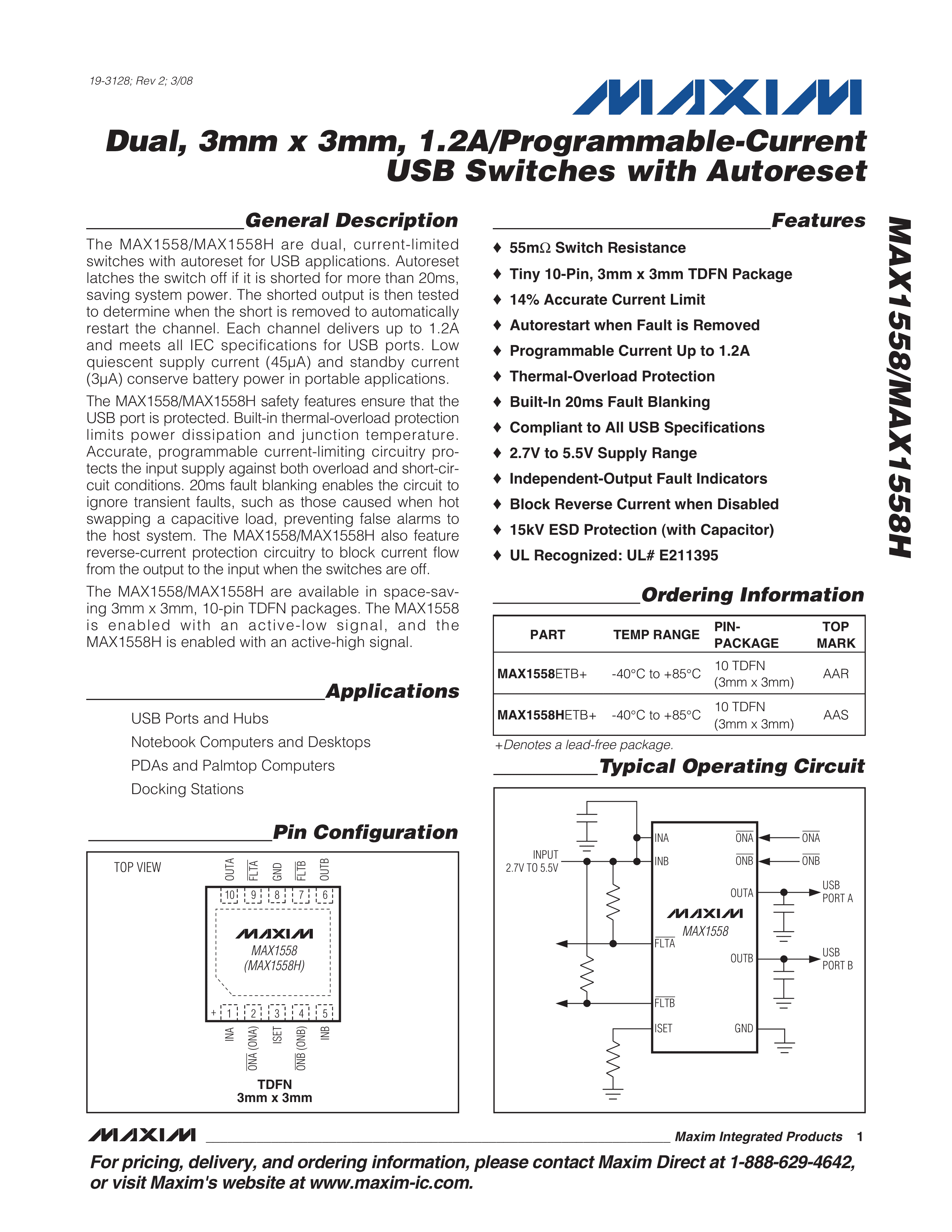MAX1558HETB+T数据手册TDFN-10_EP(2x3)封装MAXIM(美信)PDF规格书,