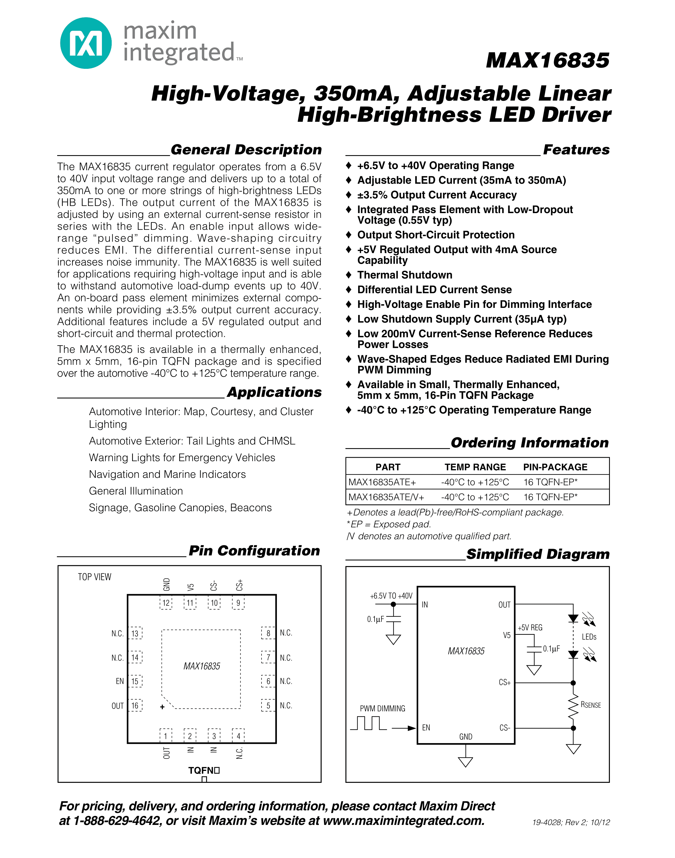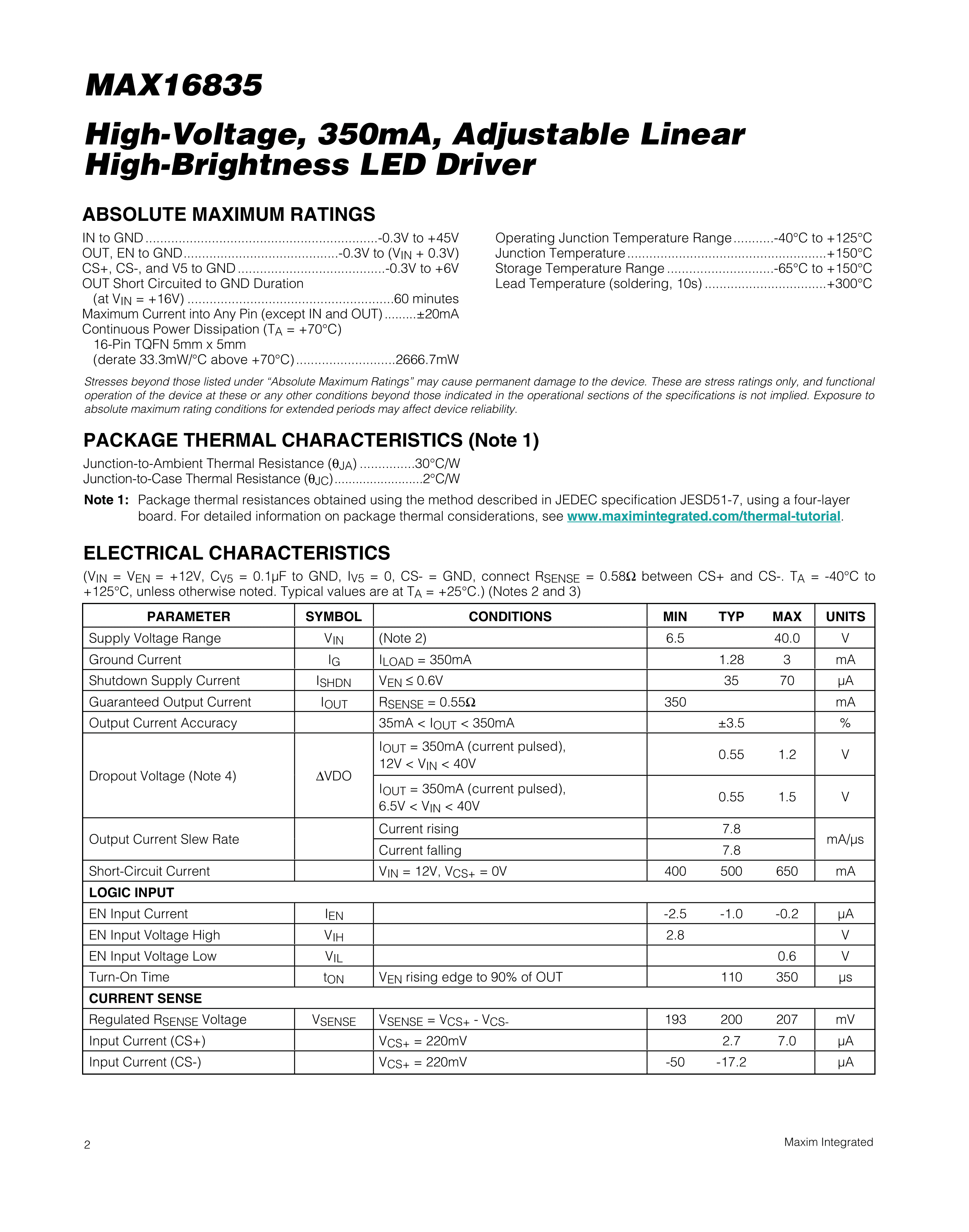 MAX16835ATE+T数据手册TQFN-16(5x5)封装MAXIM(美信)PDF规格书,中英文