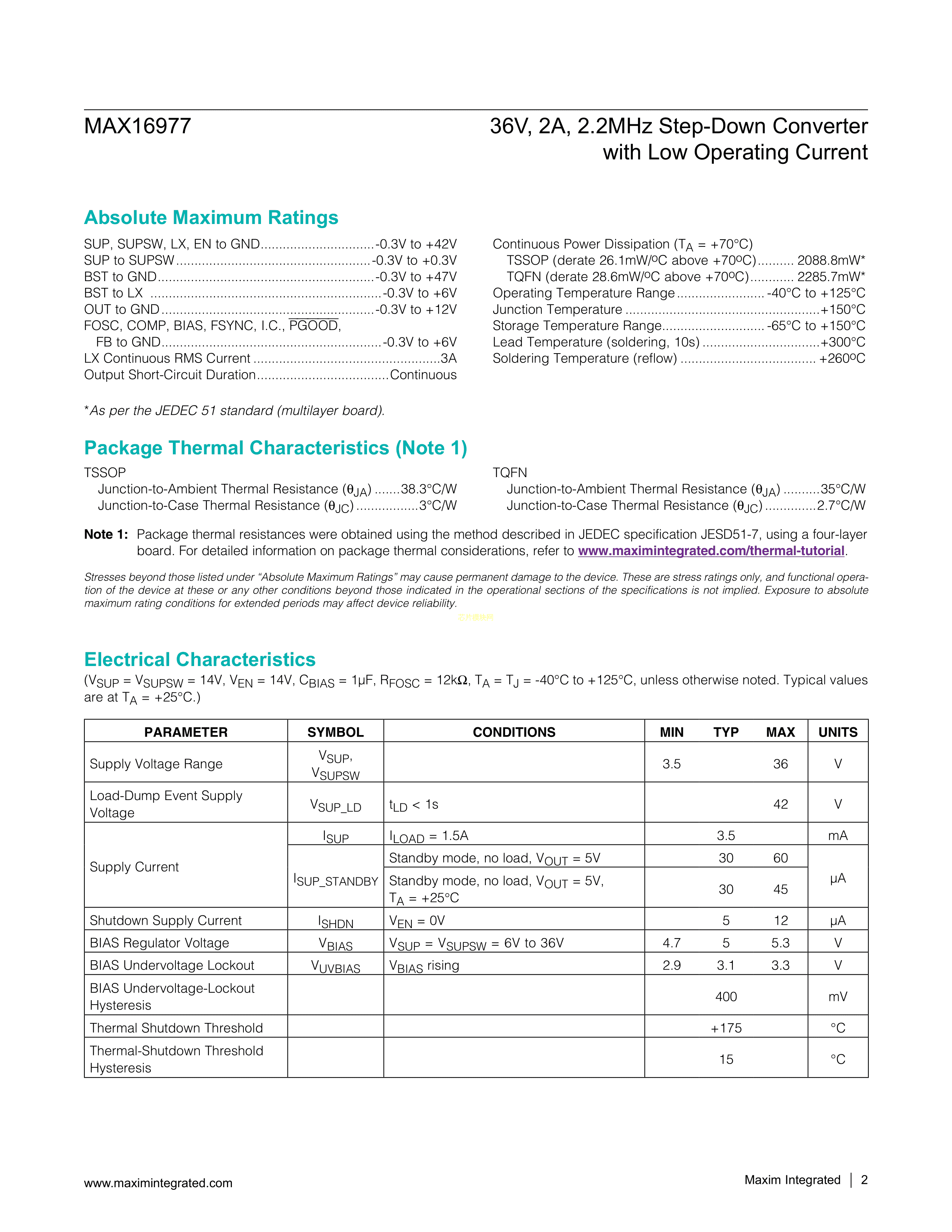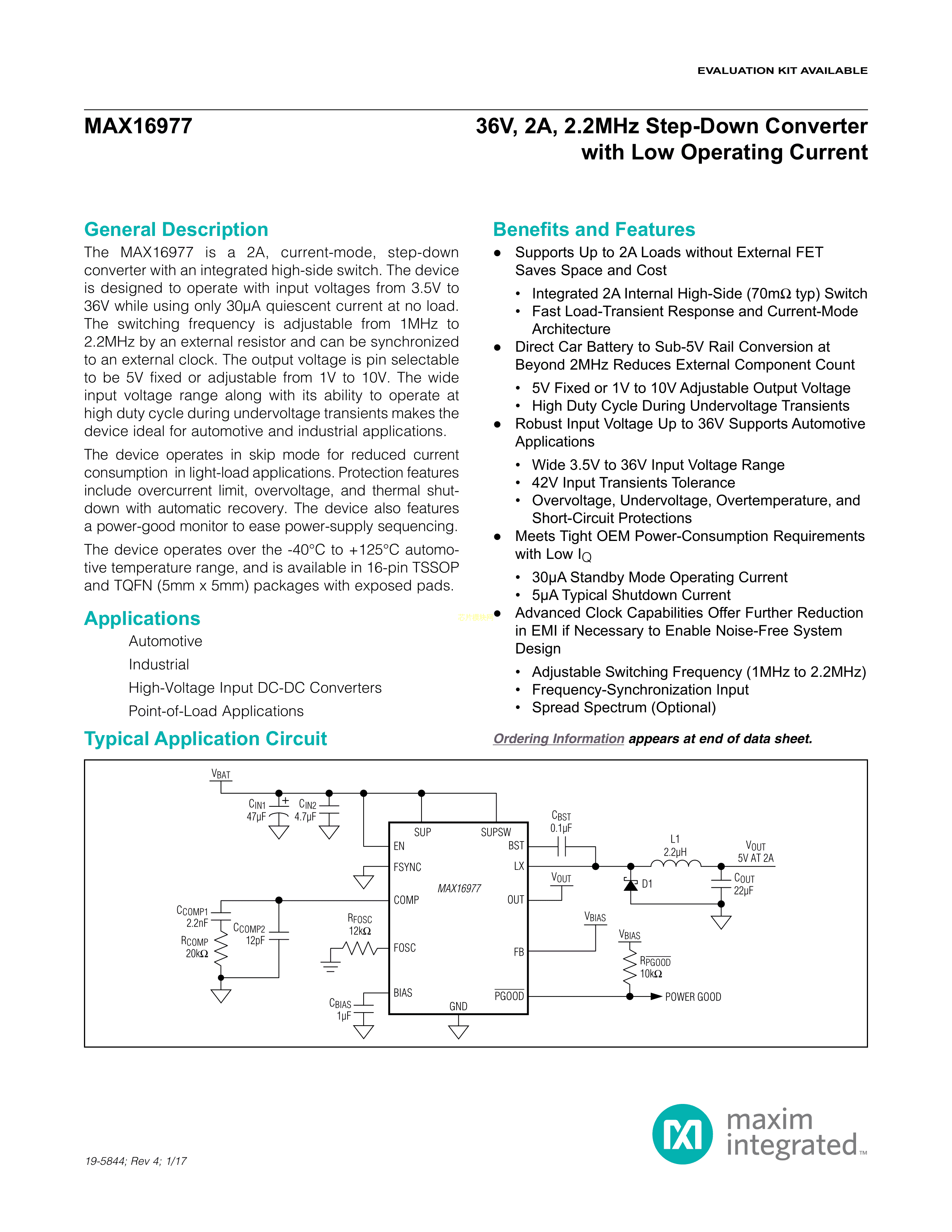 MAX16977RATE+T数据手册TQFN-16(5x5)封装MAXIM(美信)PDF规格书,中英
