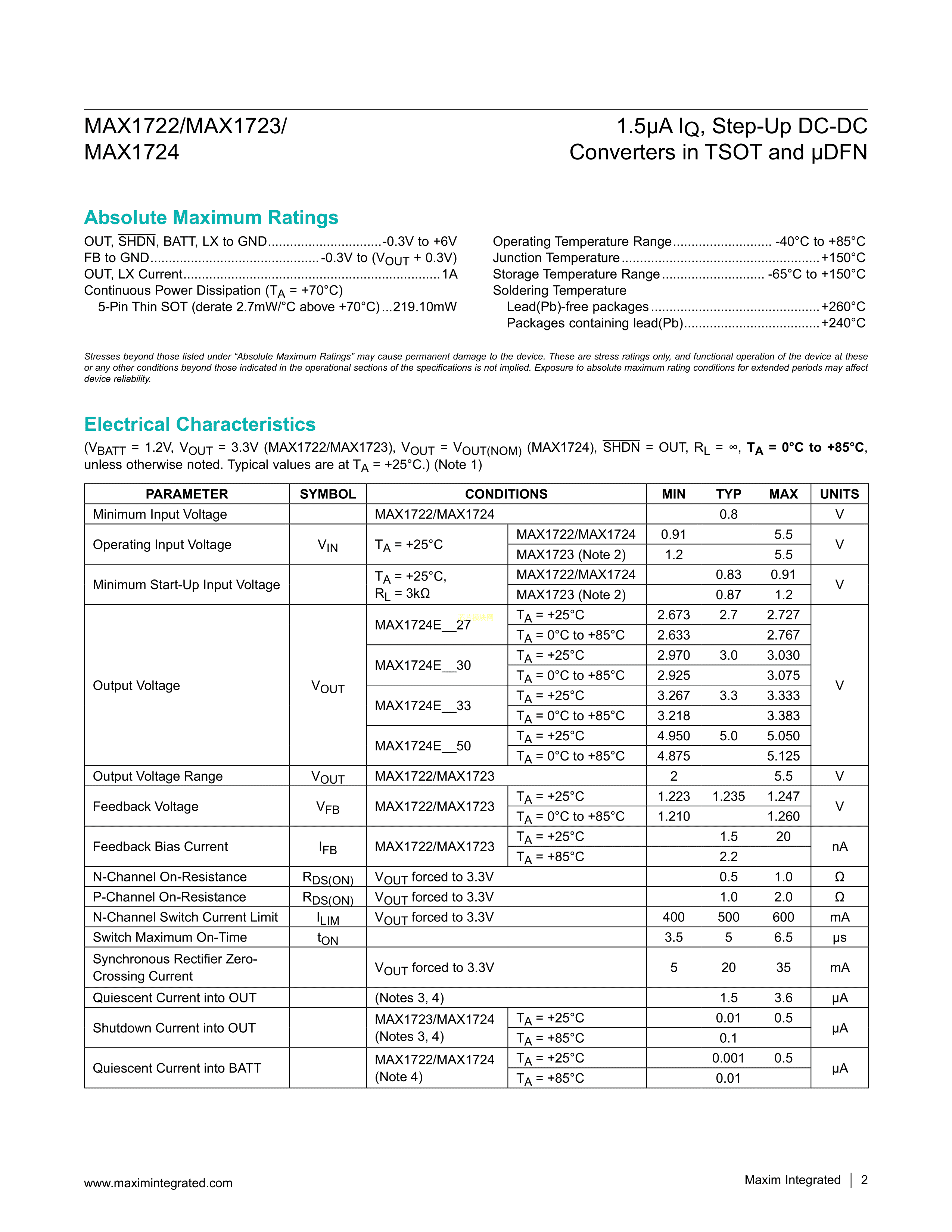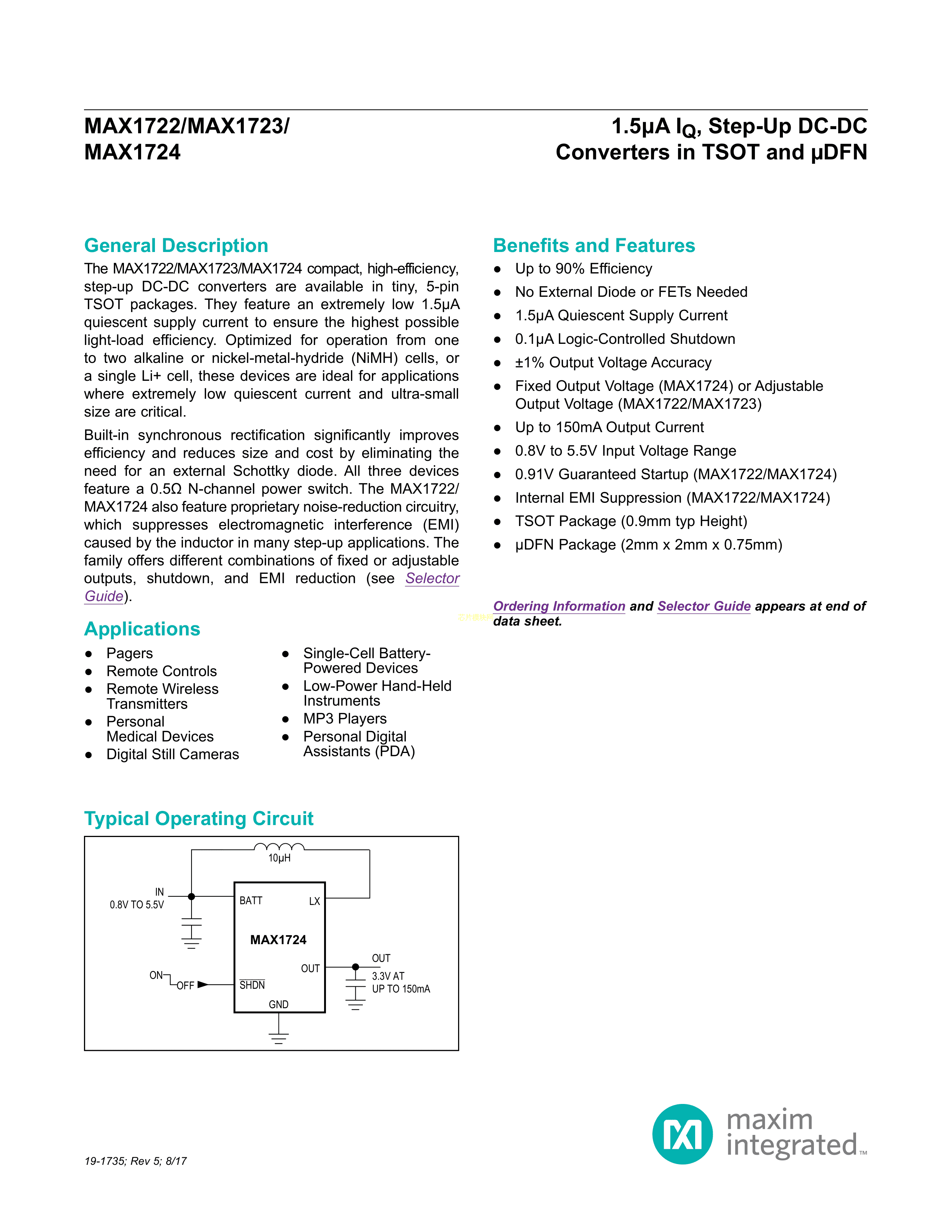 MAX1724EZK30+T数据手册TSOT-23-5封装MAXIM(美信)PDF规格书,中英文下载