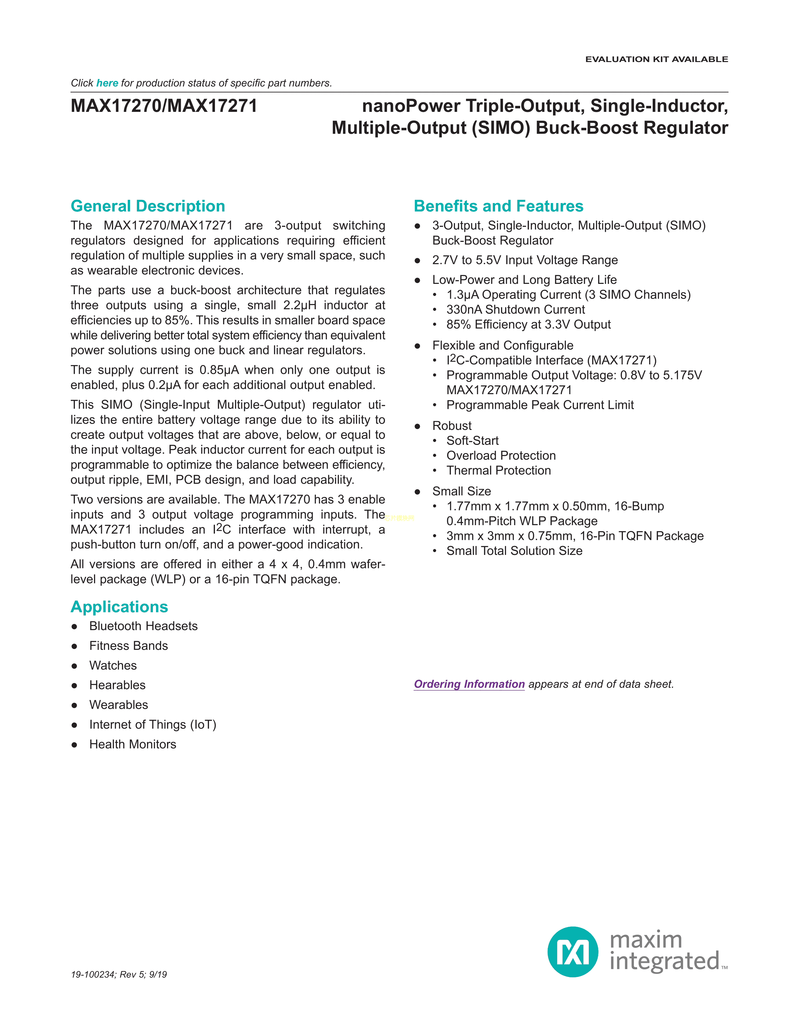 MAX17270ENE+T数据手册WLP-16(1.77x1.77)封装MAXIM(美信)PDF规格