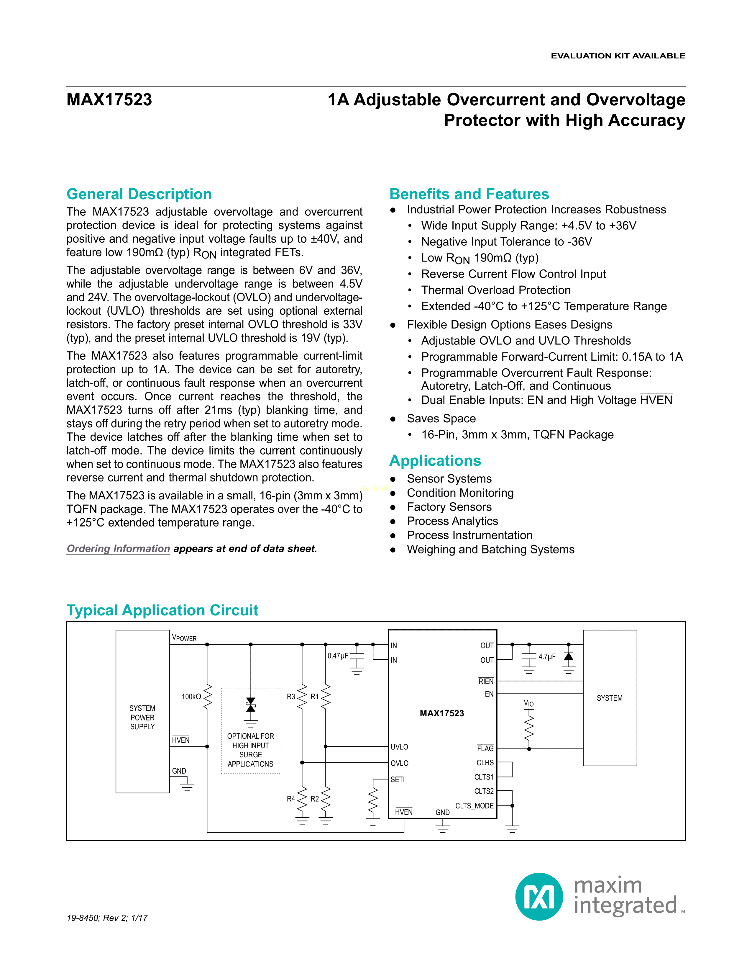 MAX17523ATE+T数据手册TQFN-16_EP(3x3)封装MAXIM(美信)PDF规格书,