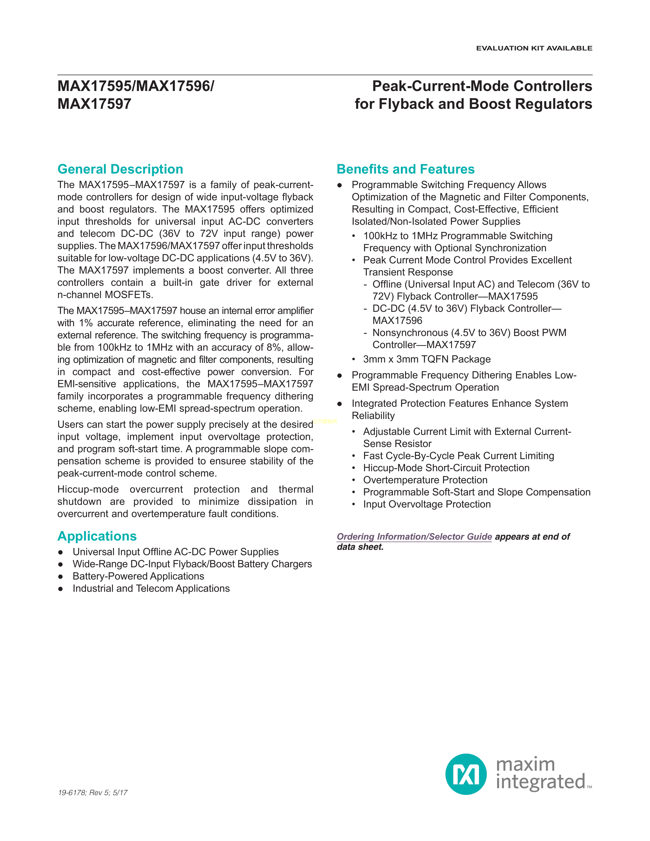 MAX17596ATE+T数据手册TQFN-16(3x3)封装MAXIM(美信)PDF规格书,中英文