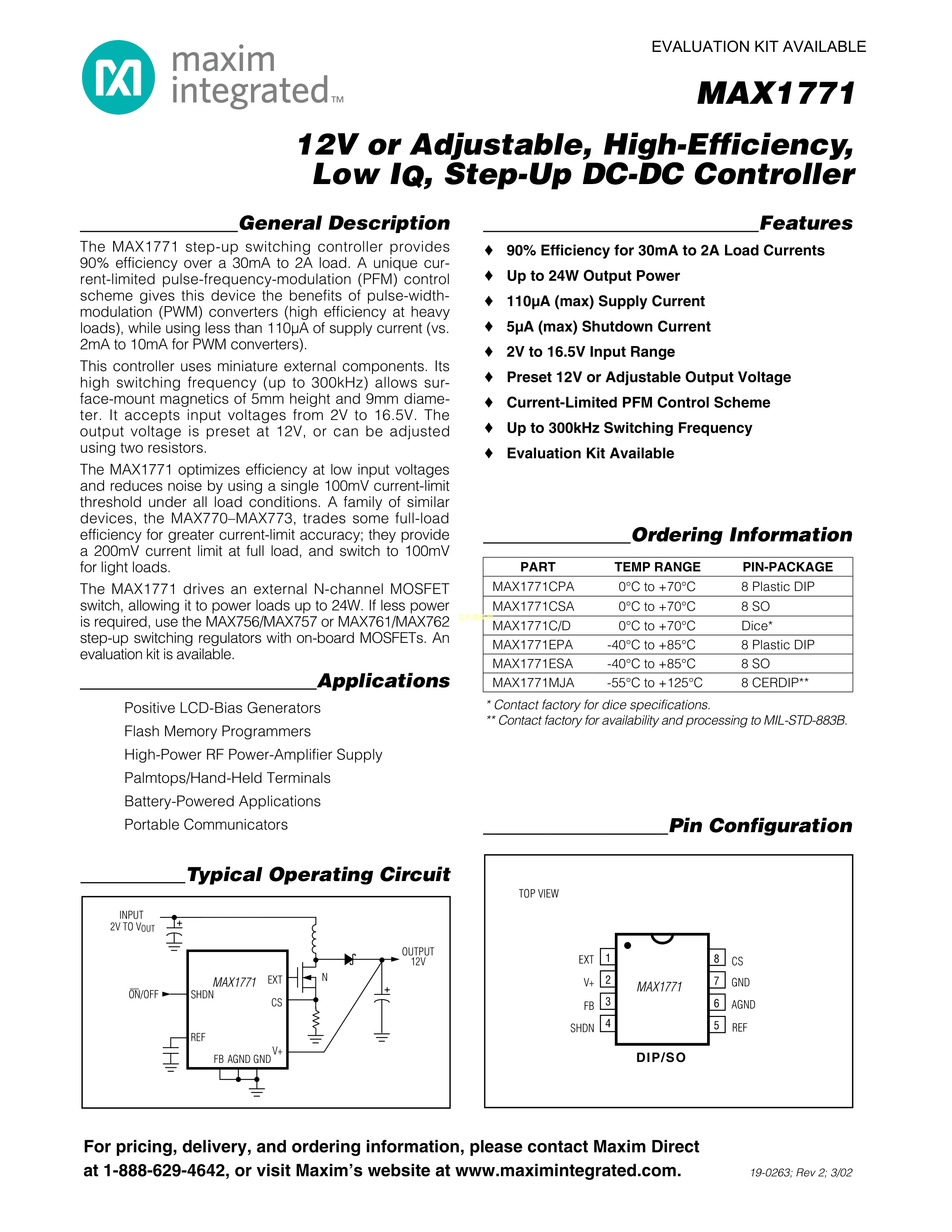 MAX1771ESA+数据手册SOIC-8封装MAXIM(美信)PDF规格书,中英文下载