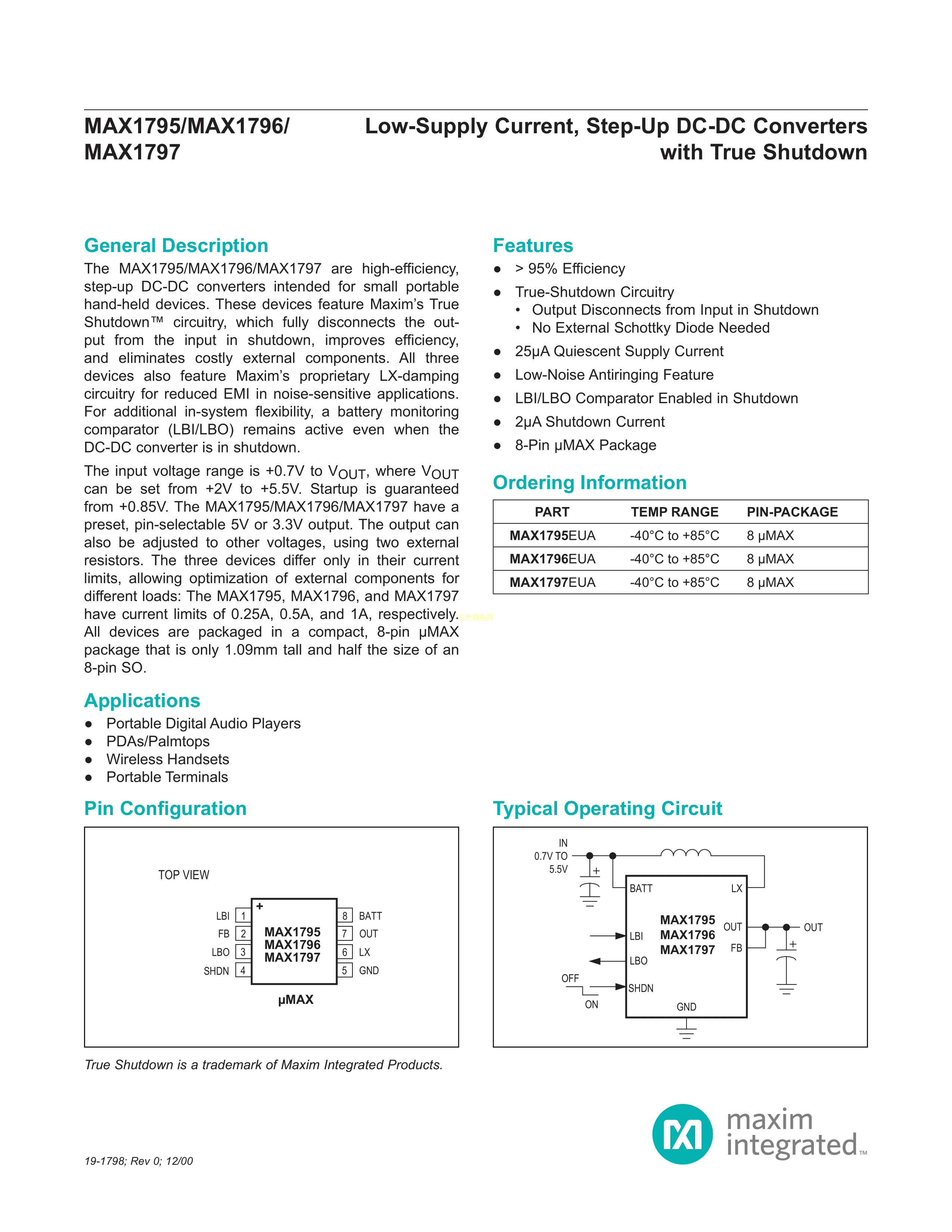 MAX1795EUA+数据手册uMAX-8封装MAXIM(美信)PDF规格书,中英文下载