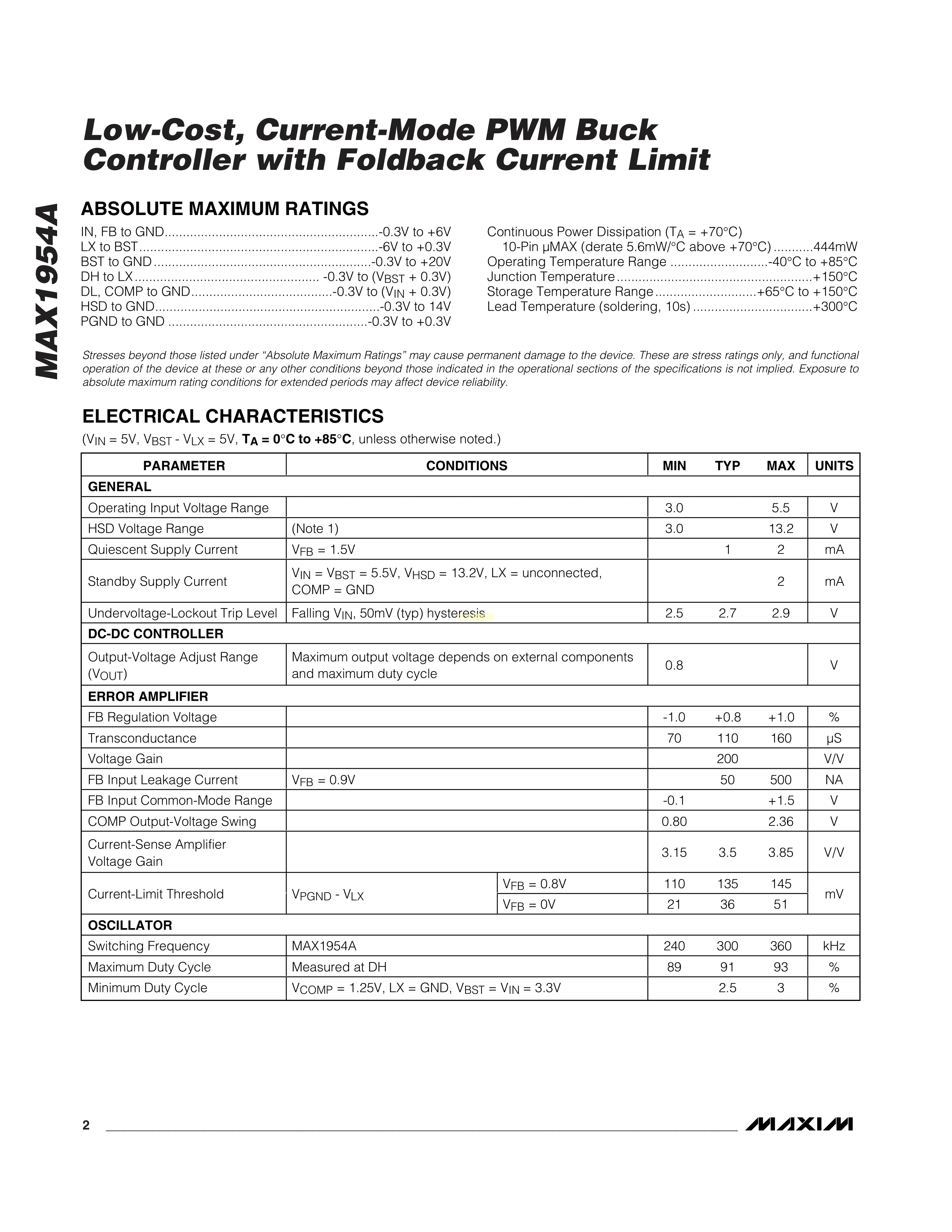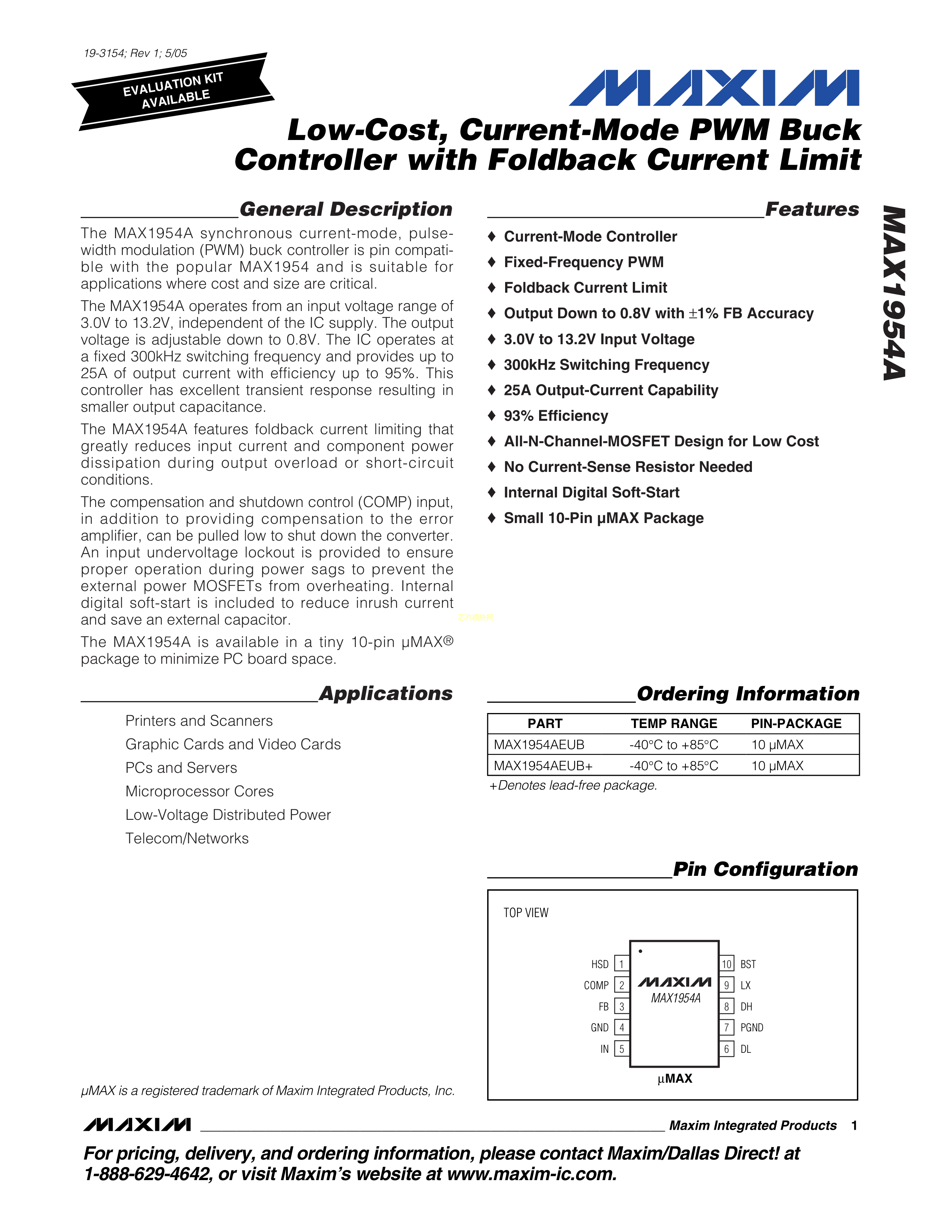 MAX1954AEUB+T数据手册uMAX-10封装MAXIM(美信)PDF规格书,中英文下载