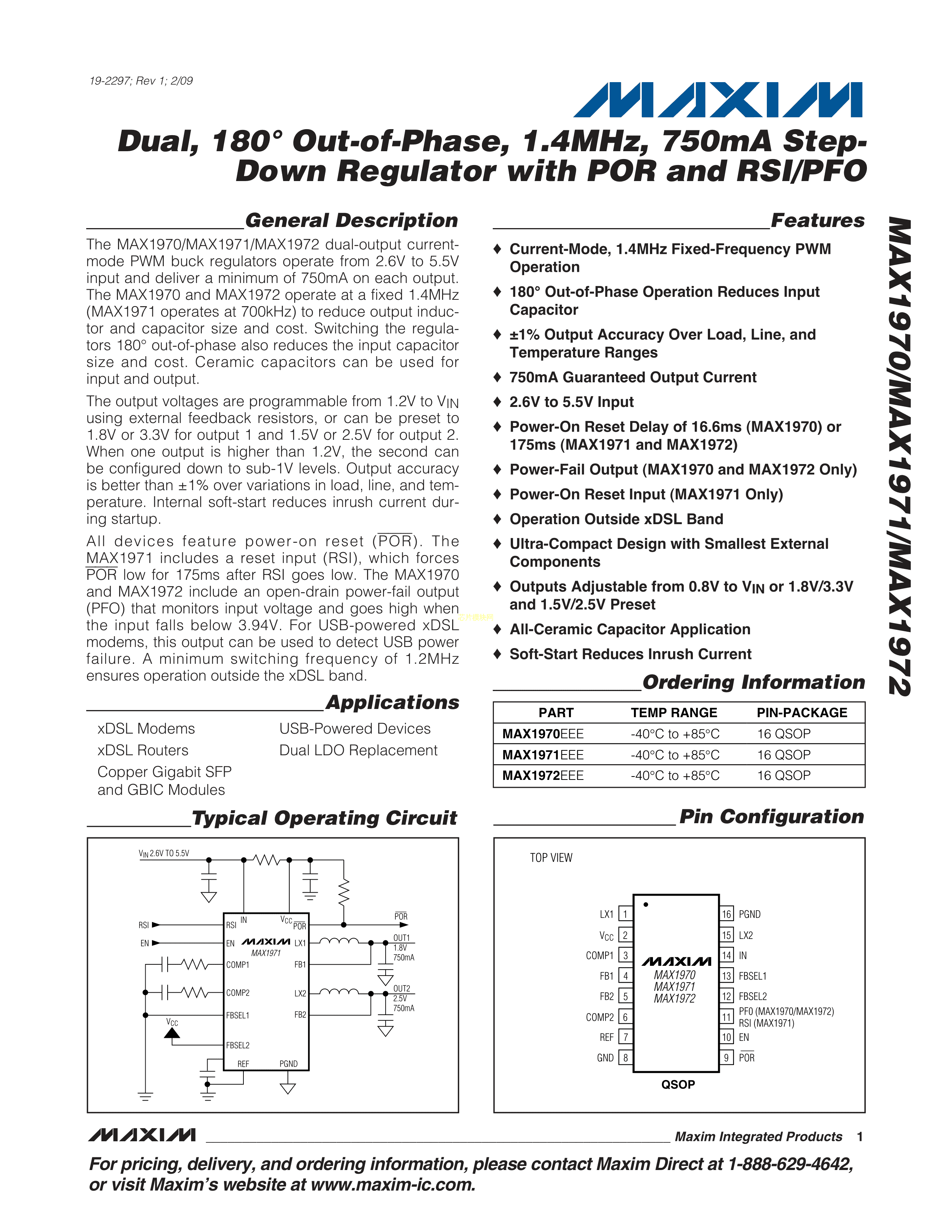 MAX1970EEE+T数据手册QSOP-16封装MAXIM(美信)PDF规格书,中英文下载