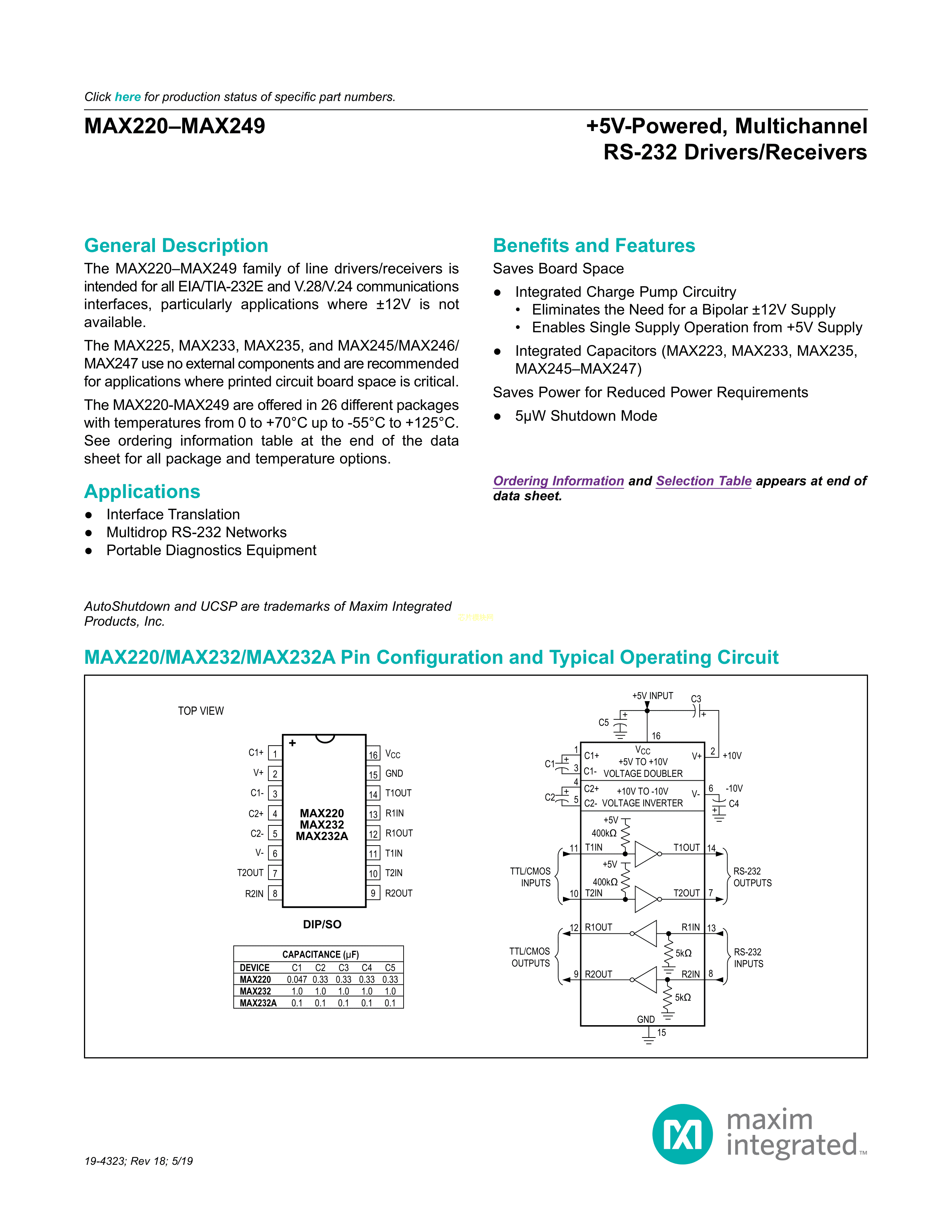 MAX239ENG+数据手册PDIP-24封装MAXIM(美信)PDF规格书,中英文下载