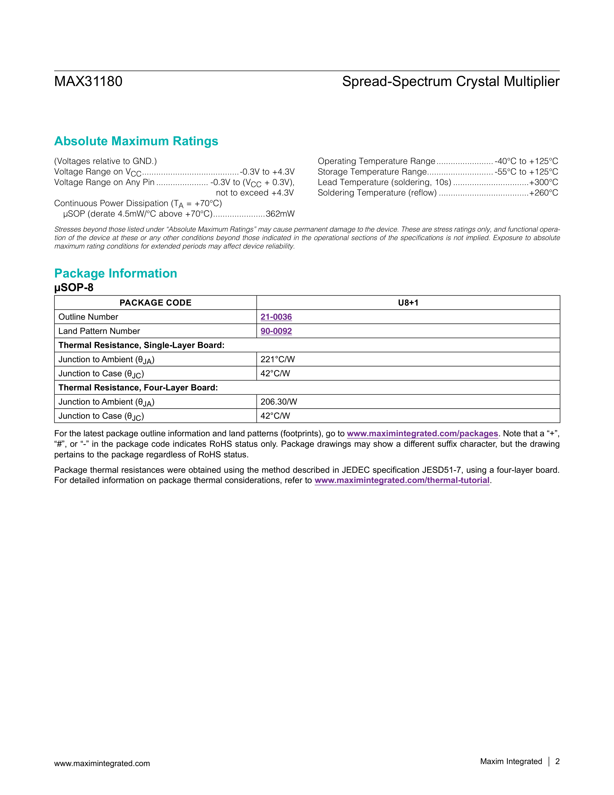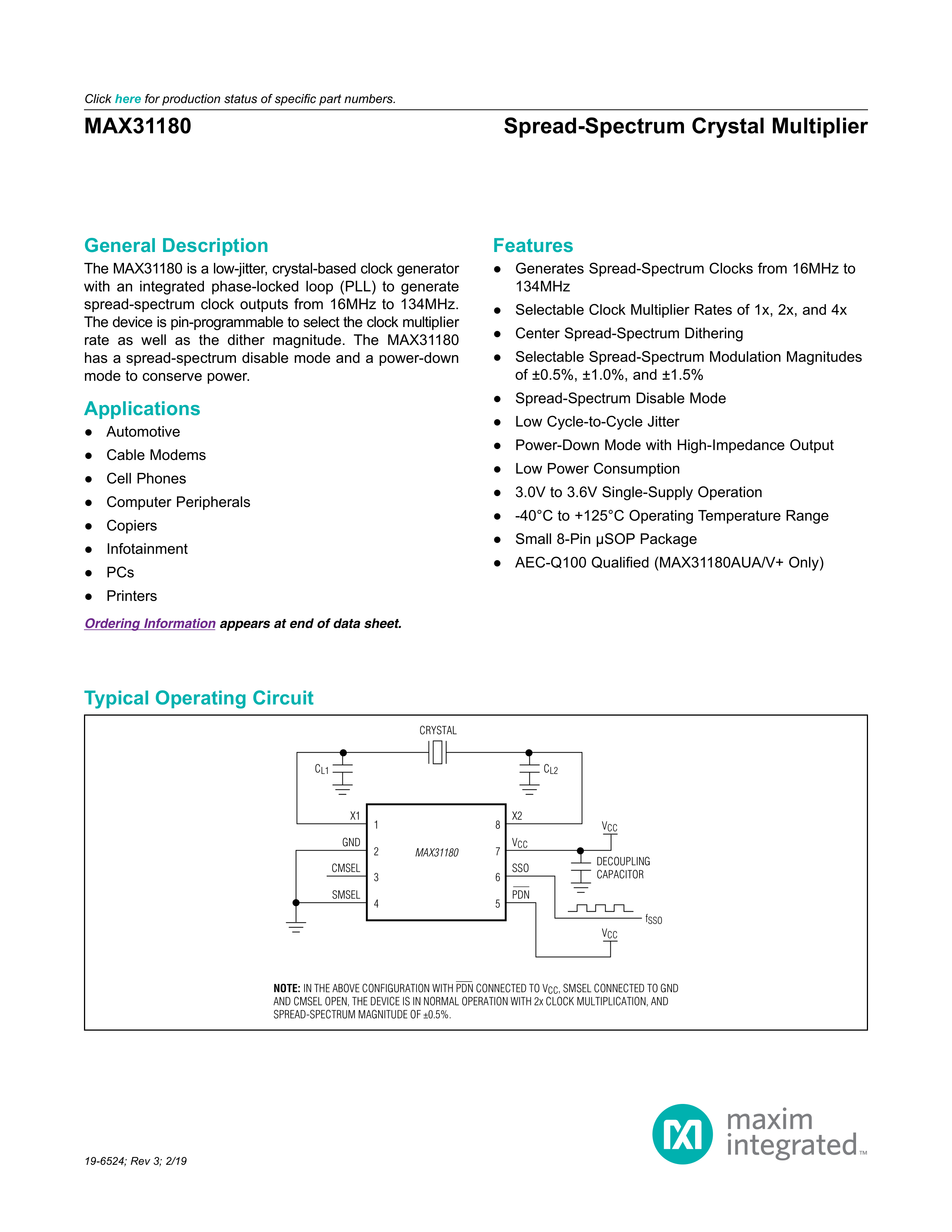 MAX31180AUA+T数据手册USOP-8封装MAXIM(美信)PDF规格书,中英文下载