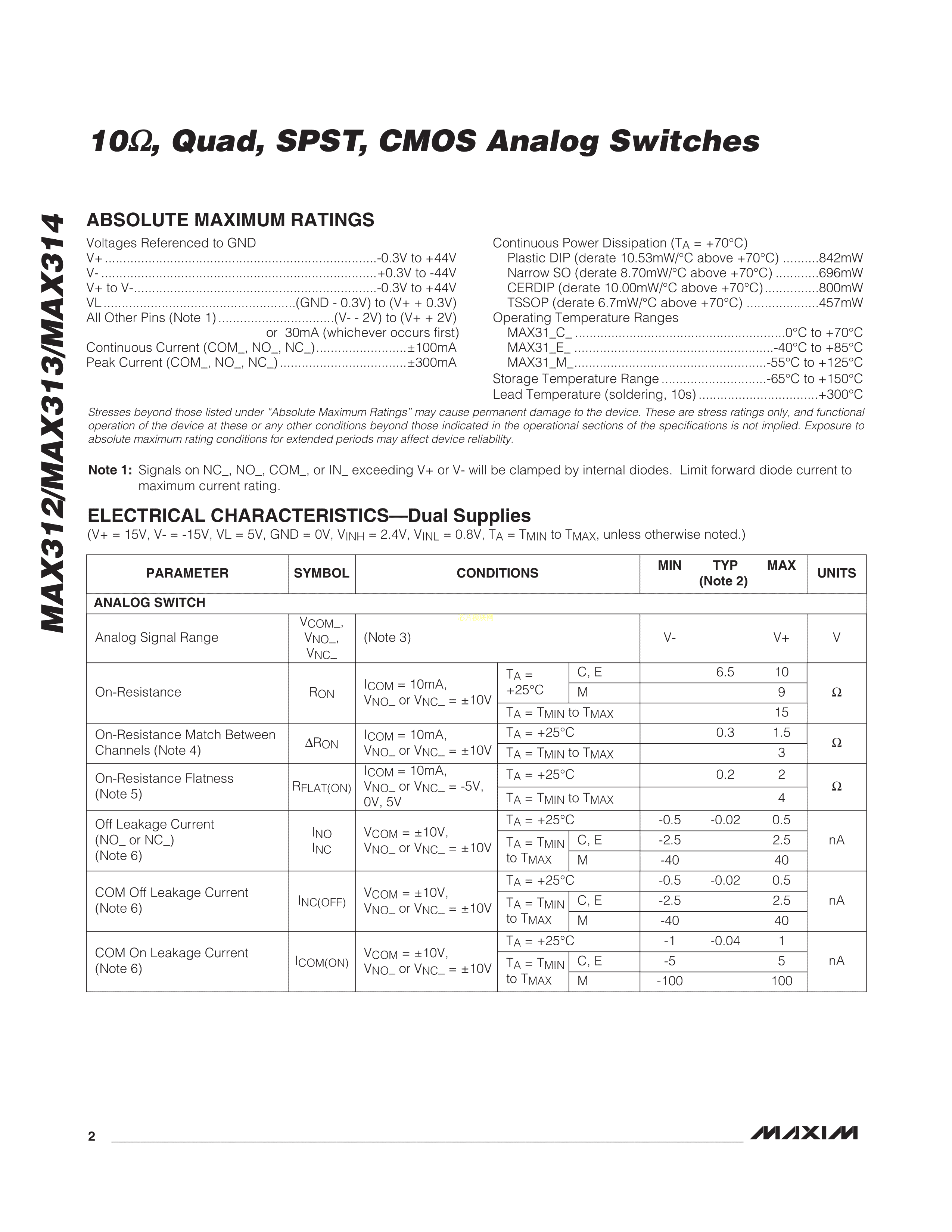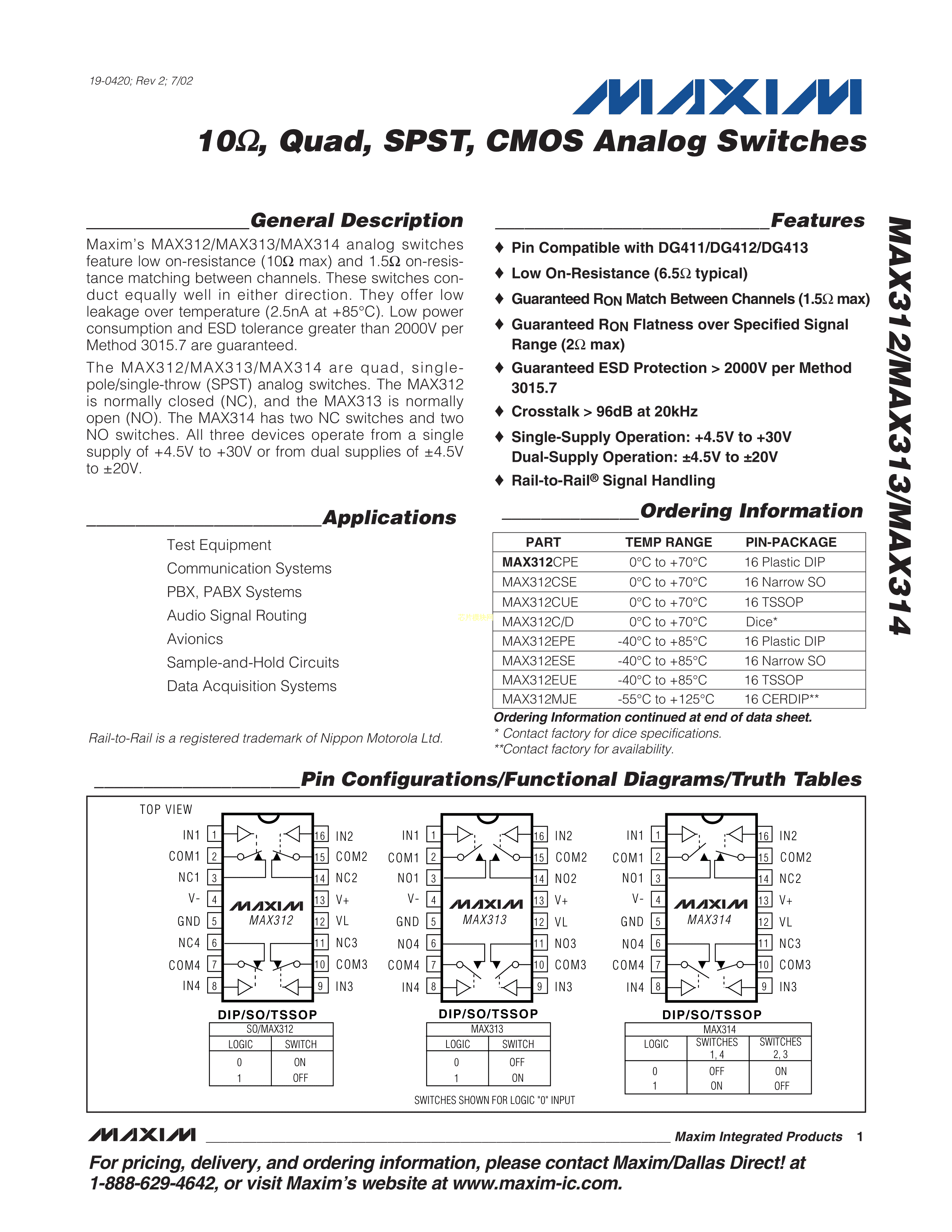MAX314EUE+数据手册TSSOP-16封装MAXIM(美信)PDF规格书,中英文下载