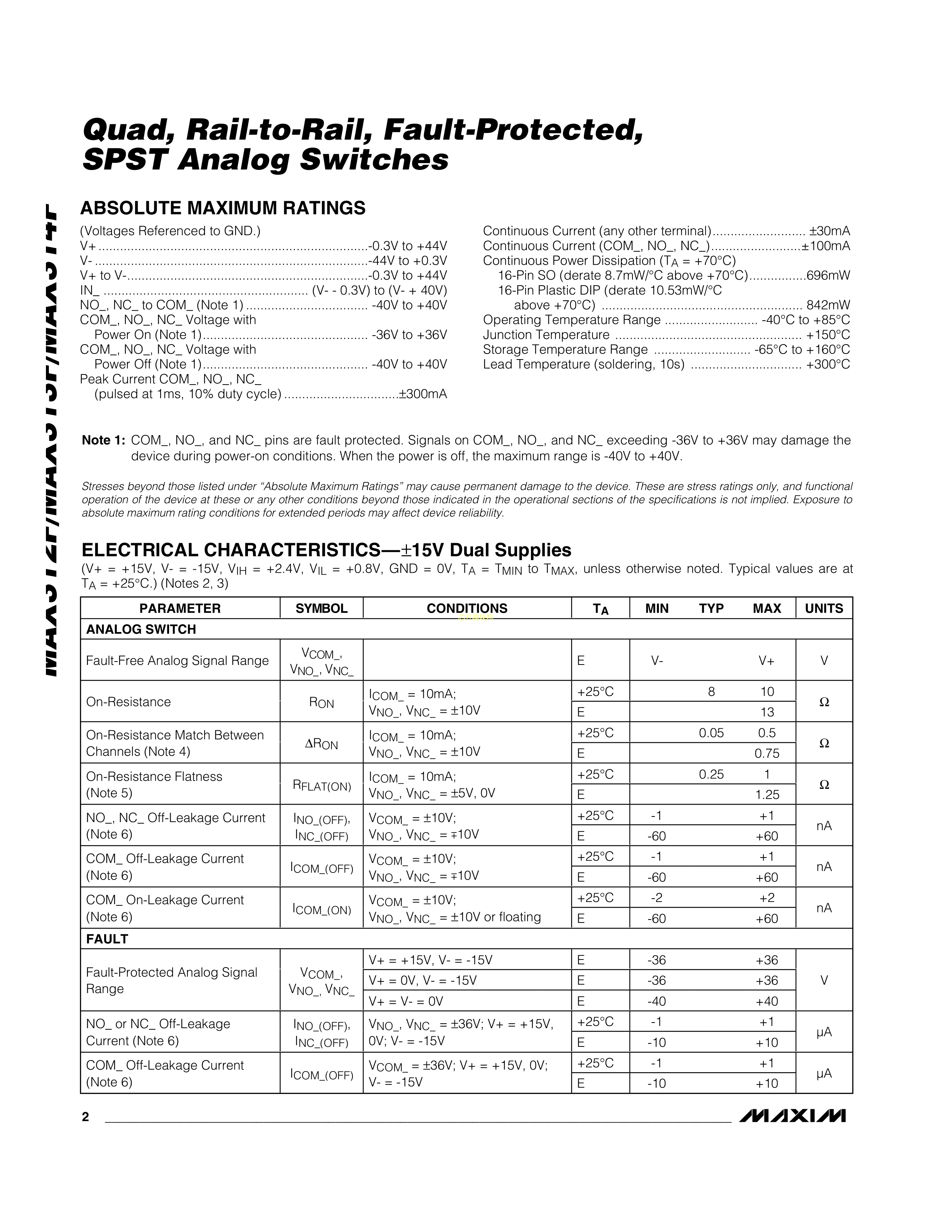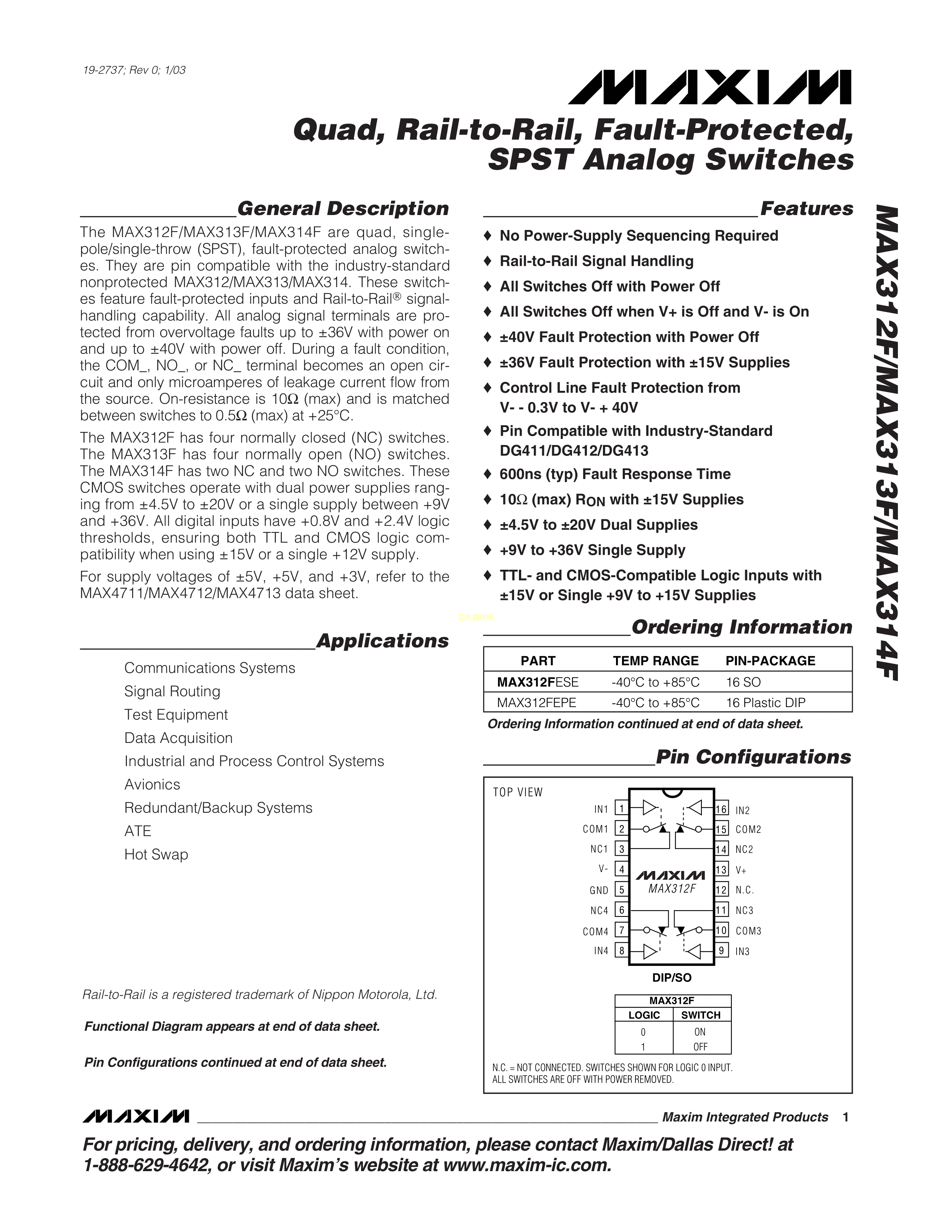 MAX314FESE+T数据手册SO-16封装MAXIM(美信)PDF规格书,中英文下载