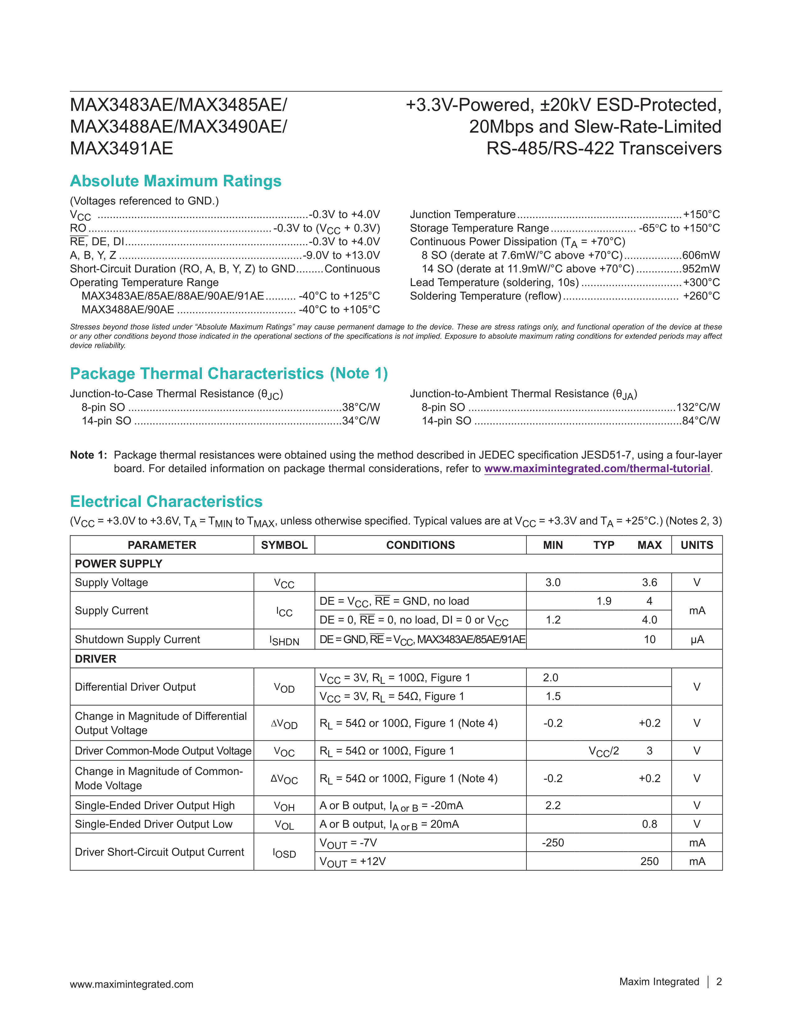 MAX3485AEASA+数据手册SOIC-8封装MAXIM(美信)PDF规格书,中英文下载