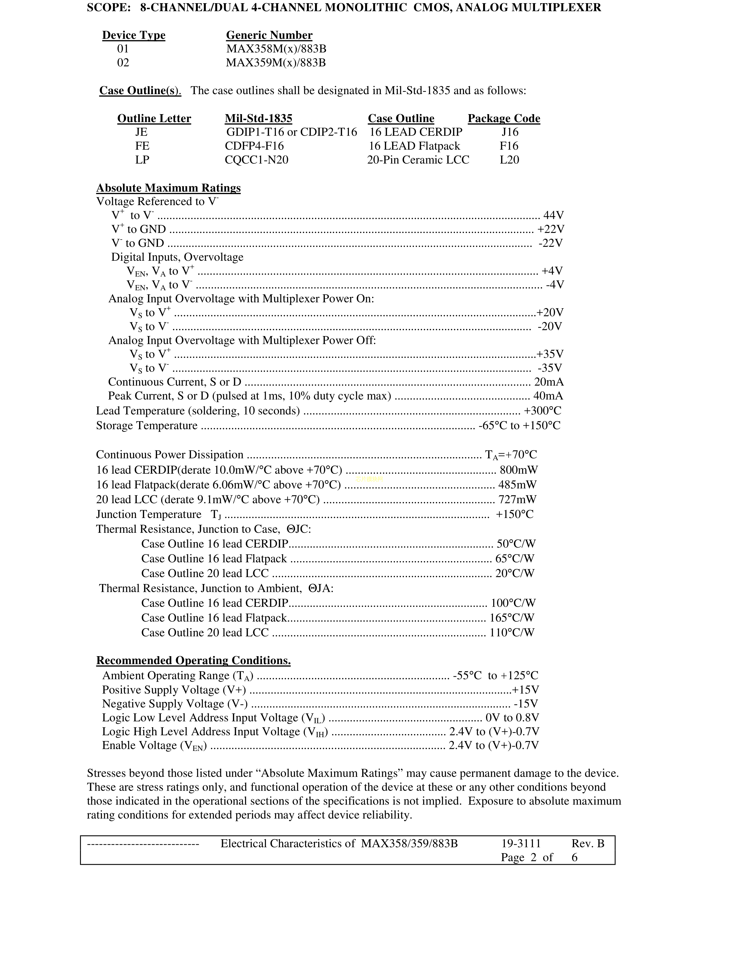 MAX359MJE-883B数据手册CDIP-16封装MAXIM(美信)PDF规格书,中英文下载