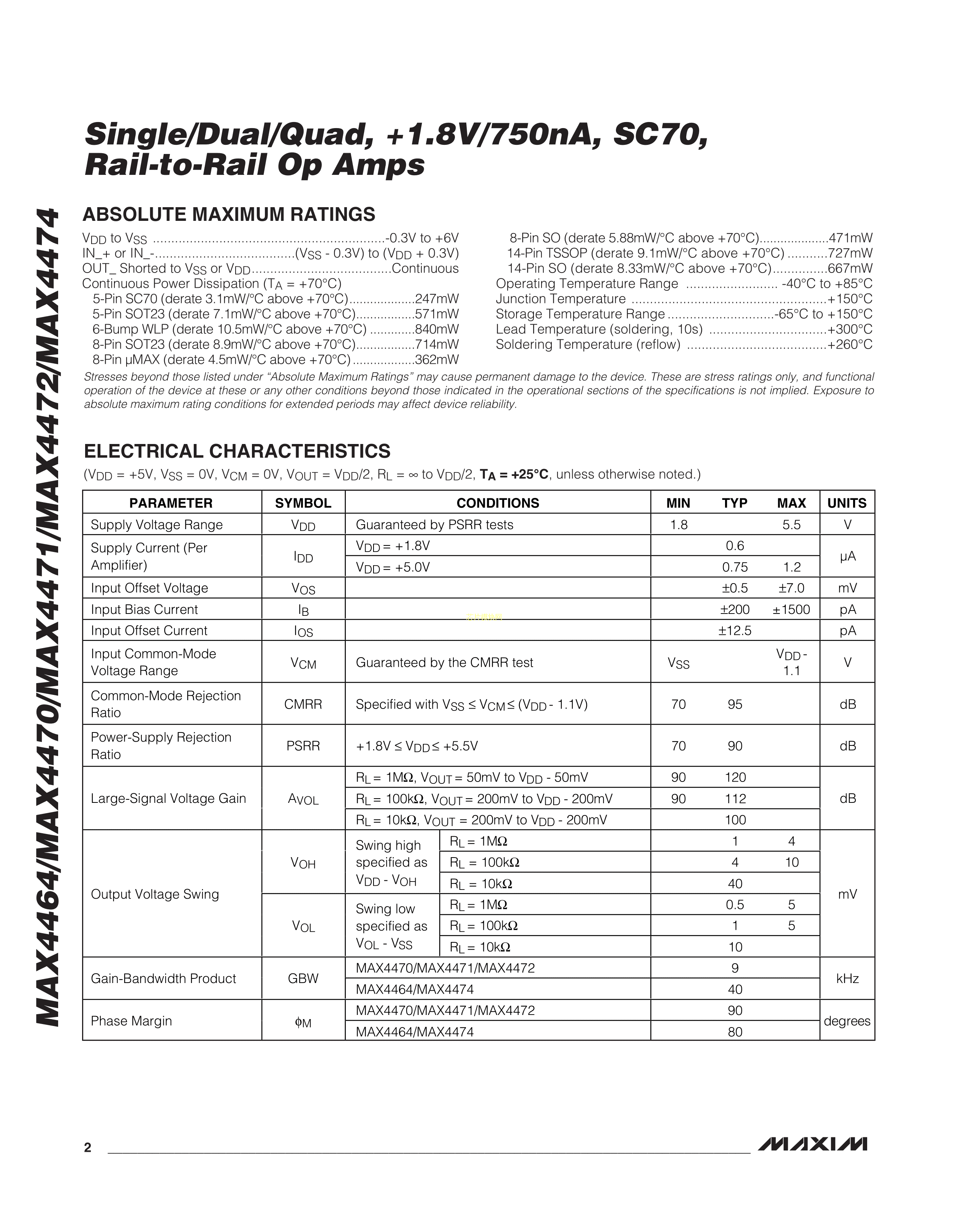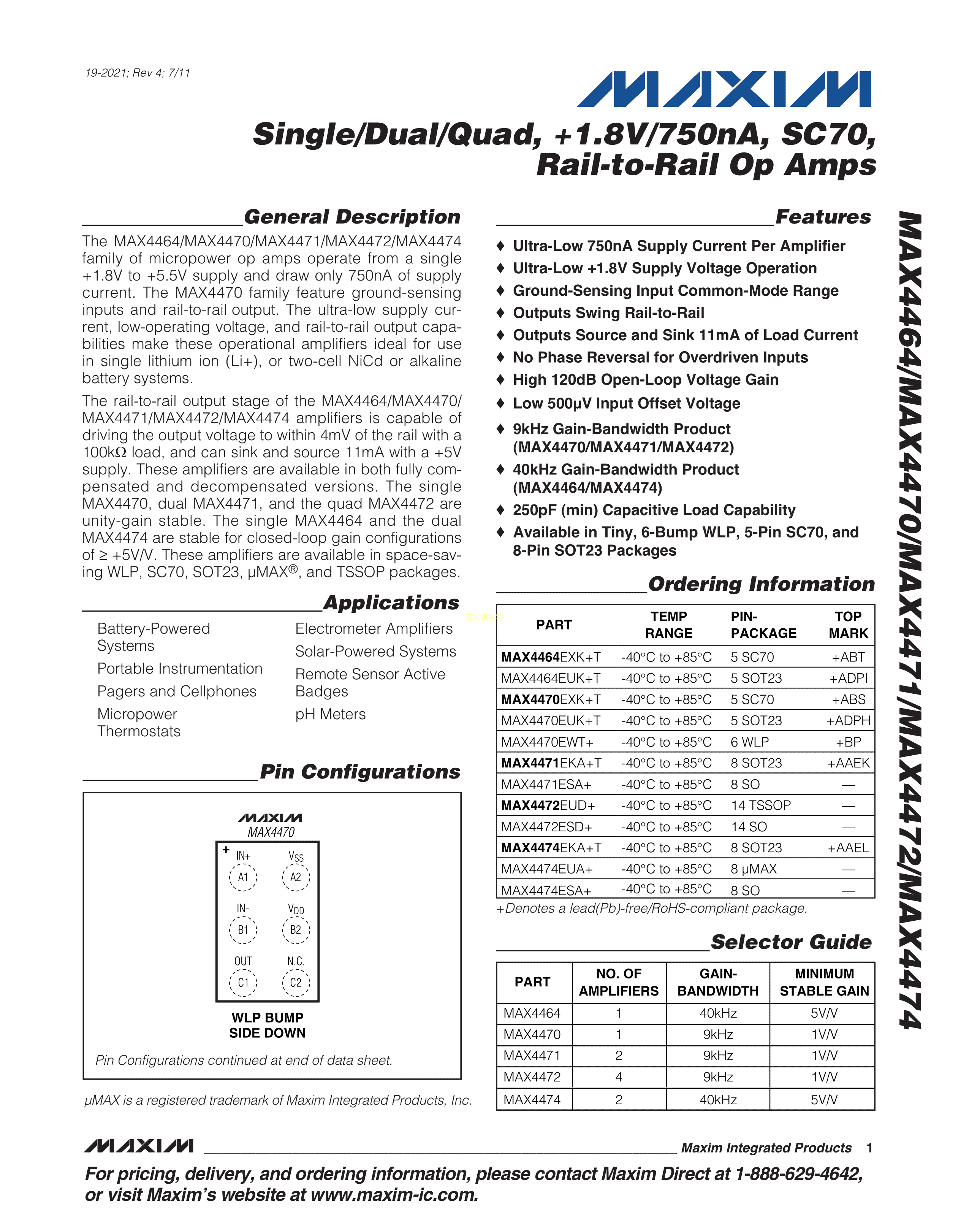 MAX4464EUK+T数据手册SOT-23-5封装MAXIM(美信)PDF规格书,中英文下载