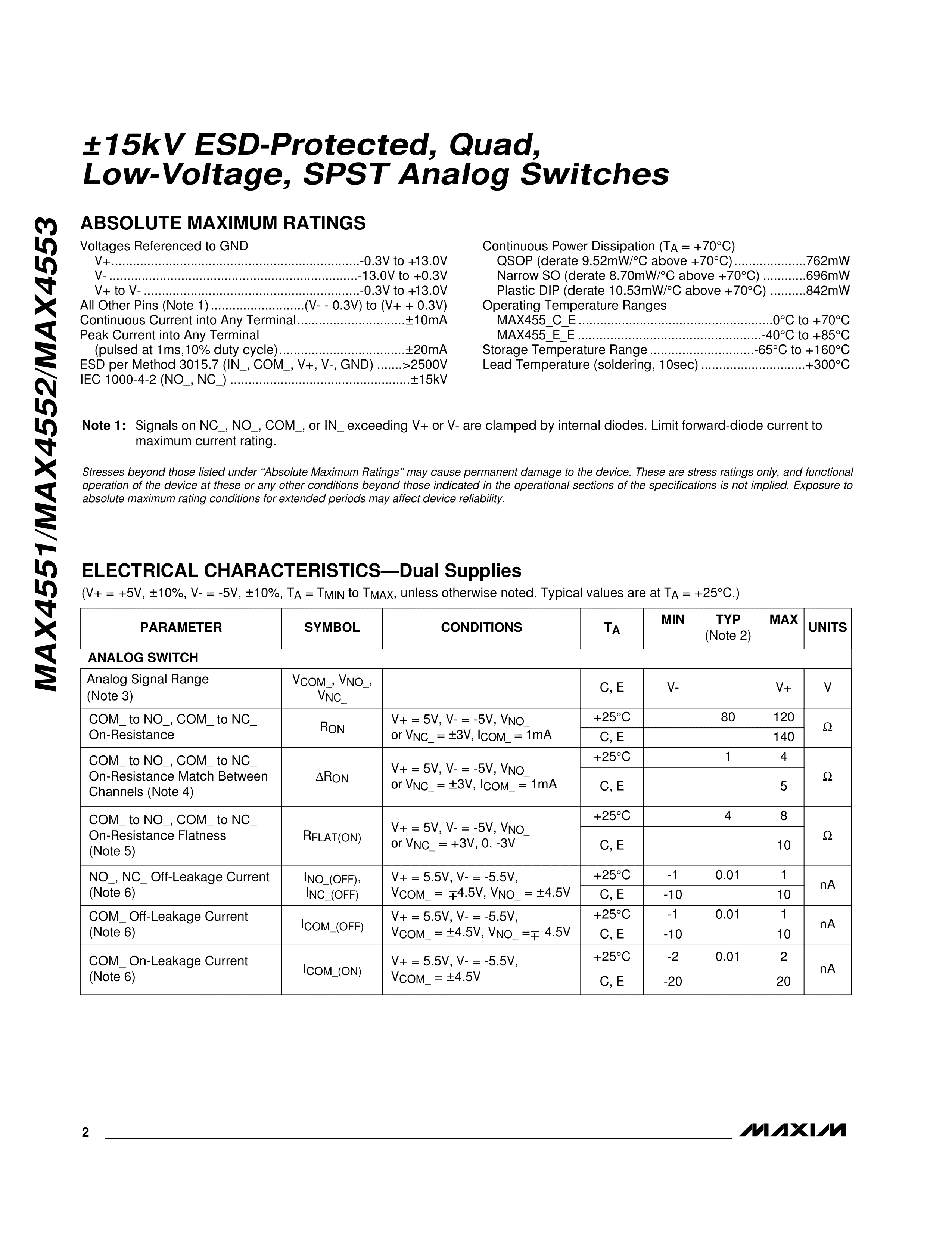MAX4553ESE+数据手册SO-16封装MAXIM(美信)PDF规格书,中英文下载