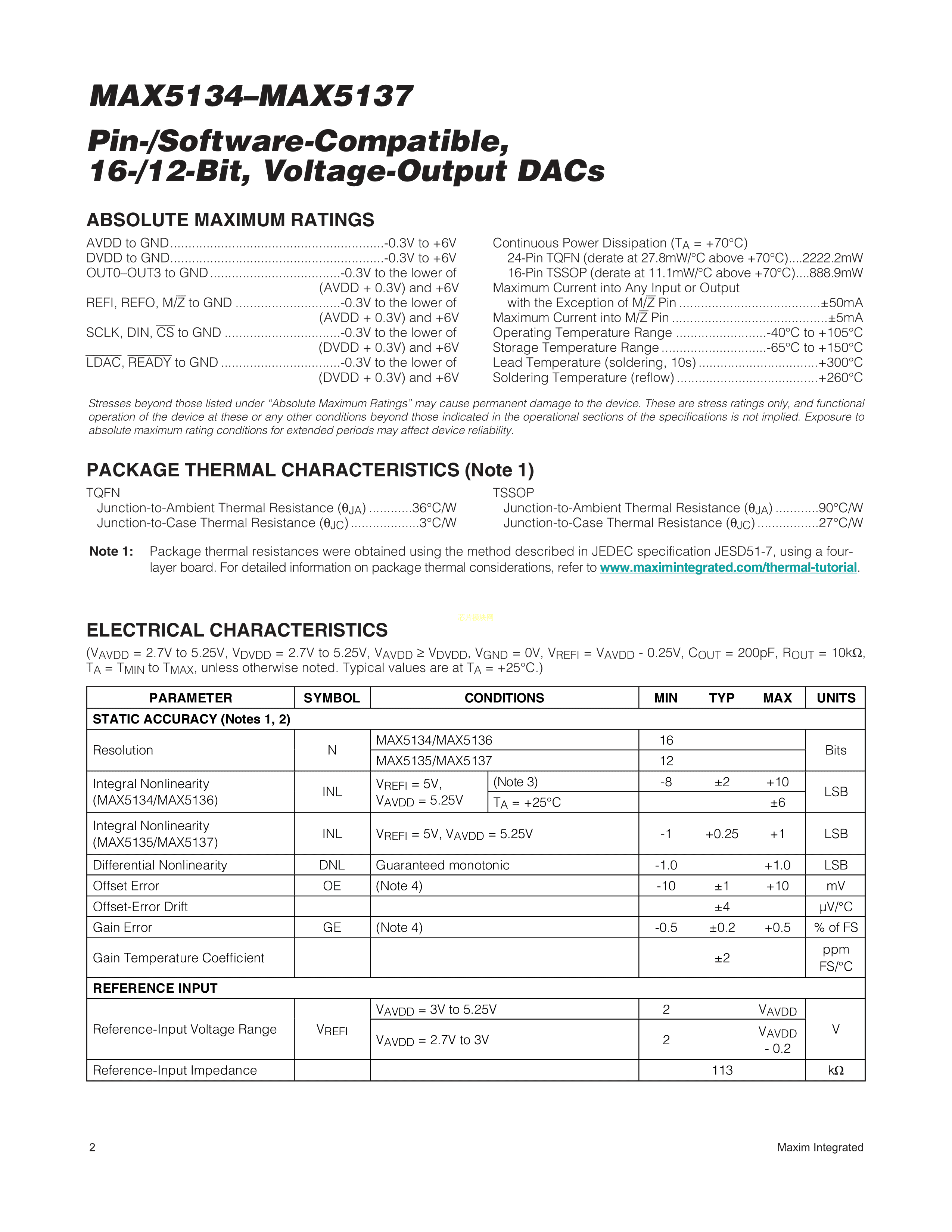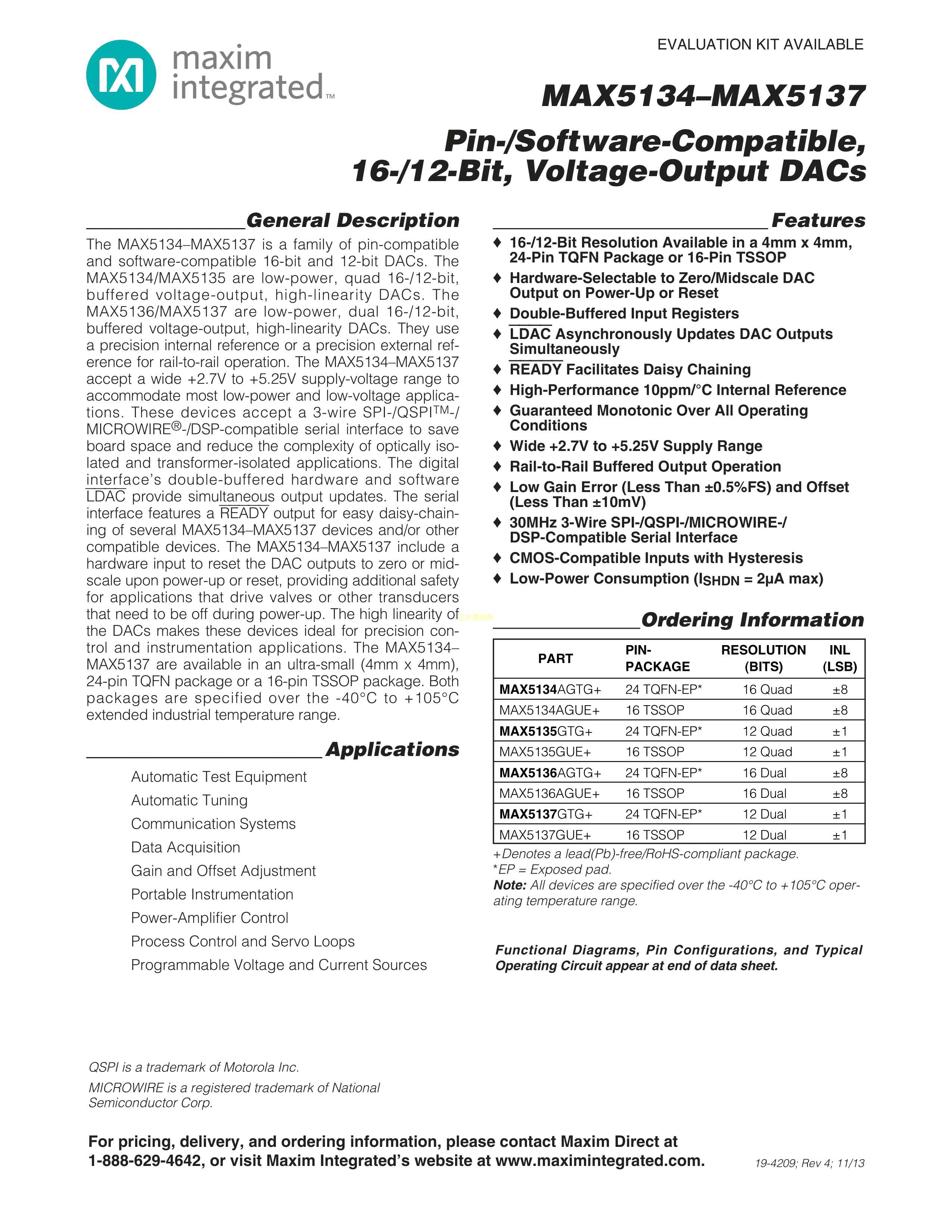 MAX5136AGTG+数据手册TQFN-24(4x4)封装MAXIM(美信)PDF规格书,中英文下