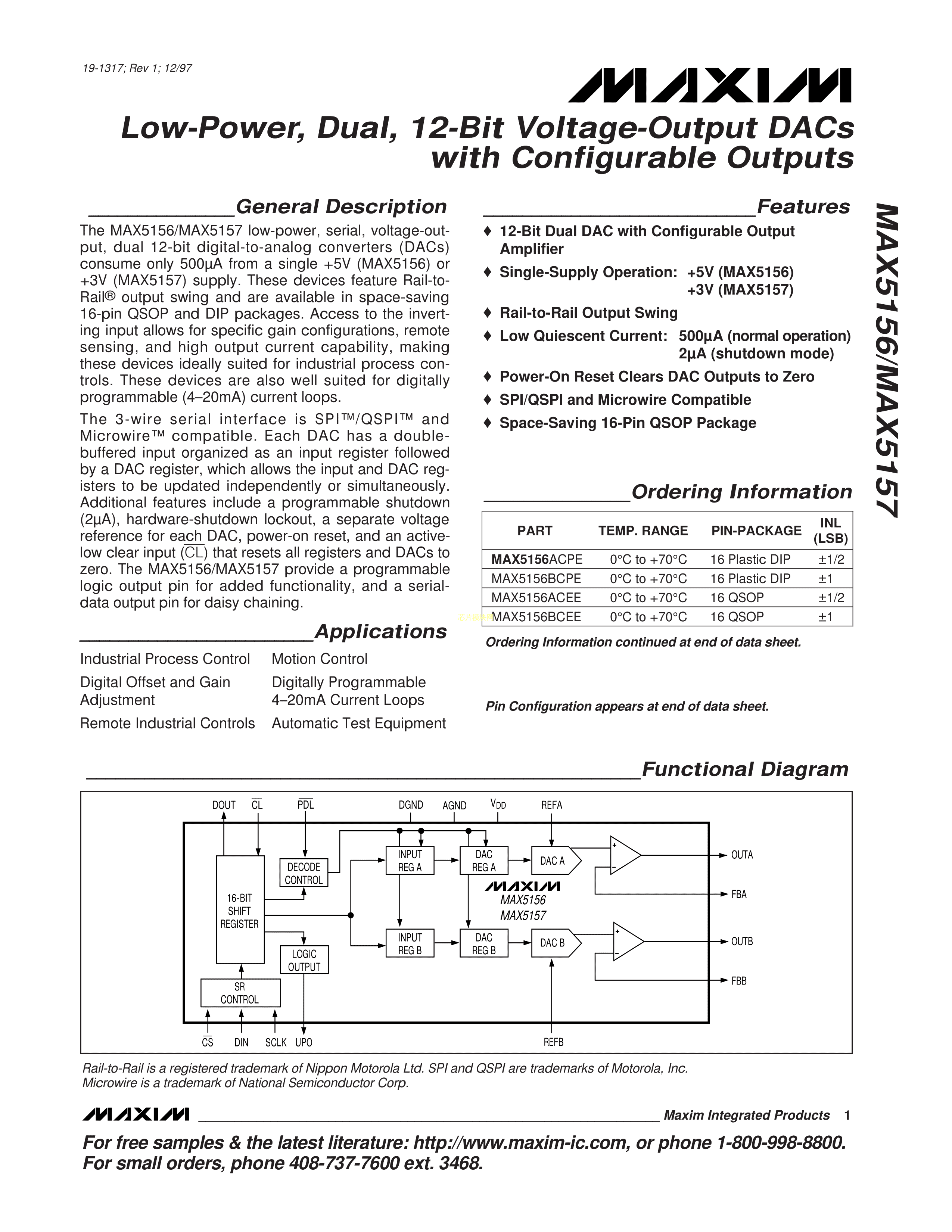MAX5156ACEE+T数据手册QSOP-16封装MAXIM(美信)PDF规格书,中英文下载