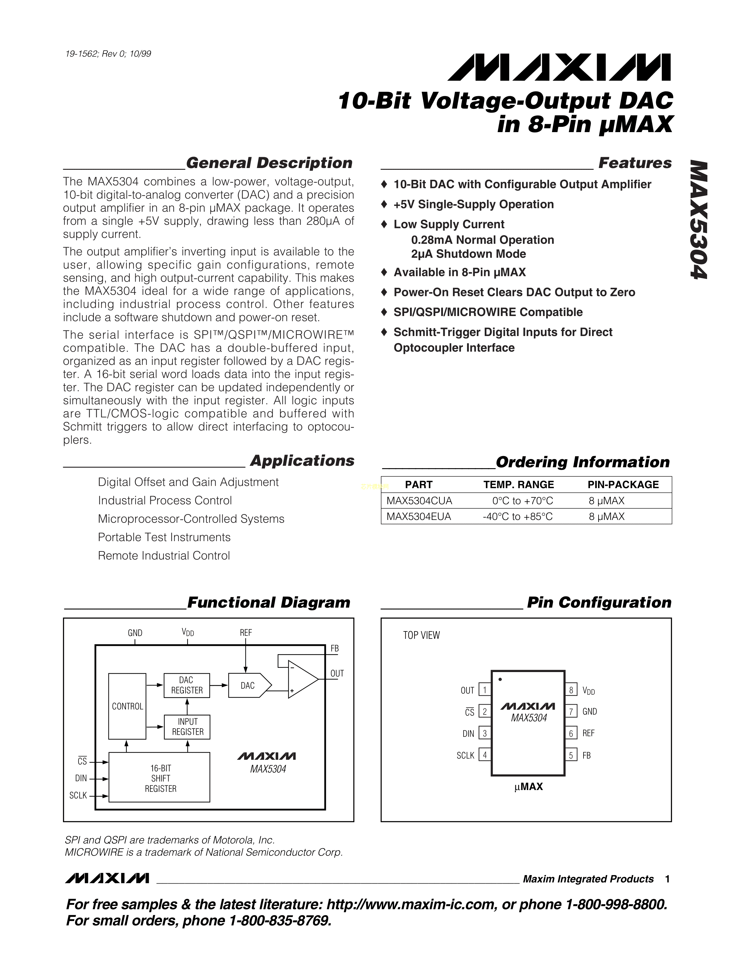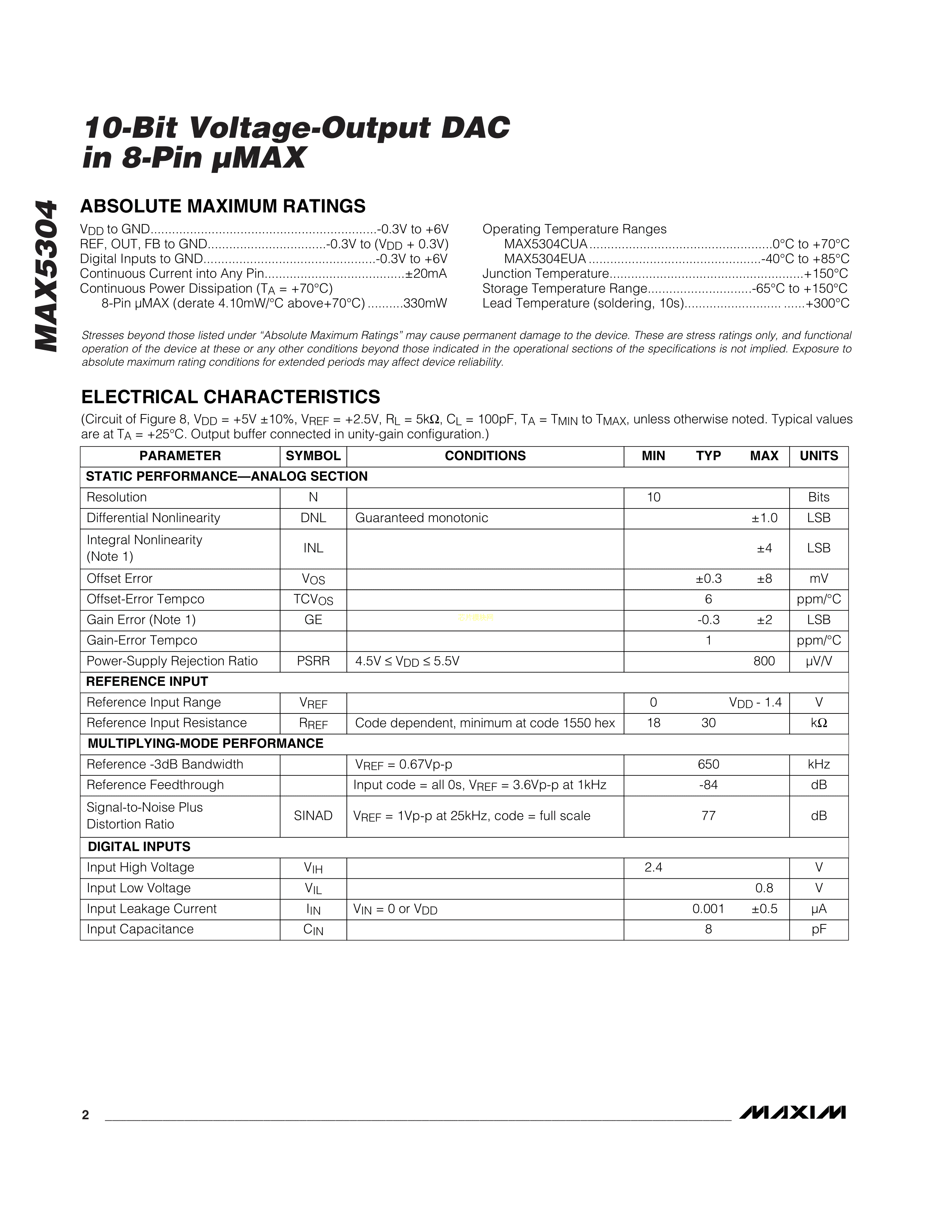 MAX5304CUA+T数据手册uMAX-8封装MAXIM(美信)PDF规格书,中英文下载