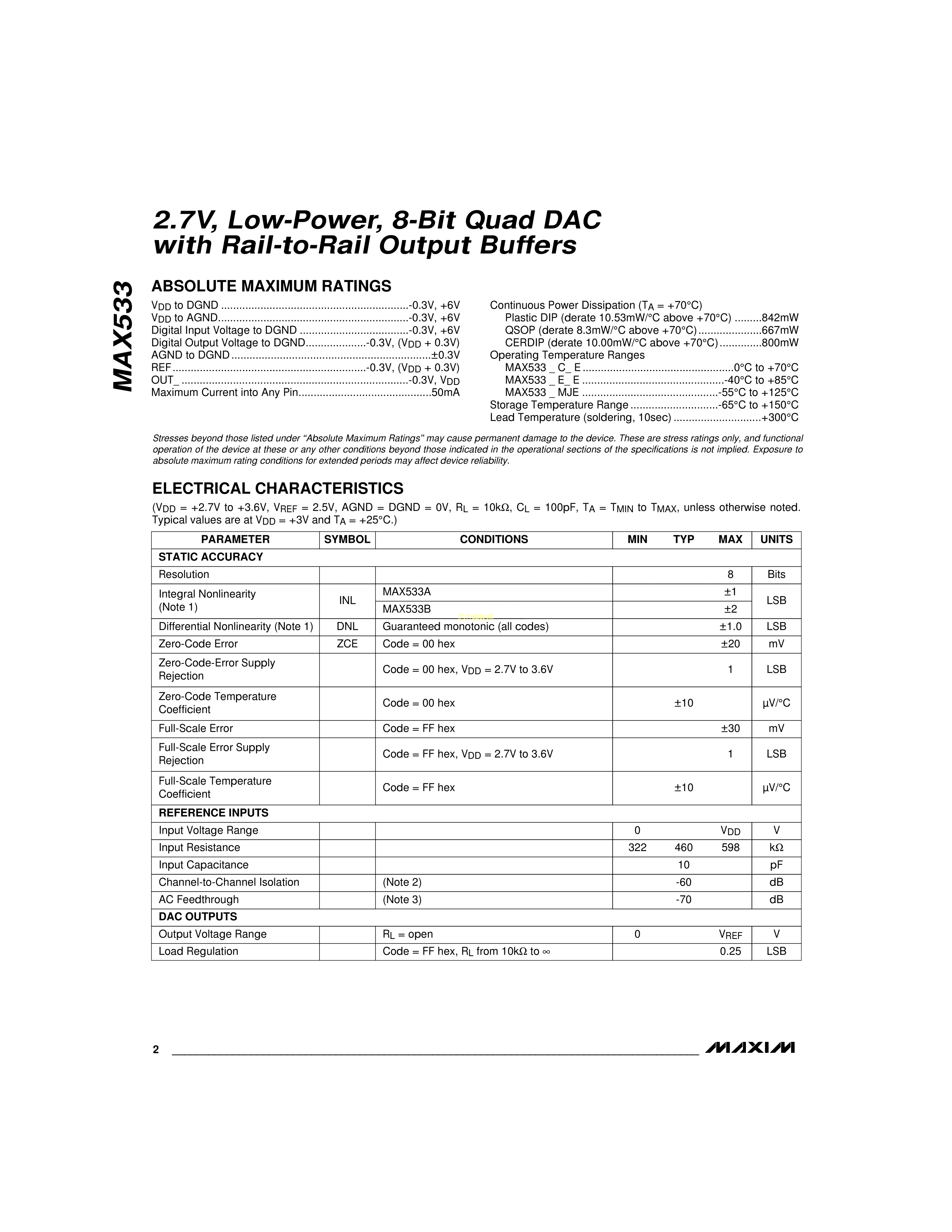 MAX533BCEE+数据手册QSOP-16封装MAXIM(美信)PDF规格书,中英文下载
