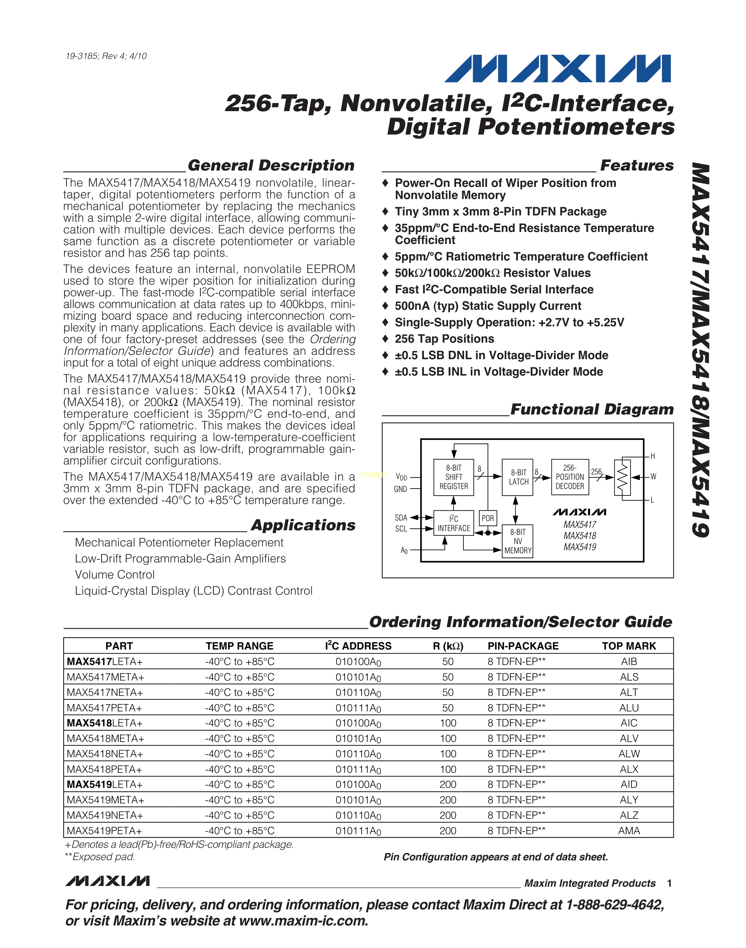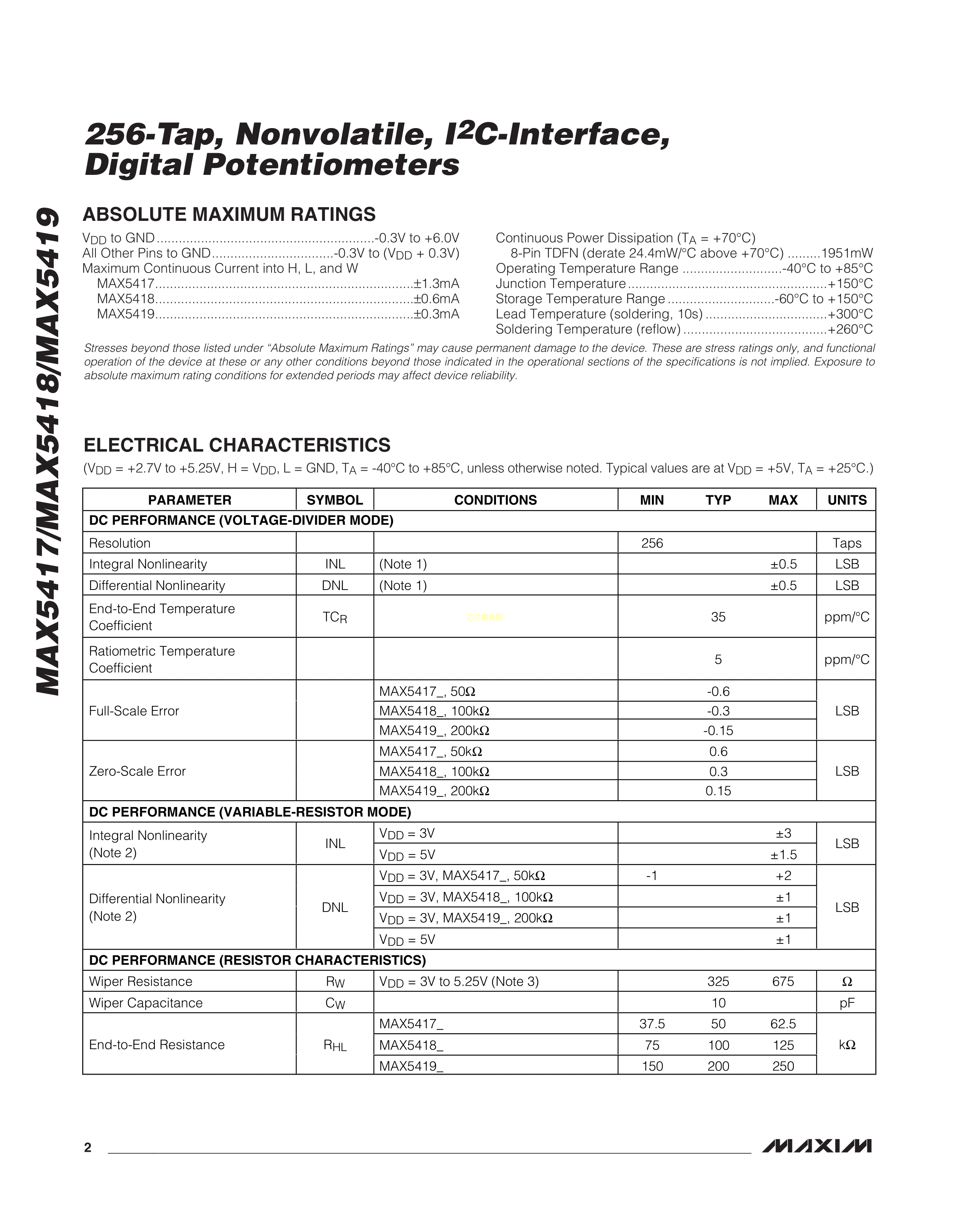 MAX5418PETA+T数据手册TDFN-8_EP(3x3)封装MAXIM(美信)PDF规格书,中