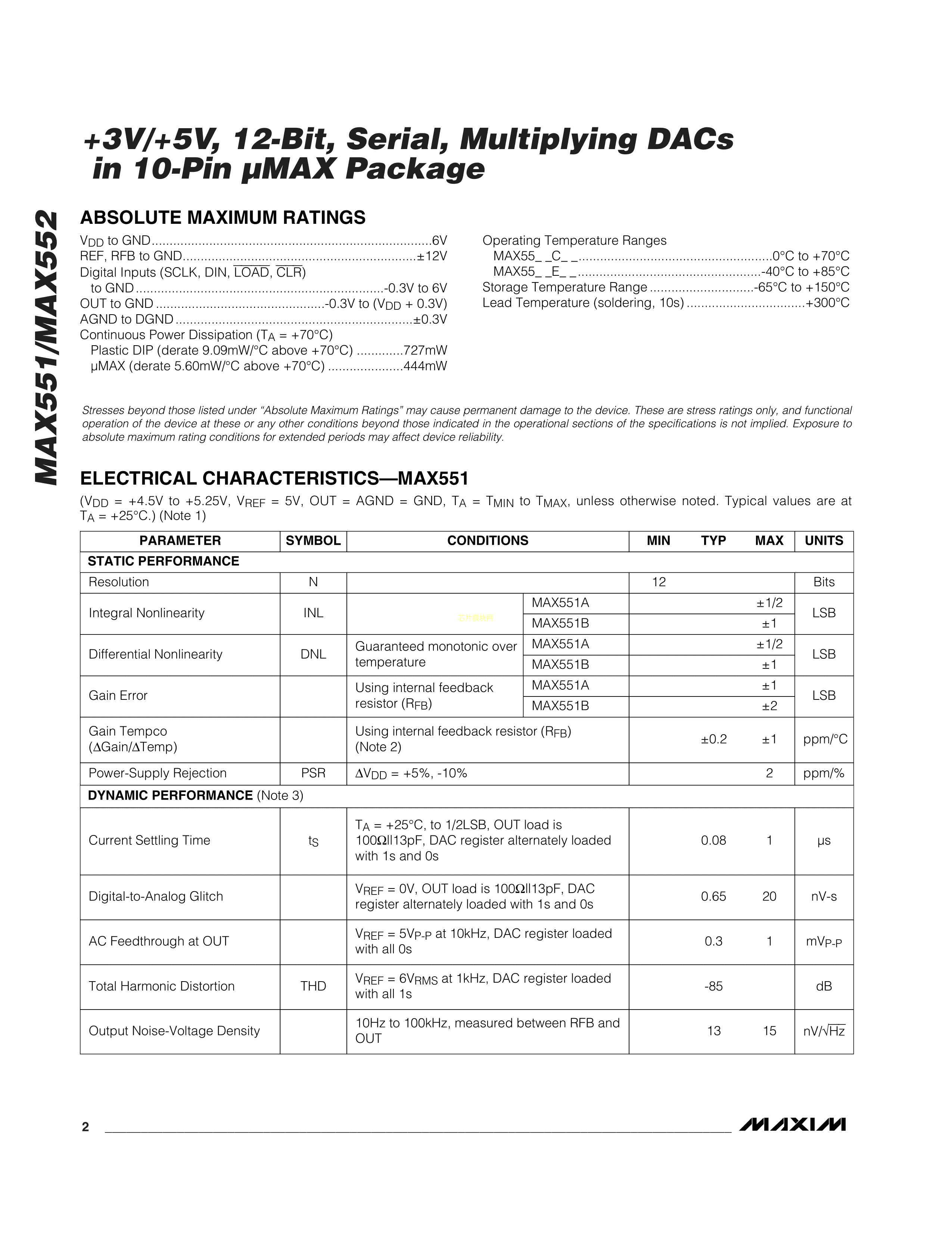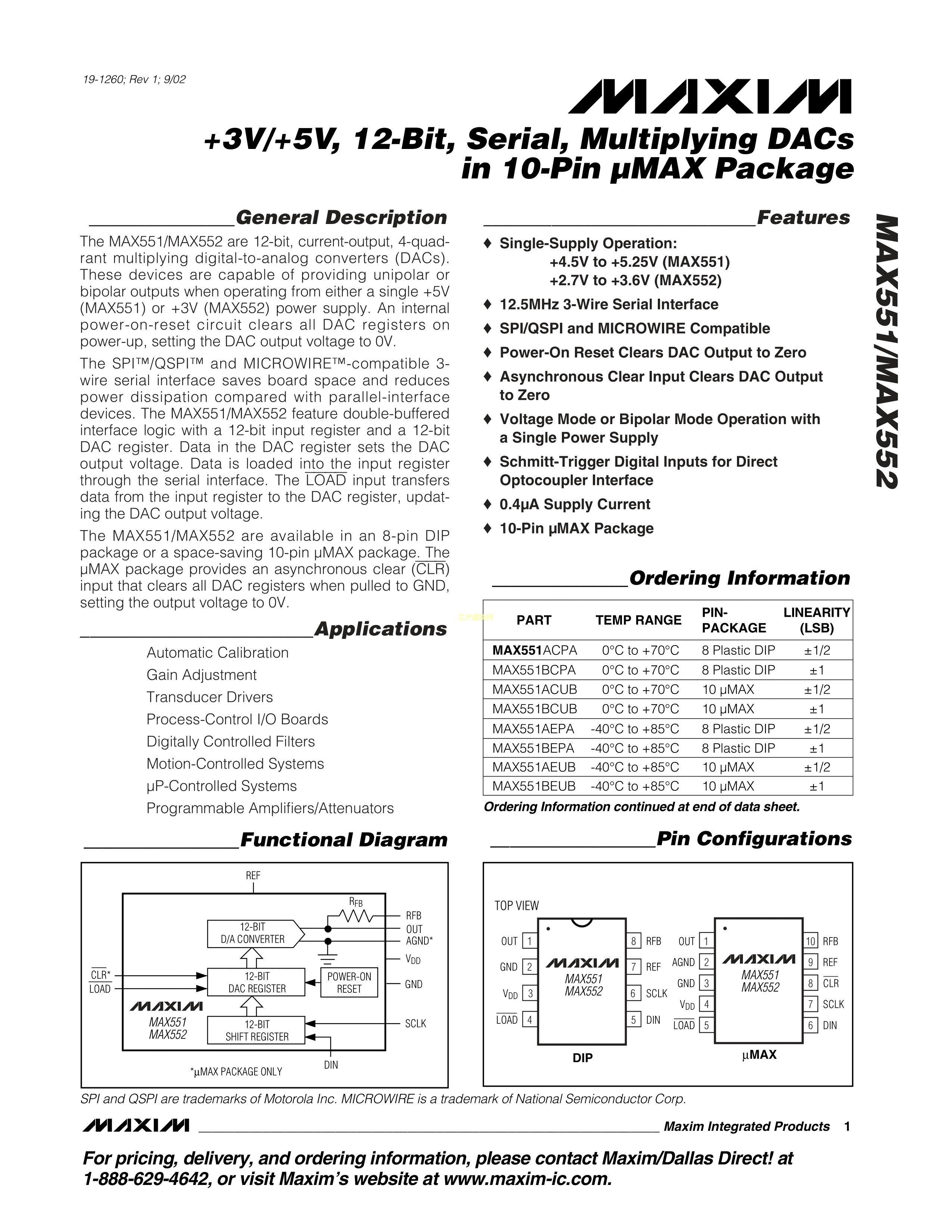 MAX552BCUB+数据手册uMAX-10封装MAXIM(美信)PDF规格书,中英文下载