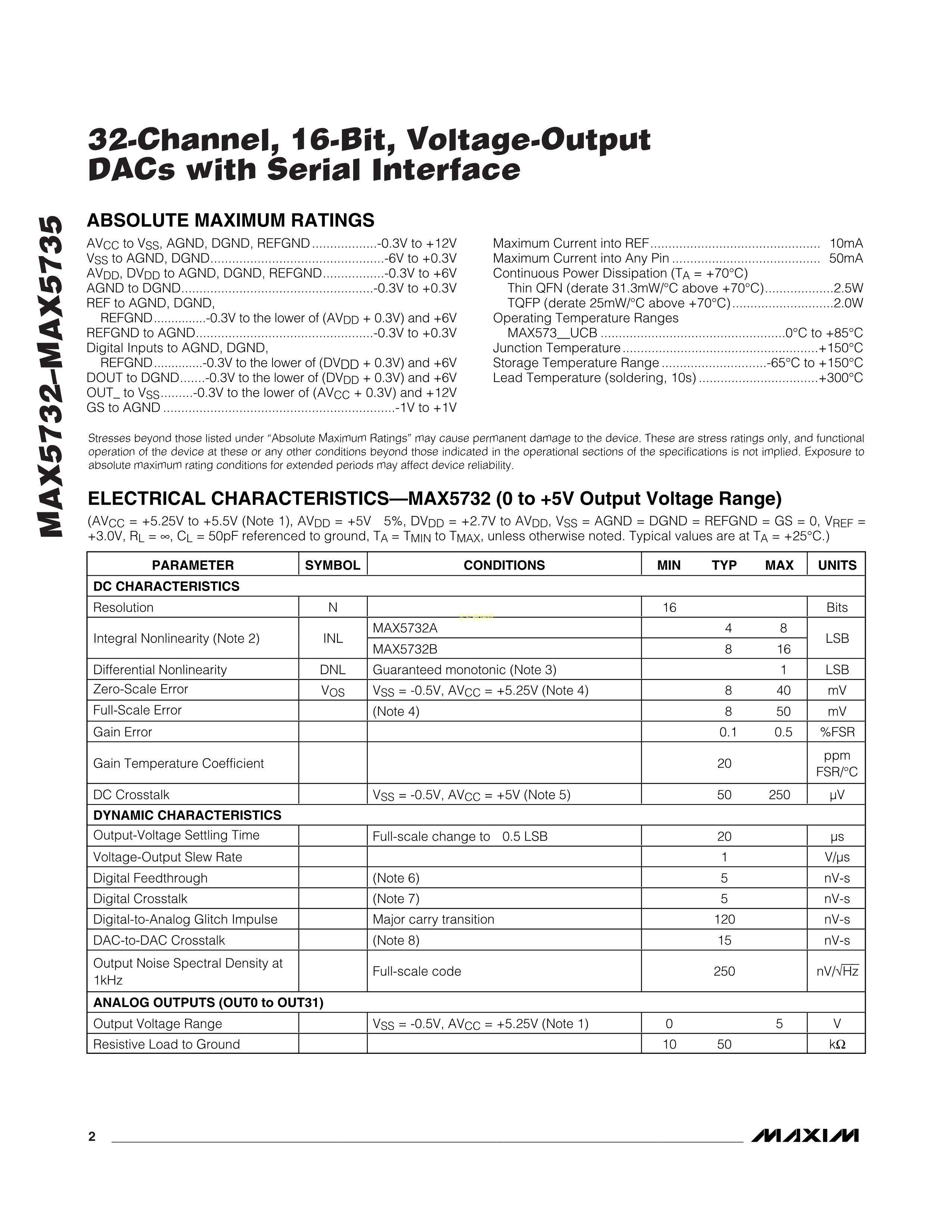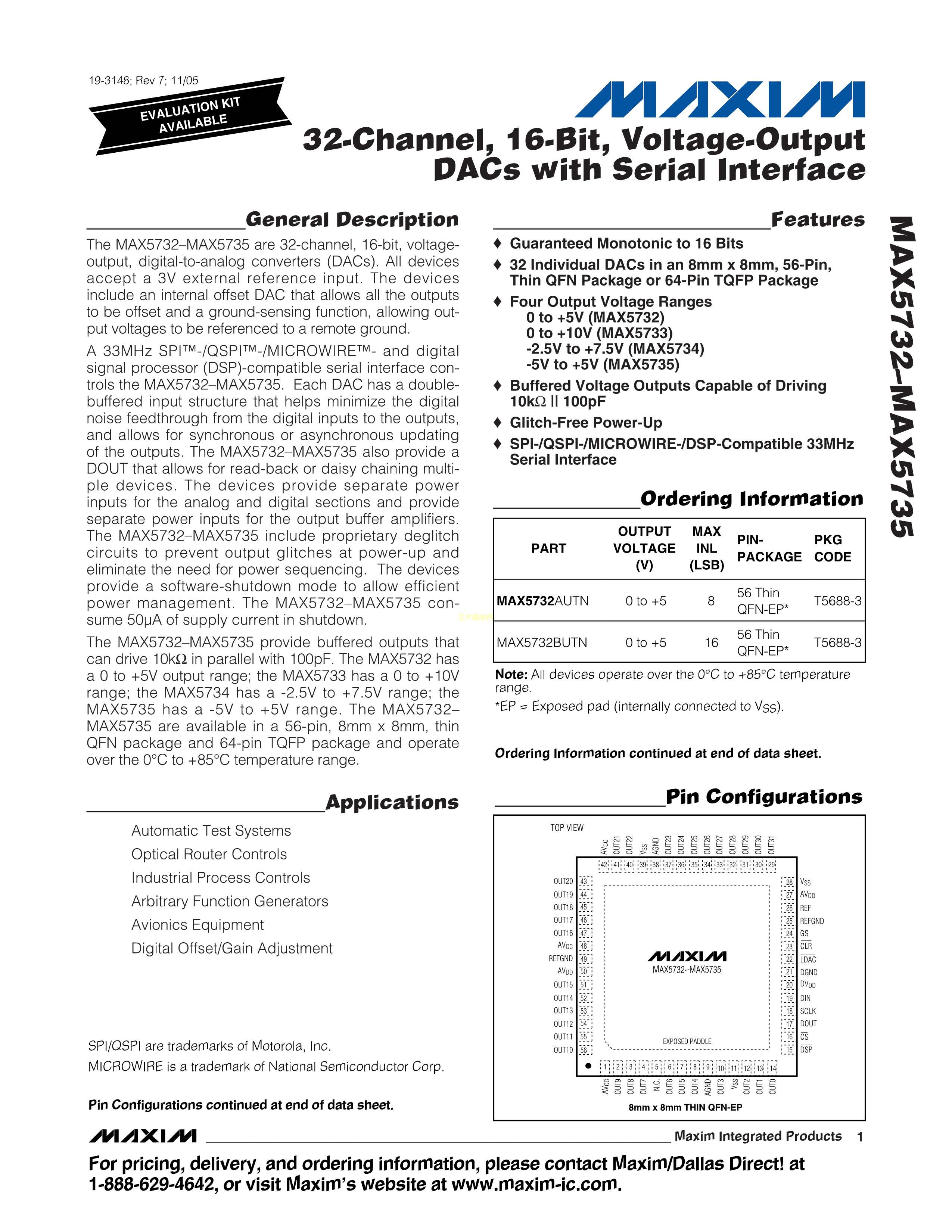 MAX5733BUTN+数据手册TQFN-56(8x8)封装MAXIM(美信)PDF规格书,中英文下