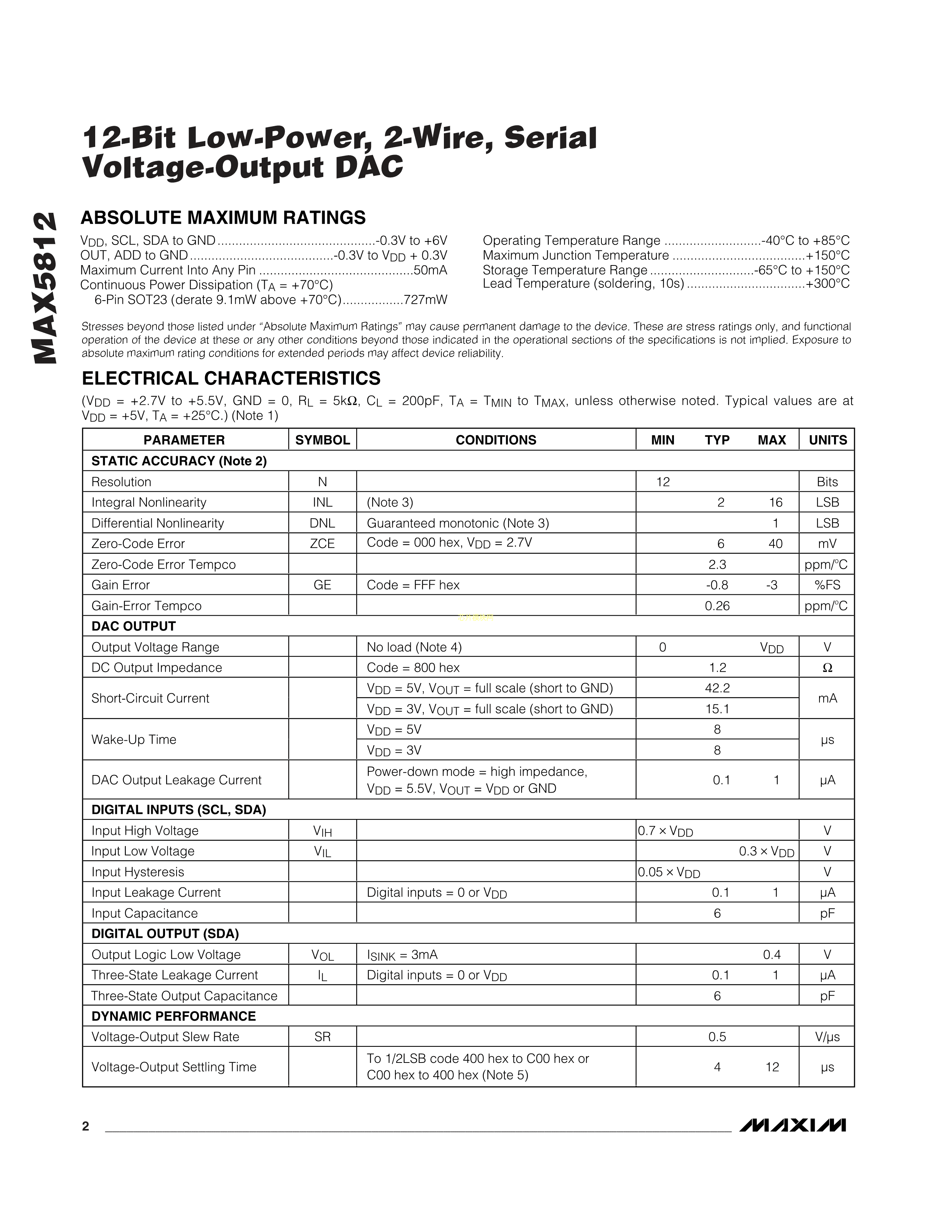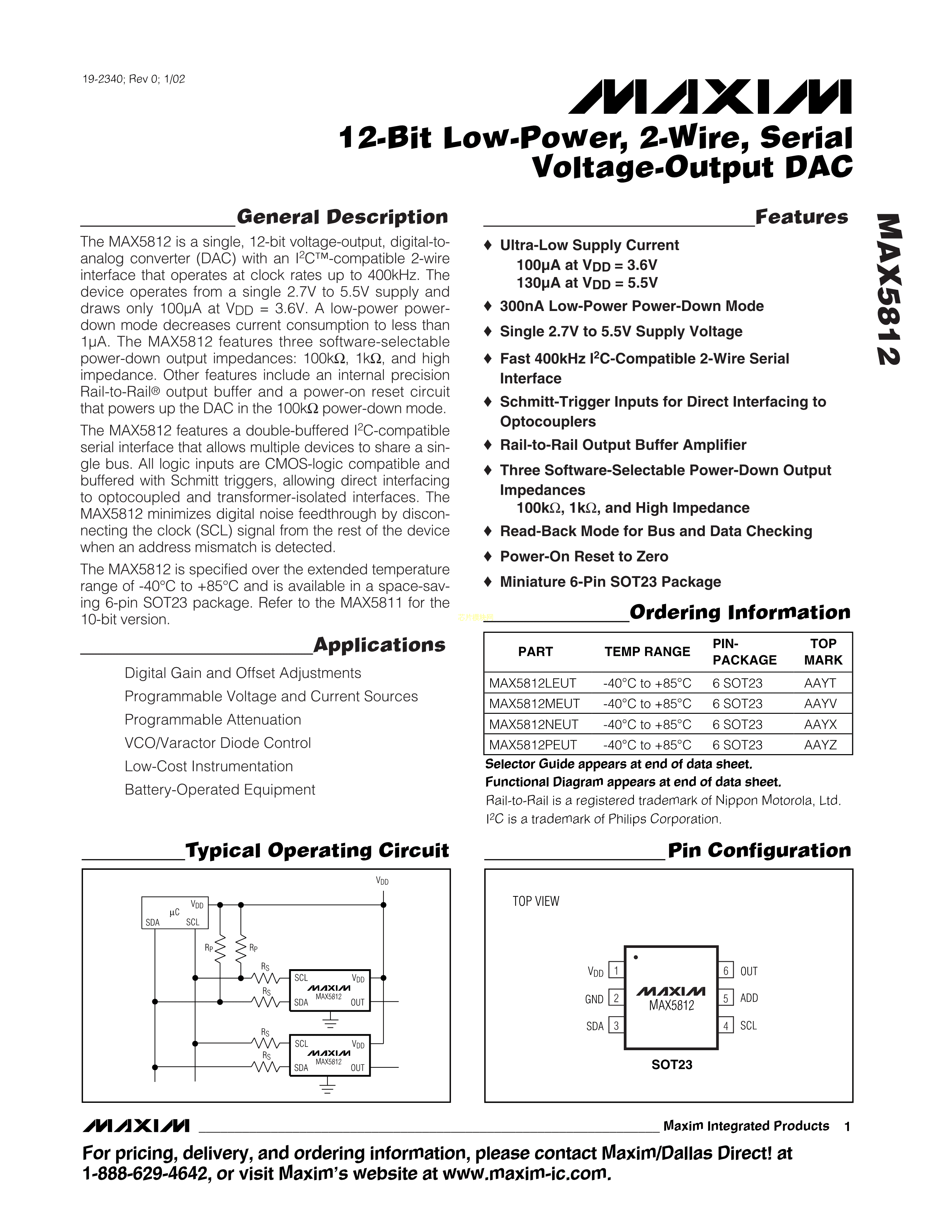 MAX5812LEUT+T数据手册SOT-23-6封装MAXIM(美信)PDF规格书,中英文下载