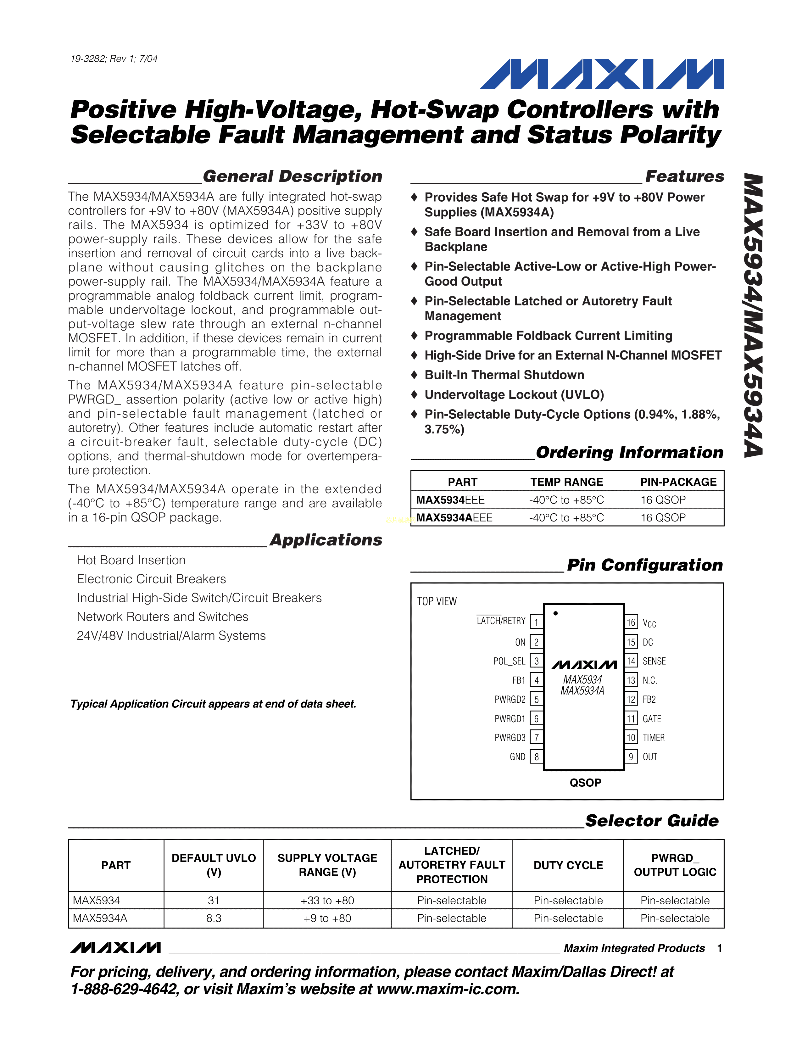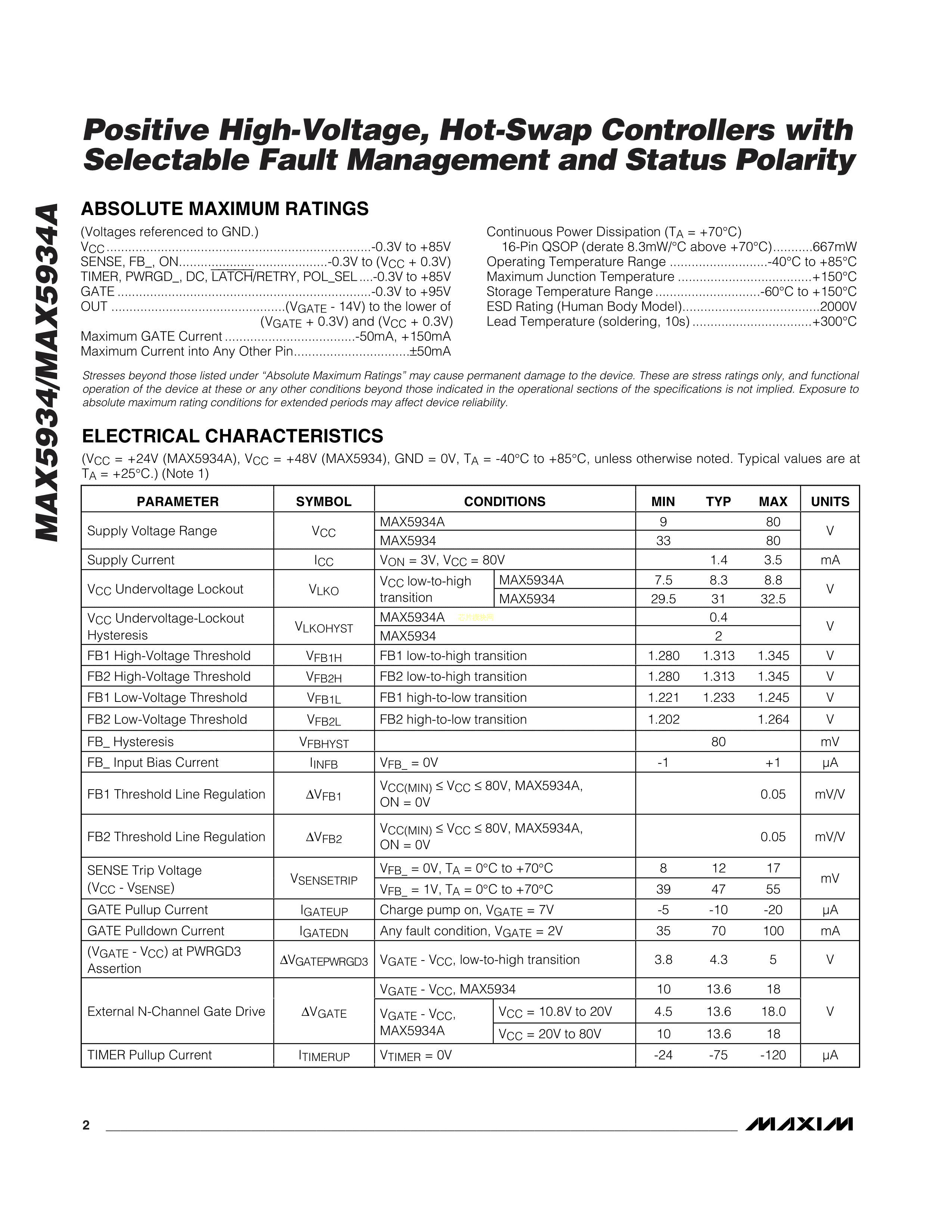 MAX5934AEEE+数据手册QSOP-16封装MAXIM(美信)PDF规格书,中英文下载