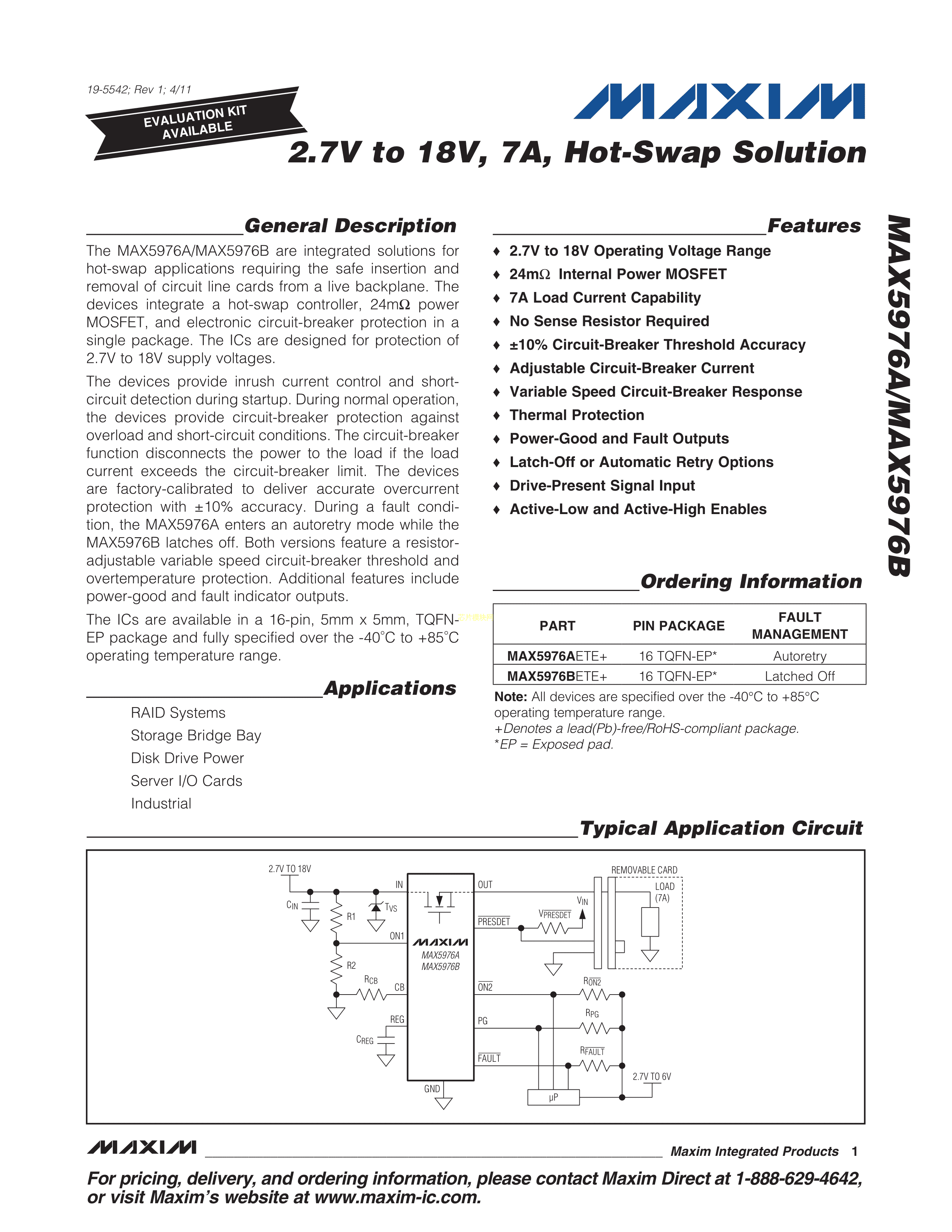 MAX5976BETE+T数据手册TQFN-16(5x5)封装MAXIM(美信)PDF规格书,中英文