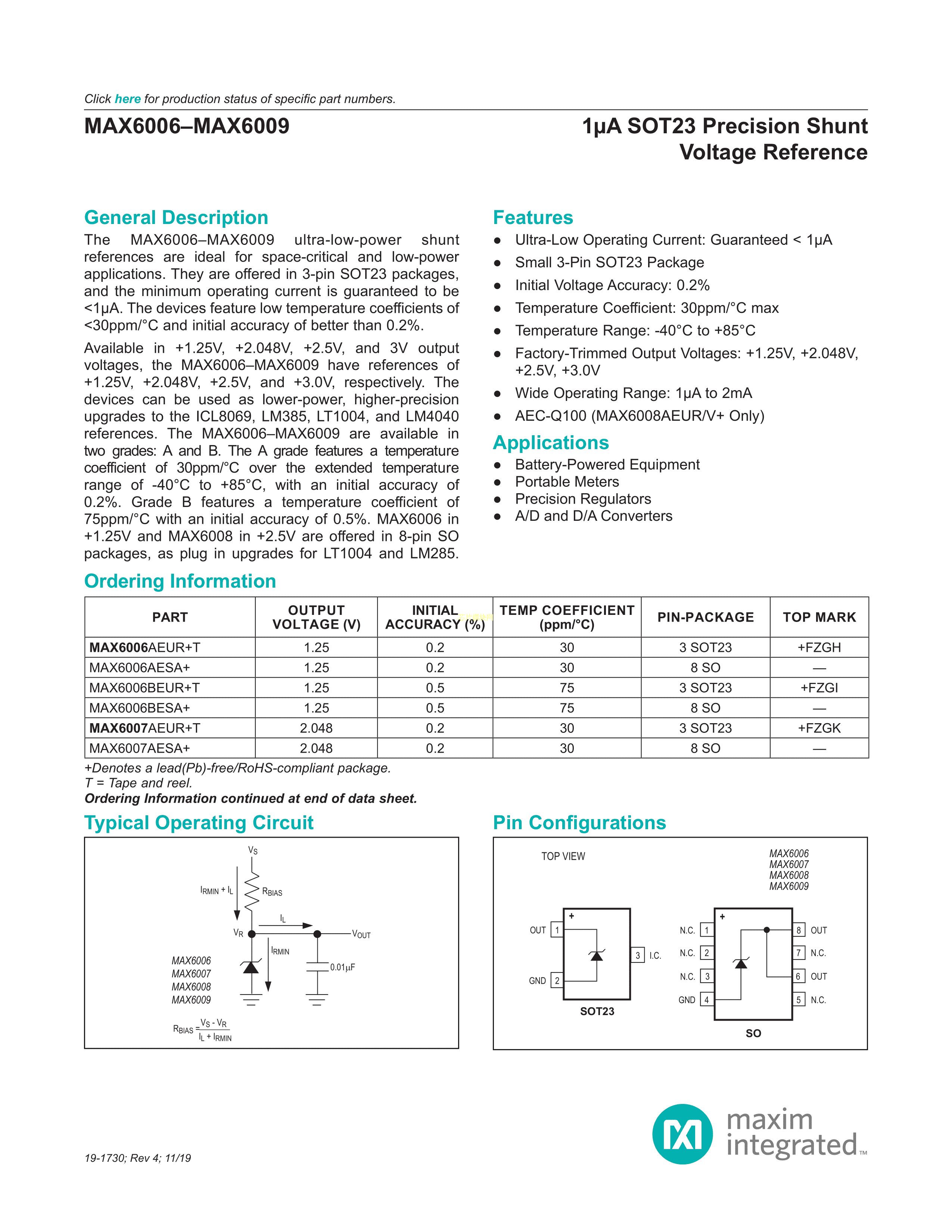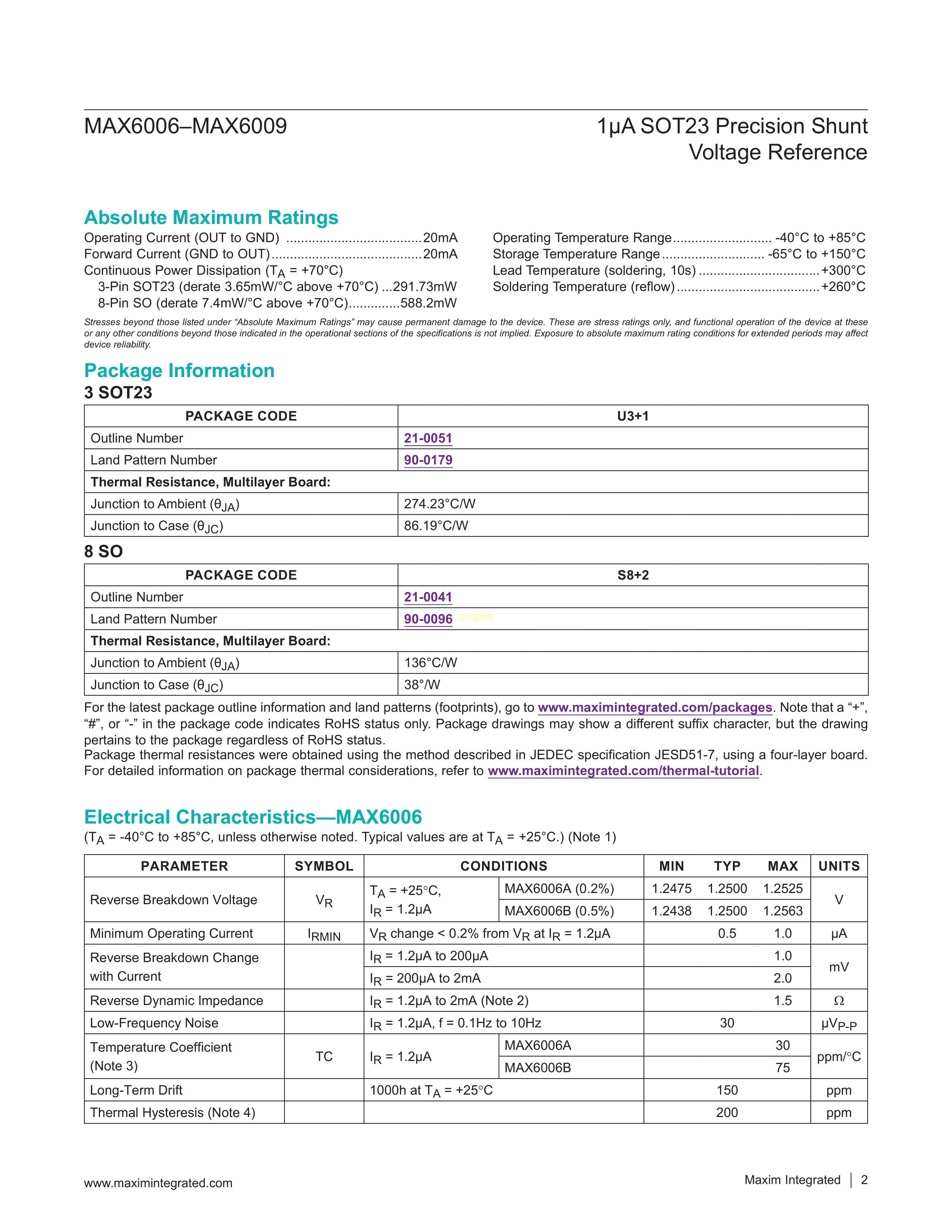 MAX6006AESA+T数据手册SOIC-8封装MAXIM(美信)PDF规格书,中英文下载