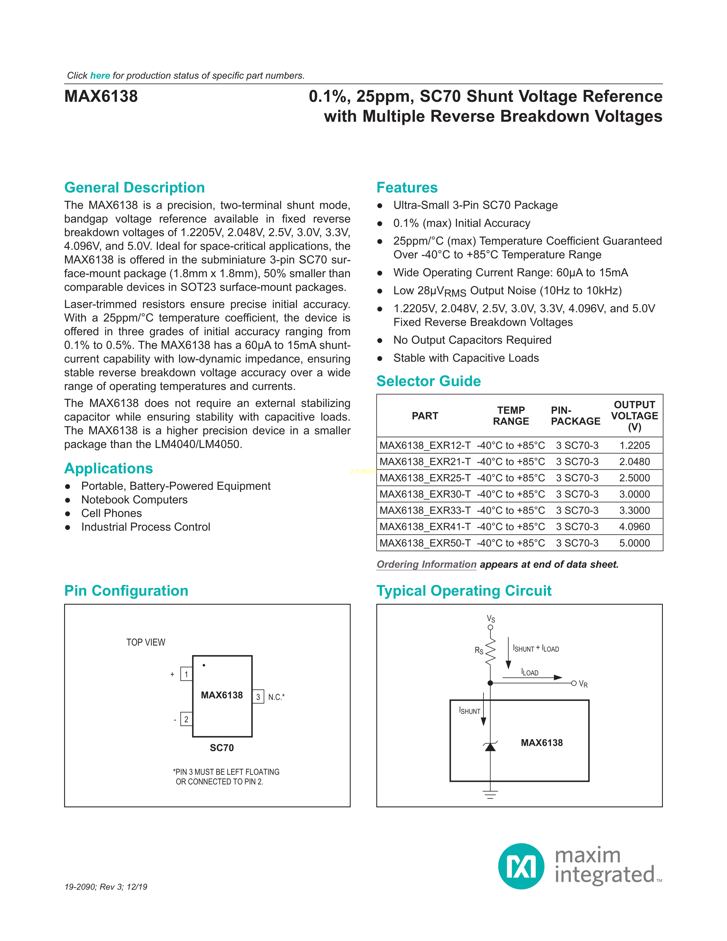 MAX6138AEXR33+T数据手册SC-70-3封装MAXIM(美信)PDF规格书,中英文下载