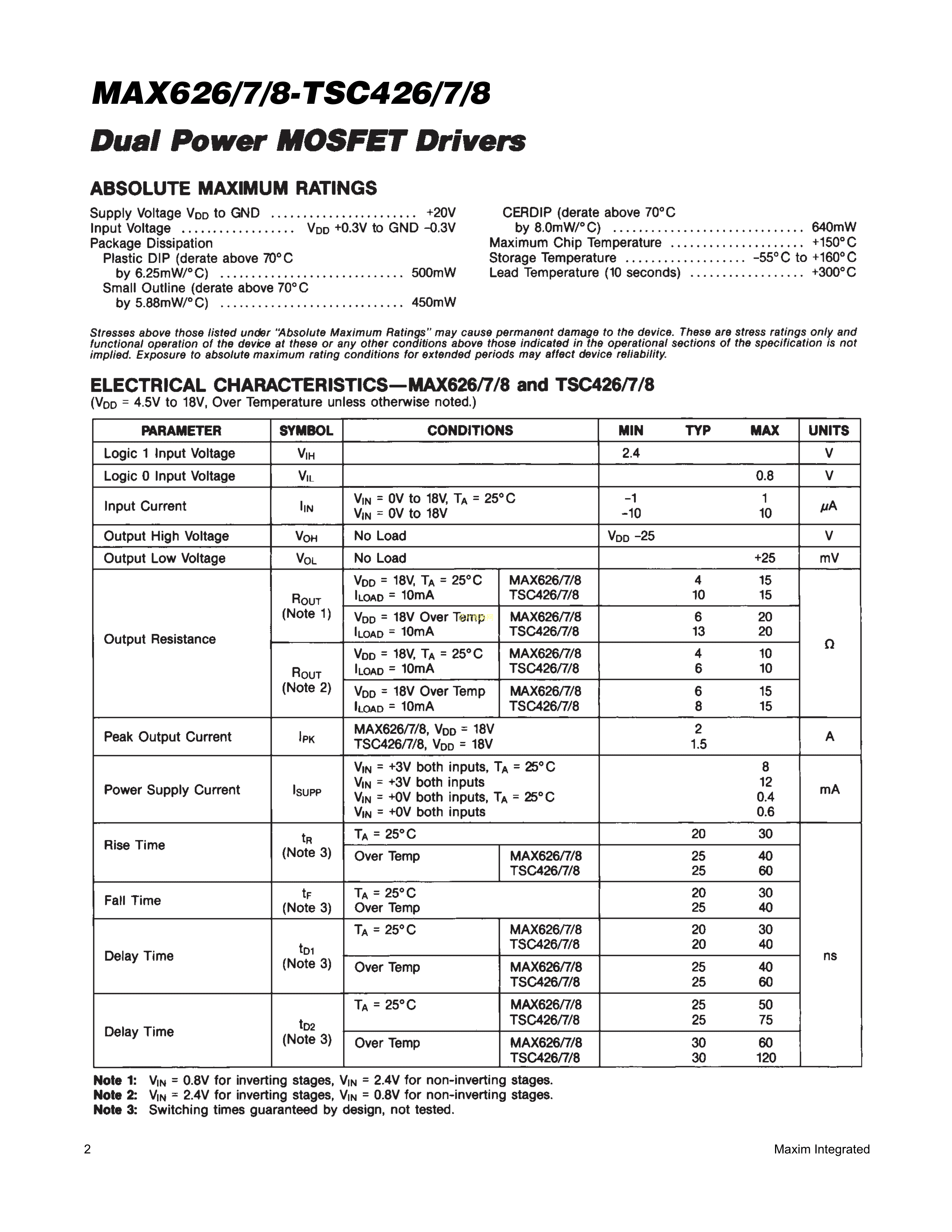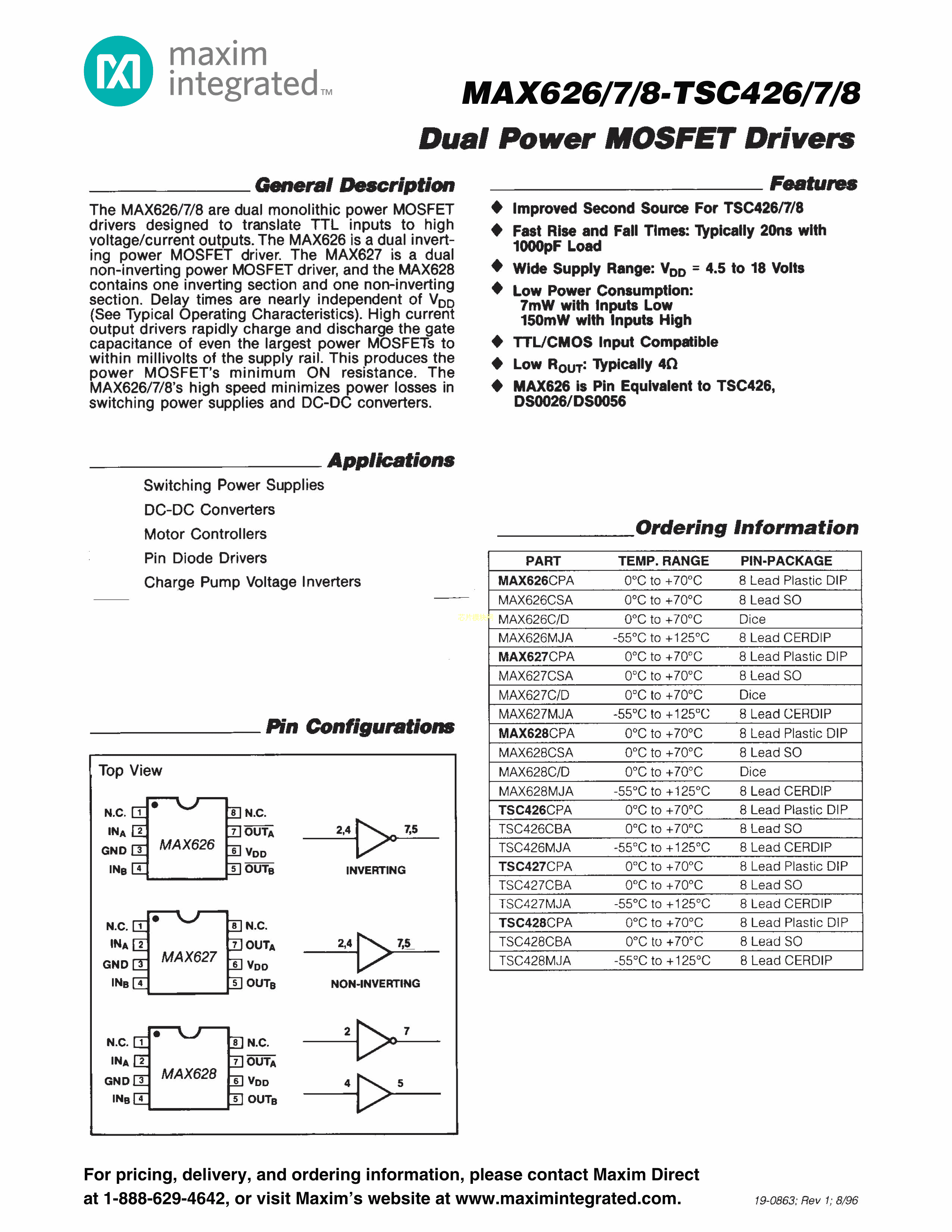 MAX626CSA+数据手册SOIC-8封装MAXIM(美信)PDF规格书,中英文下载