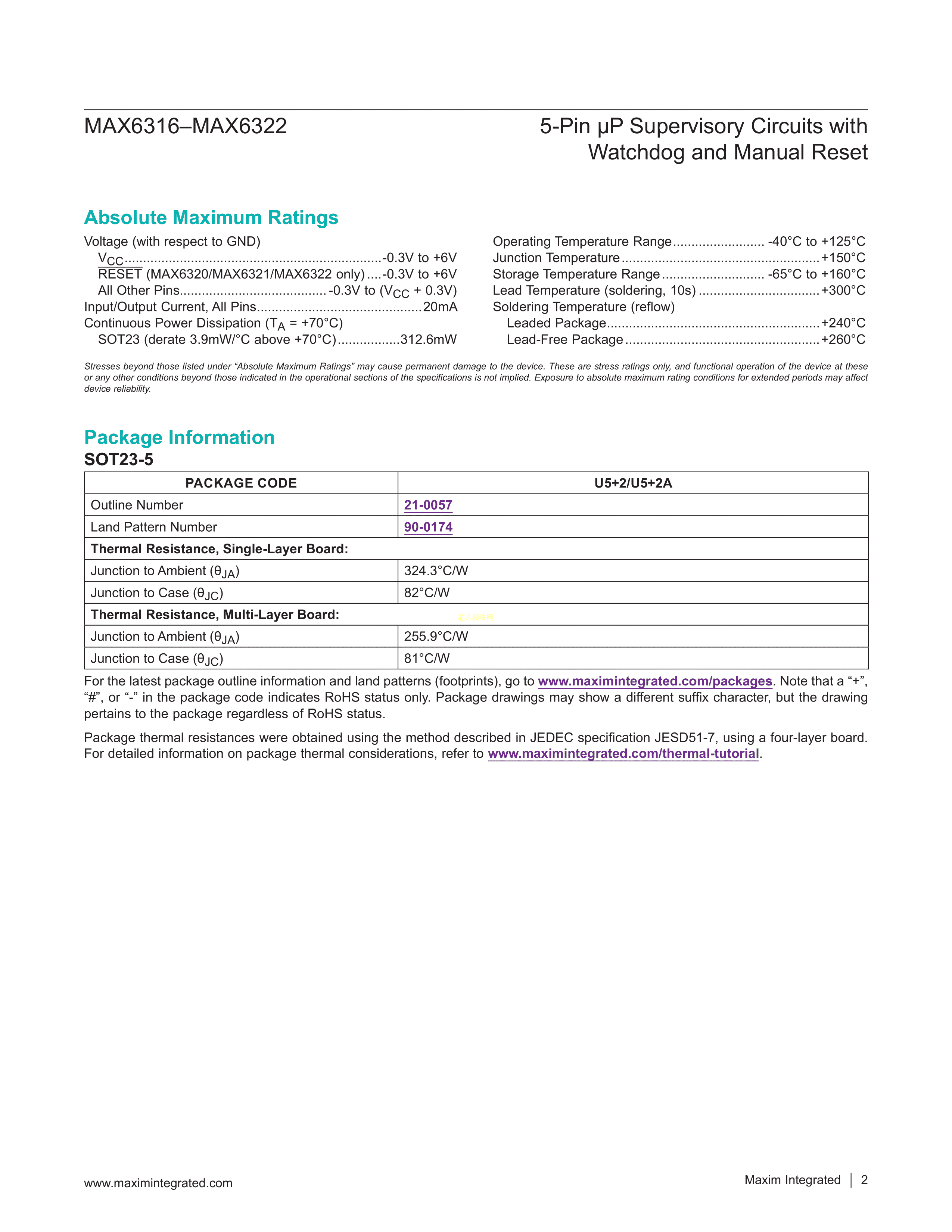 MAX6316LUK45CY+T数据手册SOT-23-5封装MAXIM(美信)PDF规格书,中英文下