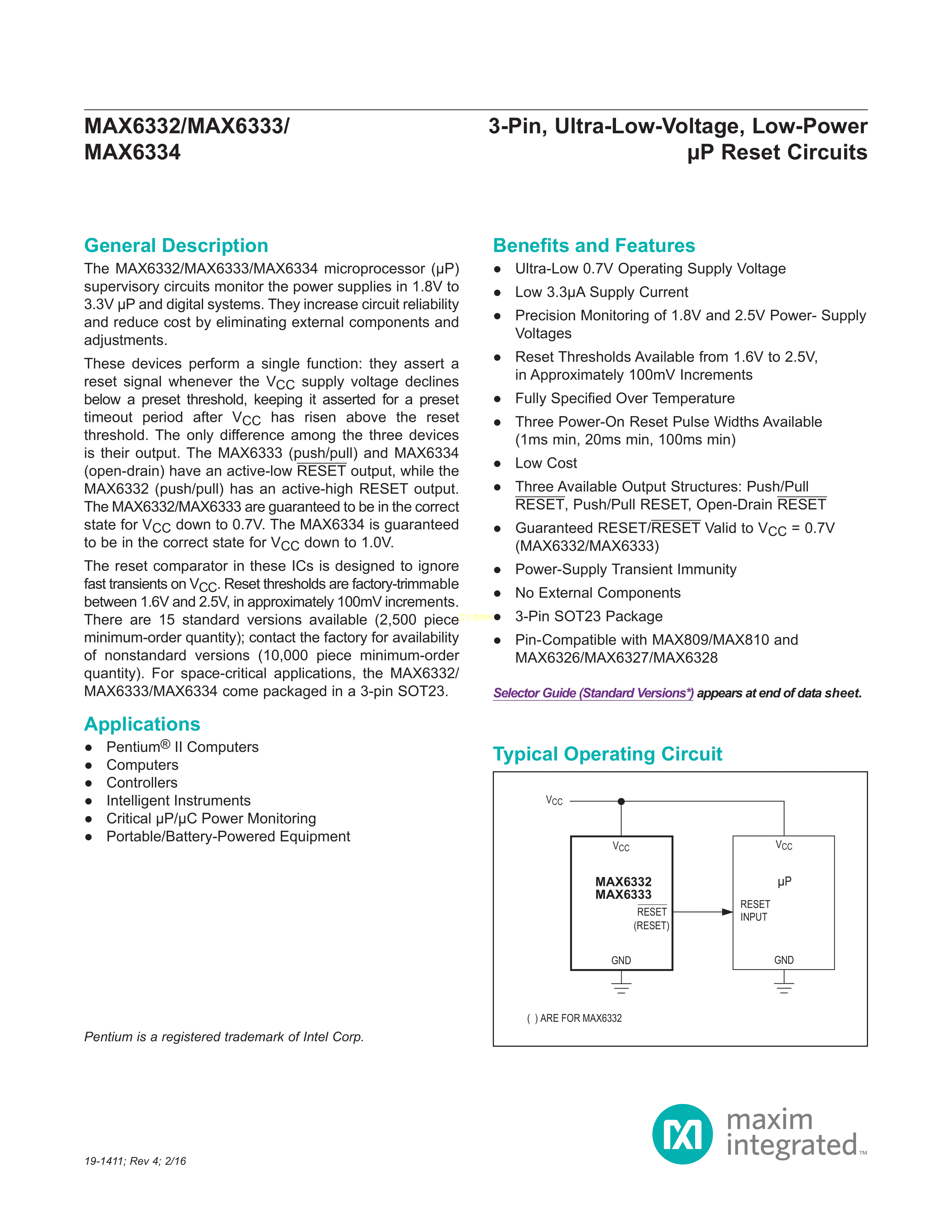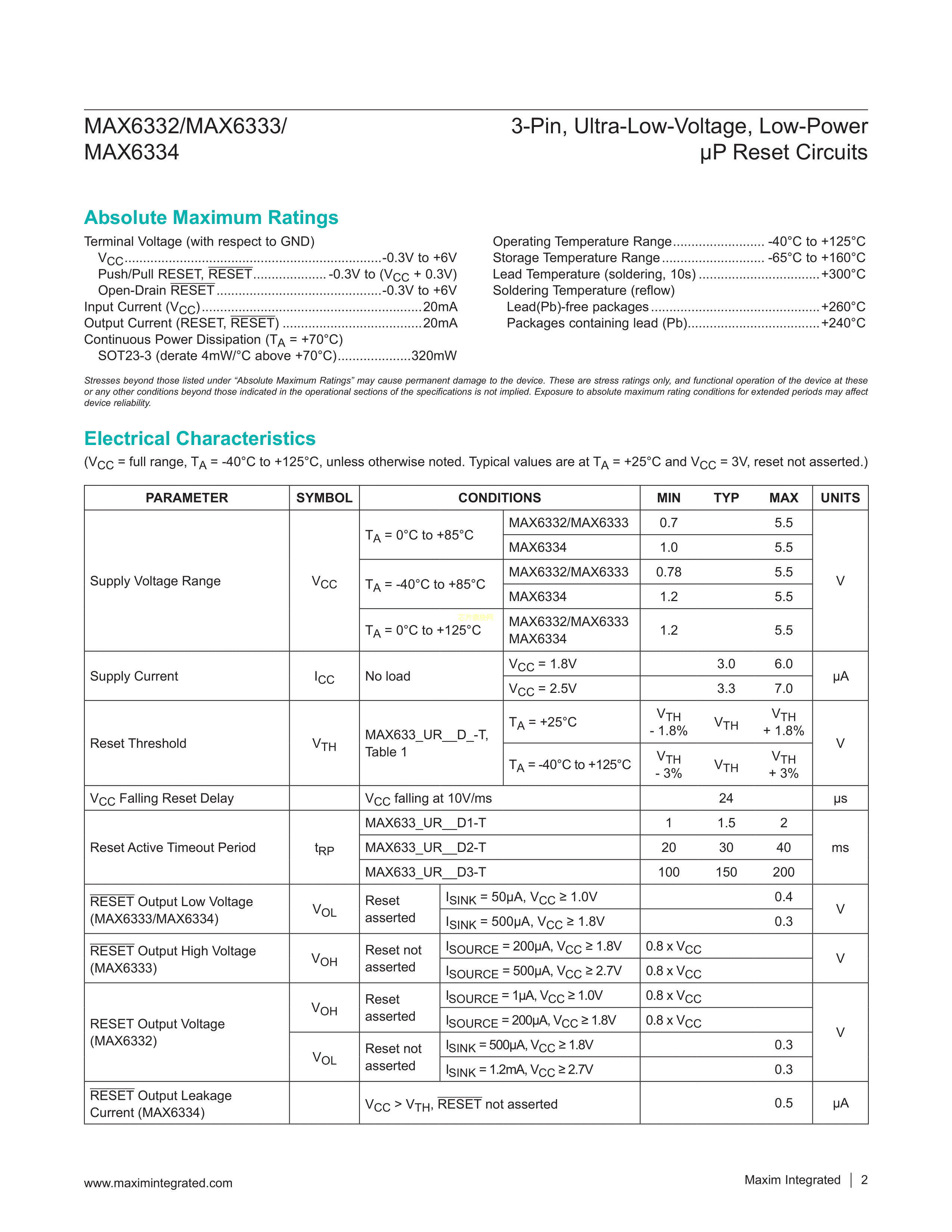 MAX6333UR23D3+T数据手册SOT-23-3封装MAXIM(美信)PDF规格书,中英文下载
