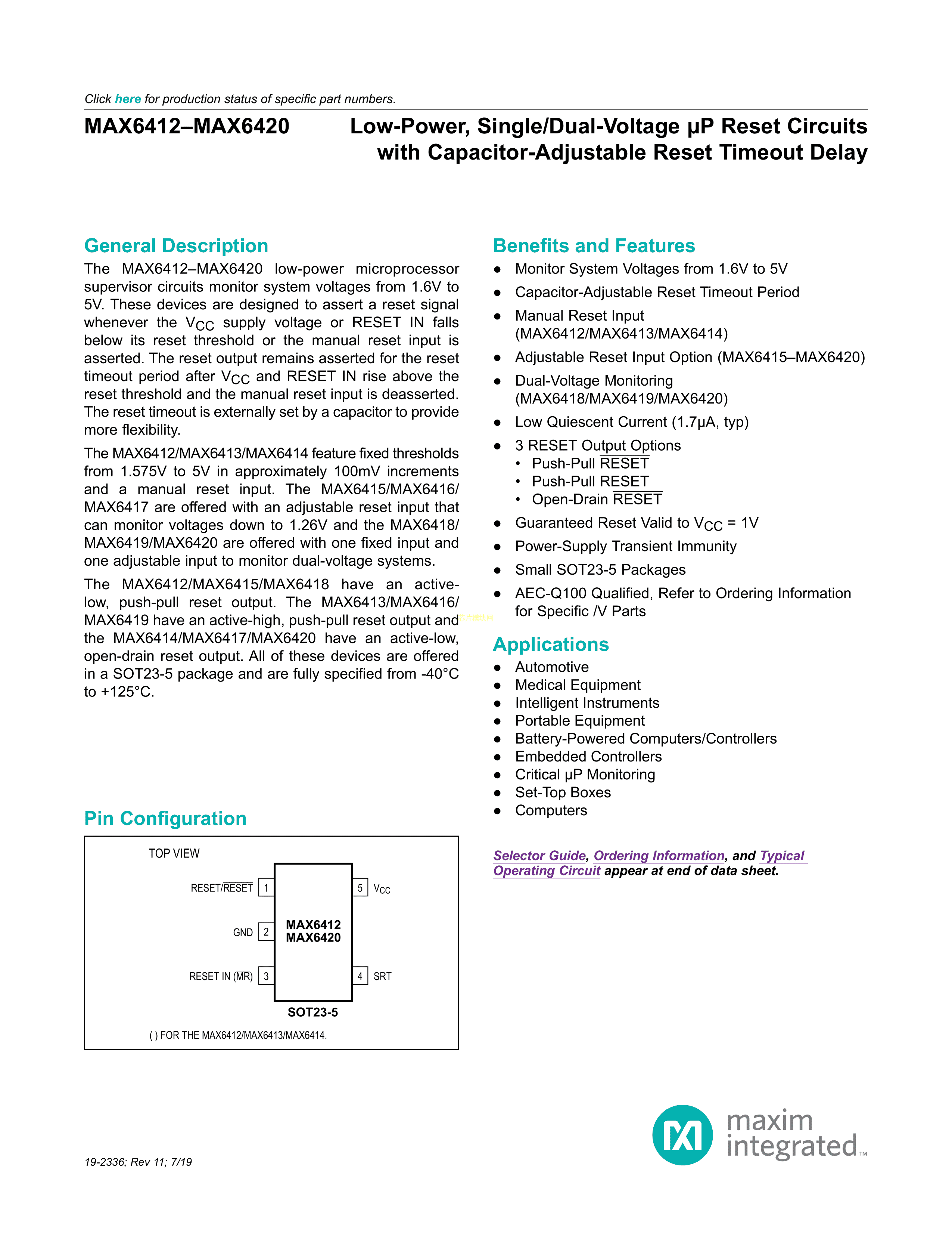 MAX6413UK26+T数据手册SOT-23-5封装MAXIM(美信)PDF规格书,中英文下载