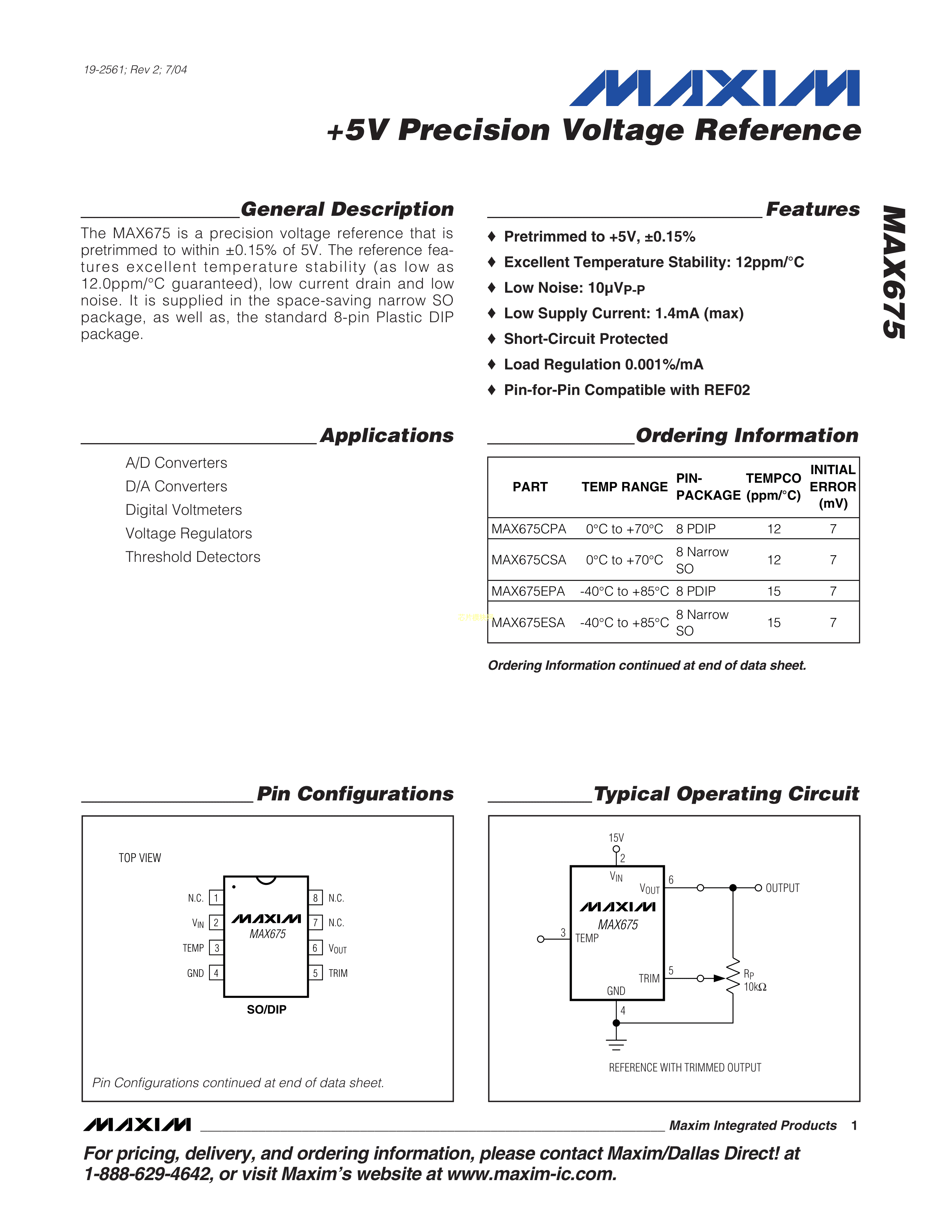 MAX675CSA+数据手册SOIC-8封装MAXIM(美信)PDF规格书,中英文下载