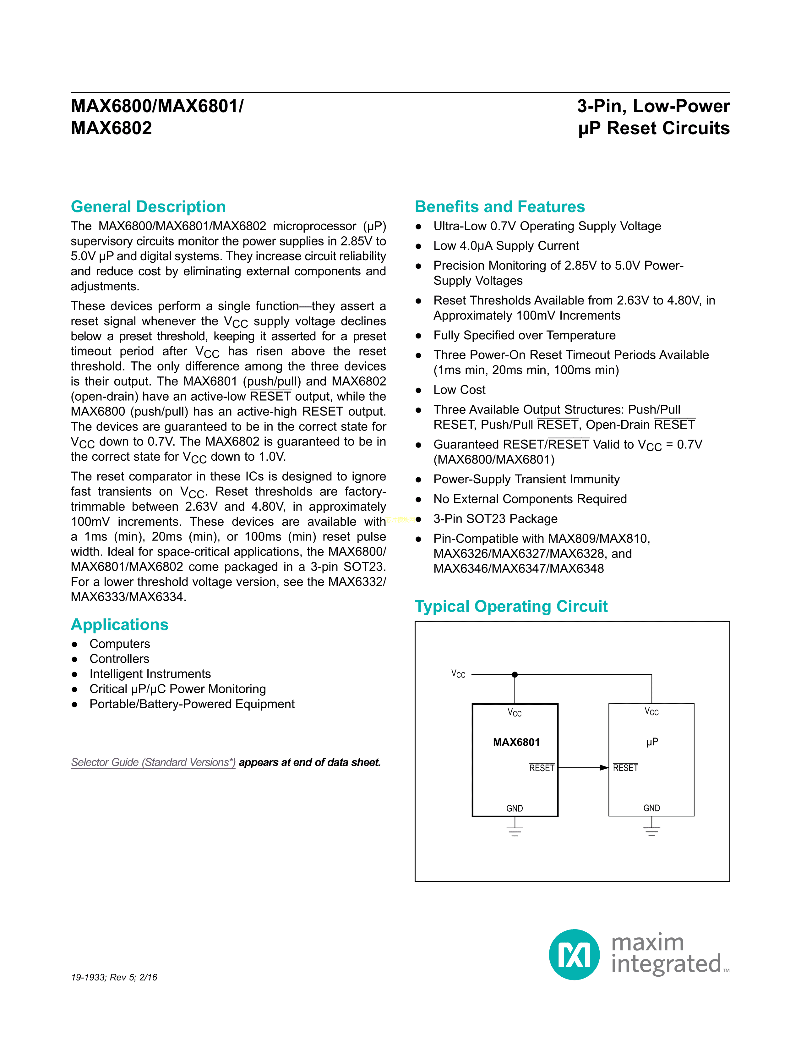 MAX6802UR44D3+T数据手册SOT-23-3封装MAXIM(美信)PDF规格书,中英文下载