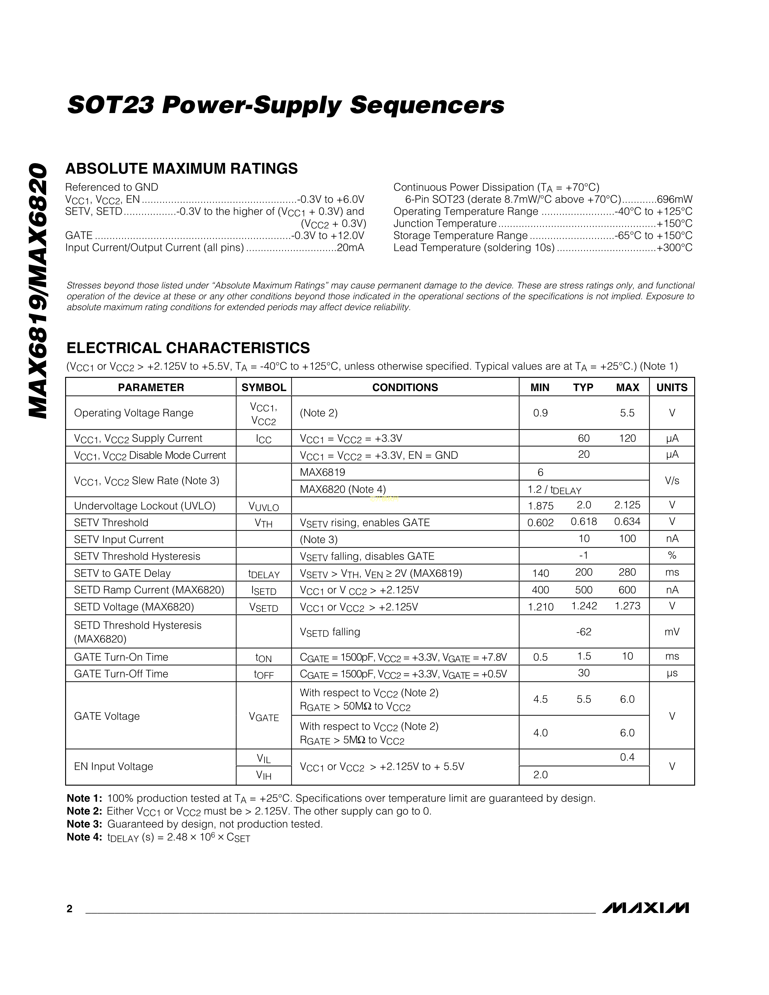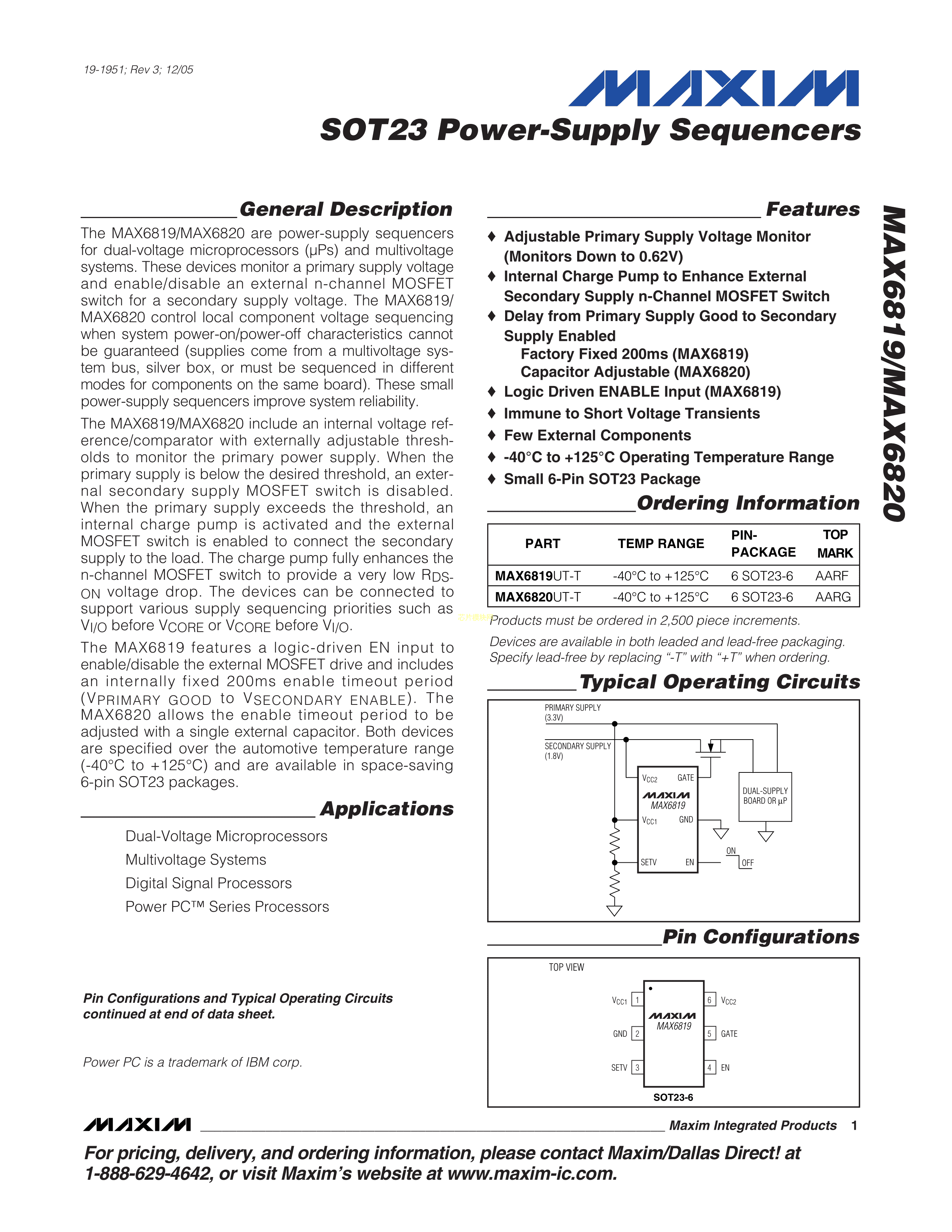 MAX6819UT+T数据手册SOT-23-6封装MAXIM(美信)PDF规格书,中英文下载