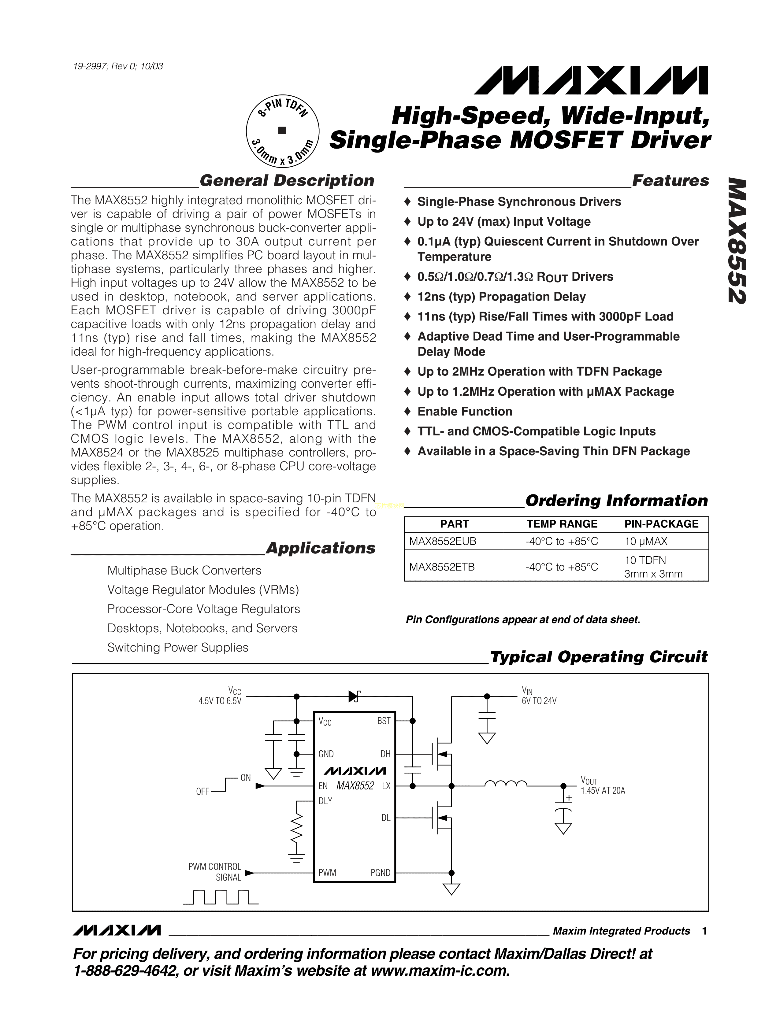 MAX8552EUB+数据手册uMAX-10封装MAXIM(美信)PDF规格书,中英文下载