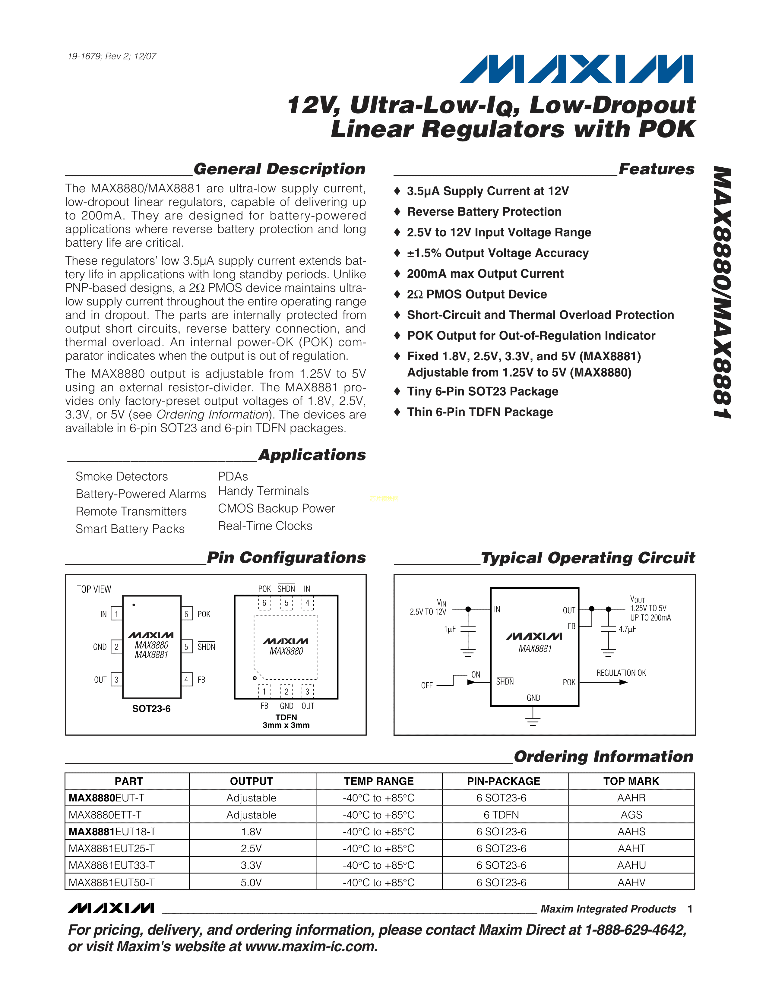MAX8880ETT+T数据手册-封装MAXIM(美信)PDF规格书,中英文下载