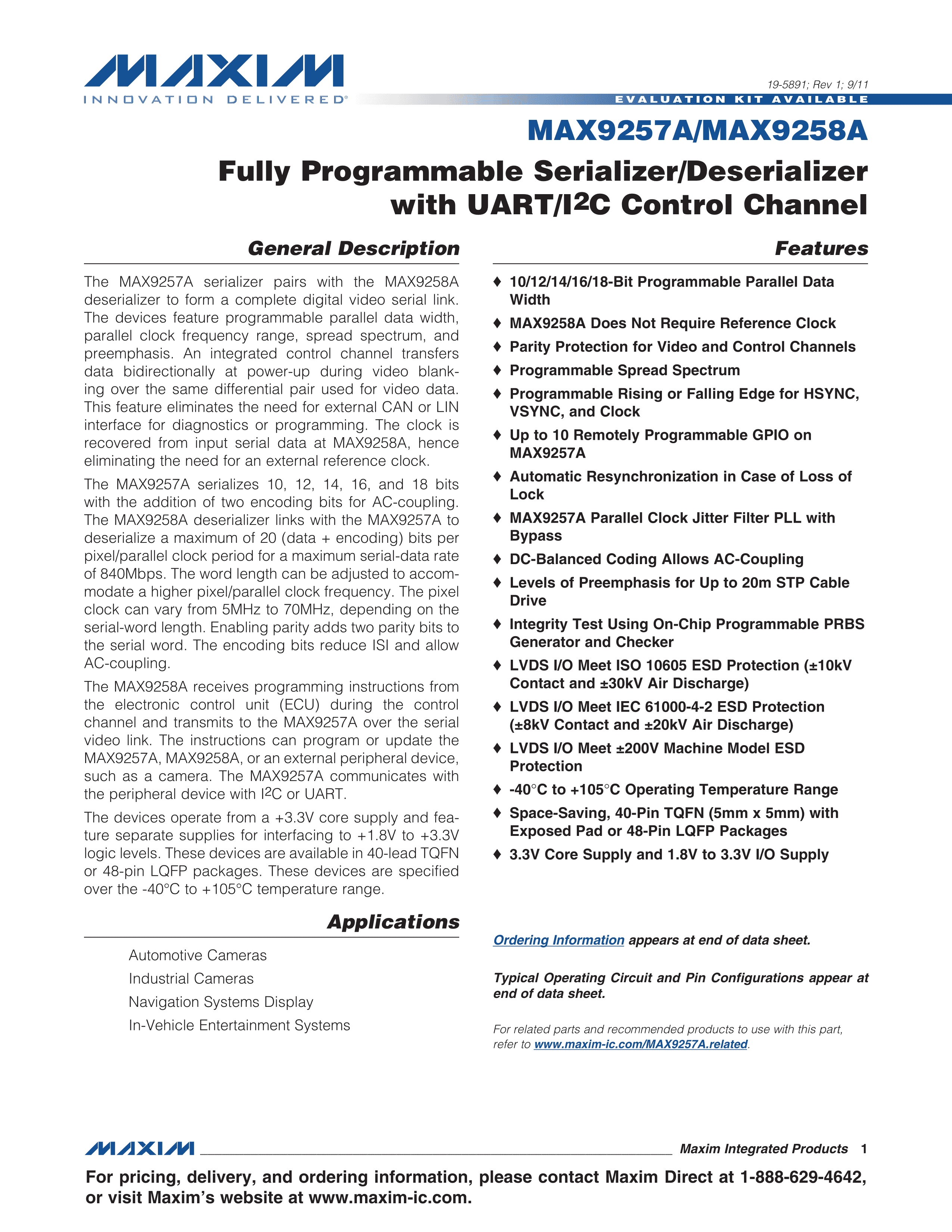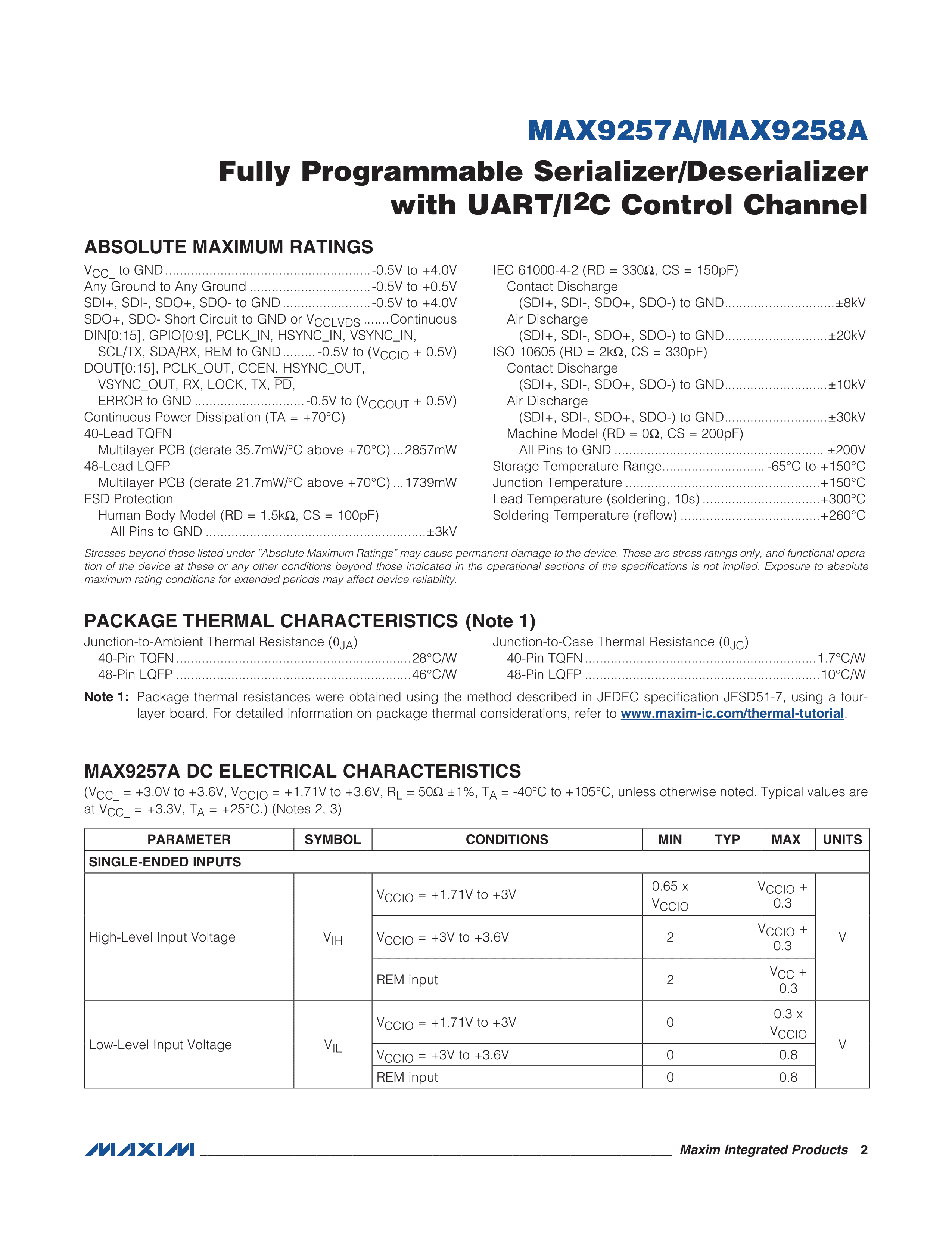 MAX9257AGCM-V+数据手册LQFP-48(7x7)封装MAXIM(美信)PDF规格书,中英