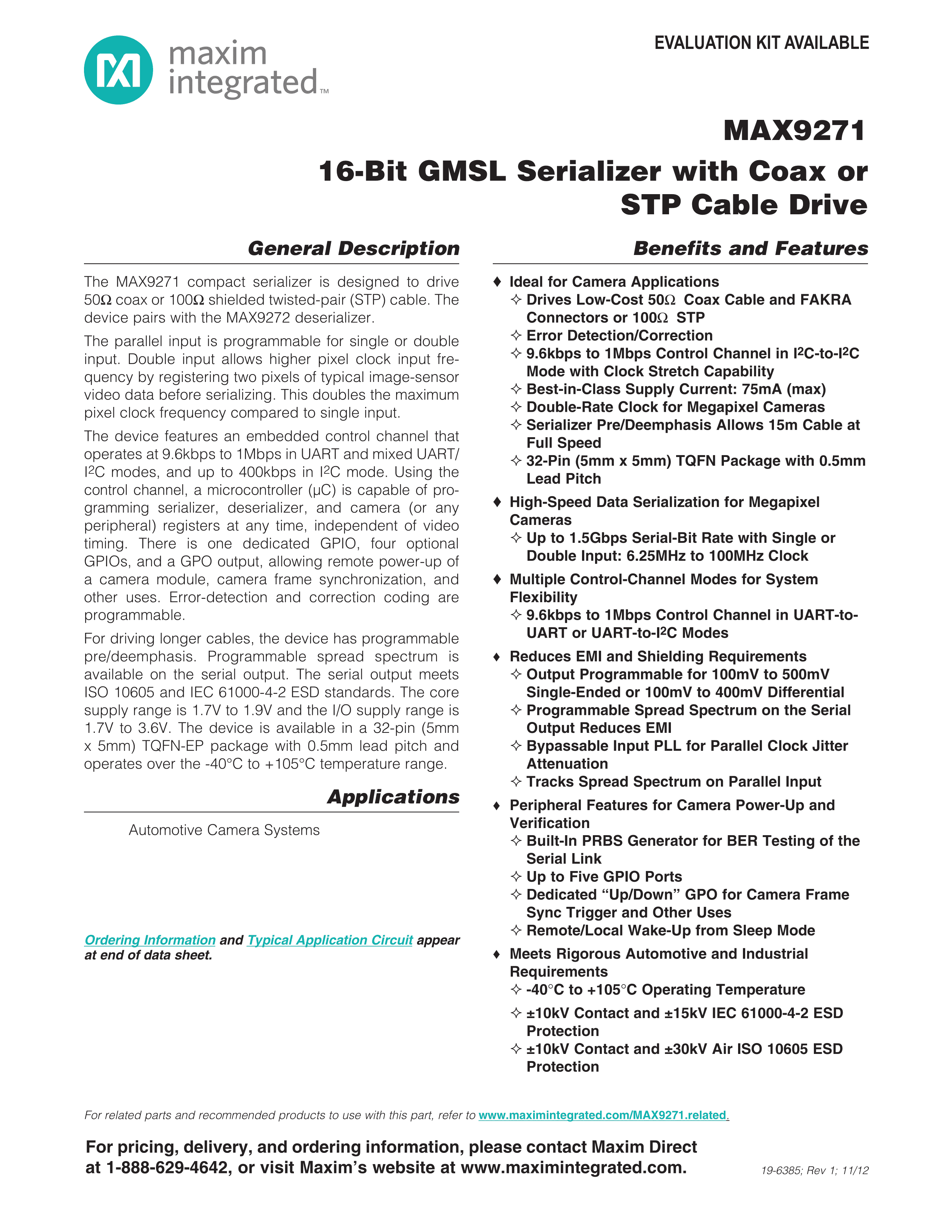 MAX9271GTJ+T数据手册TQFN-32封装MAXIM(美信)PDF规格书,中英文下载