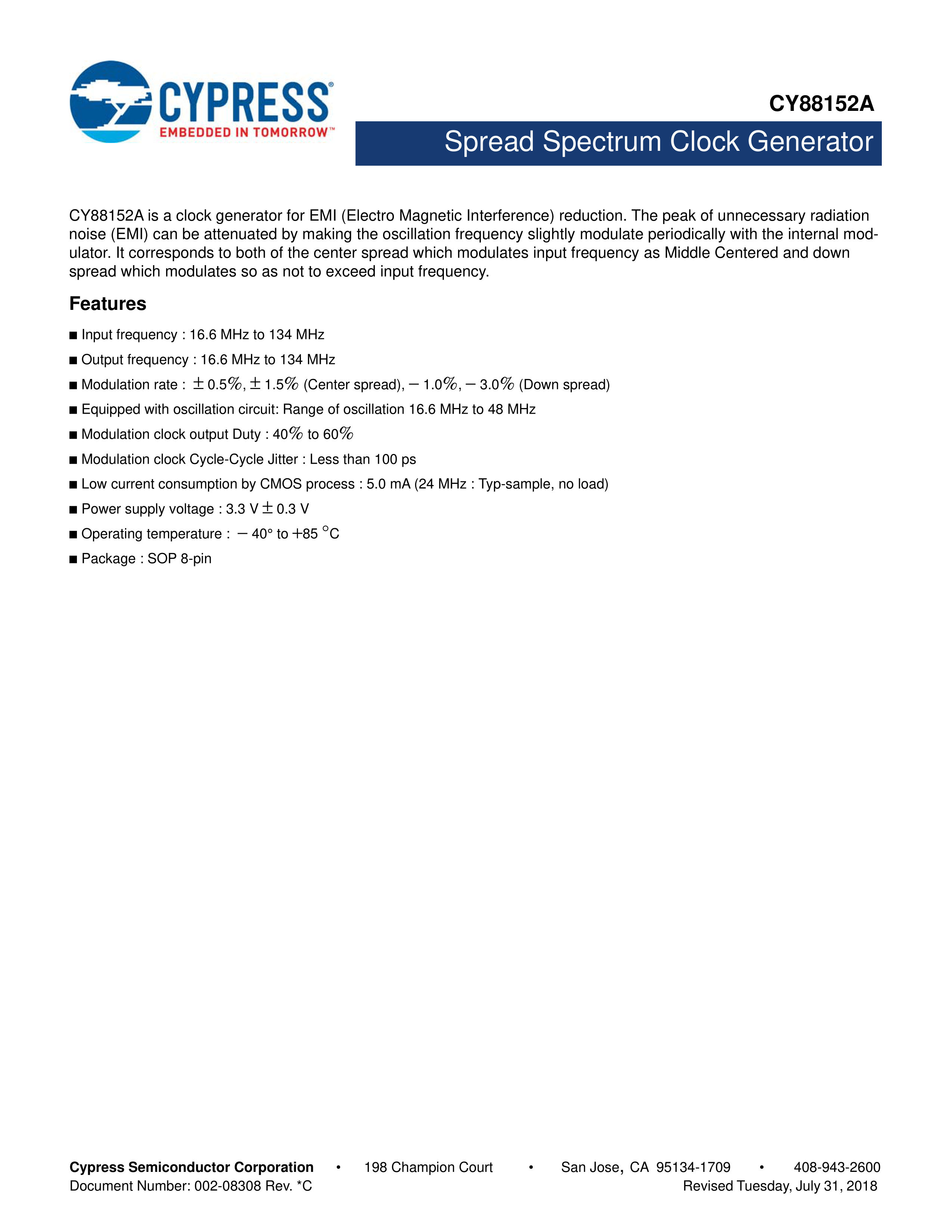 MB88152APNF-G-100-JNEFE1数据手册SOP-8封装SPANSION(飞索)PDF