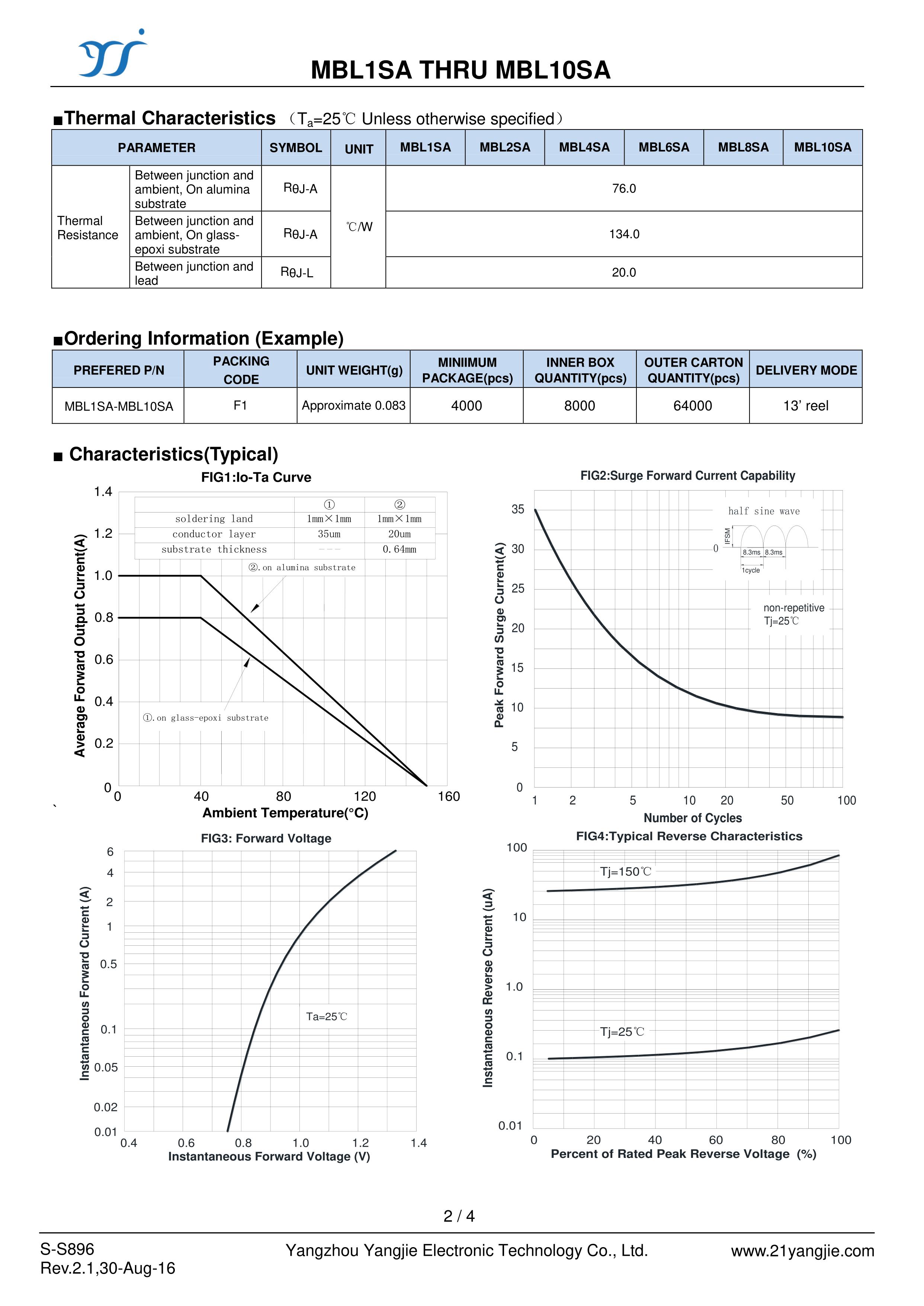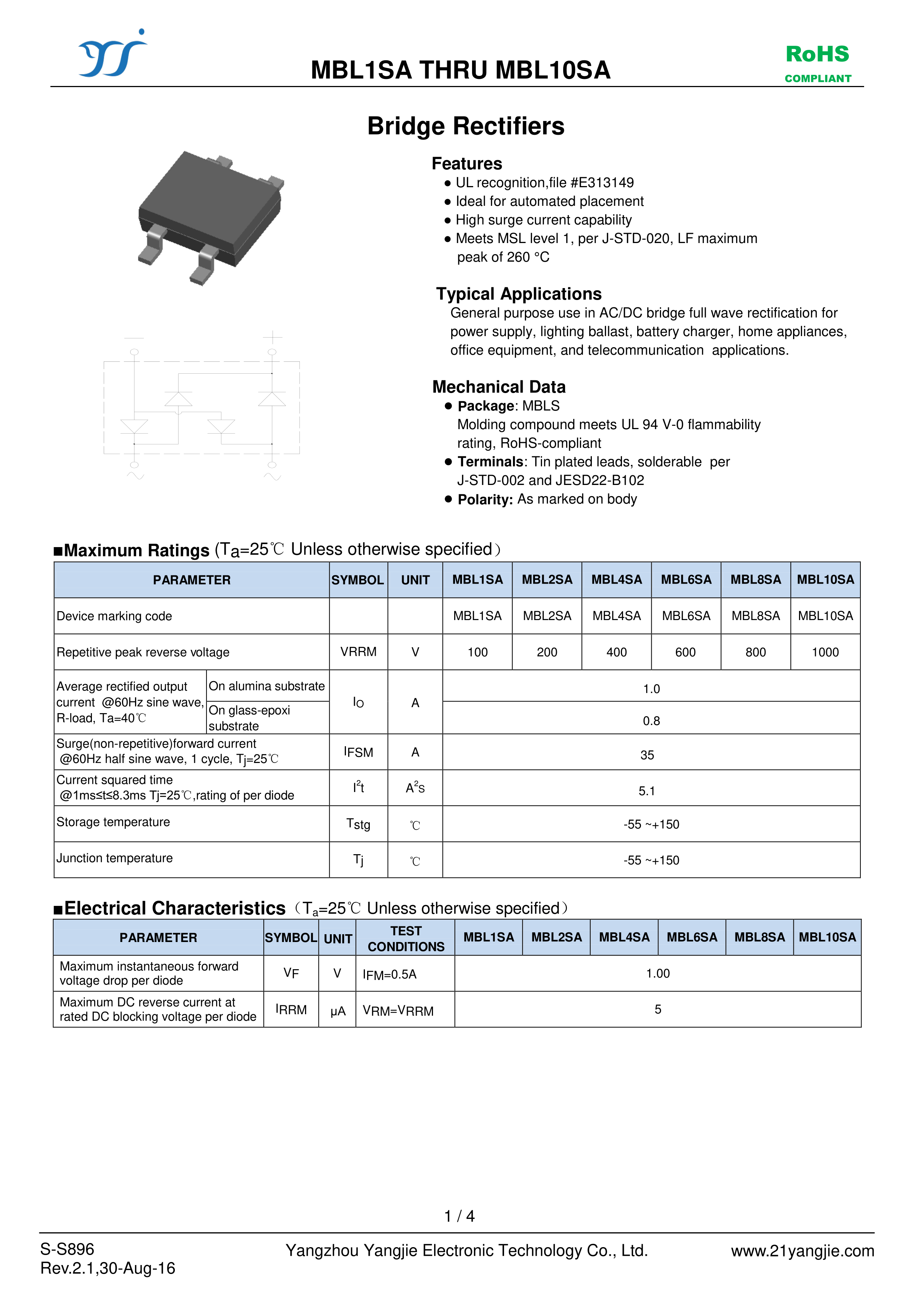 MBL10SA数据手册MBLS封装YANGJIE(扬杰)PDF规格书,中英文下载
