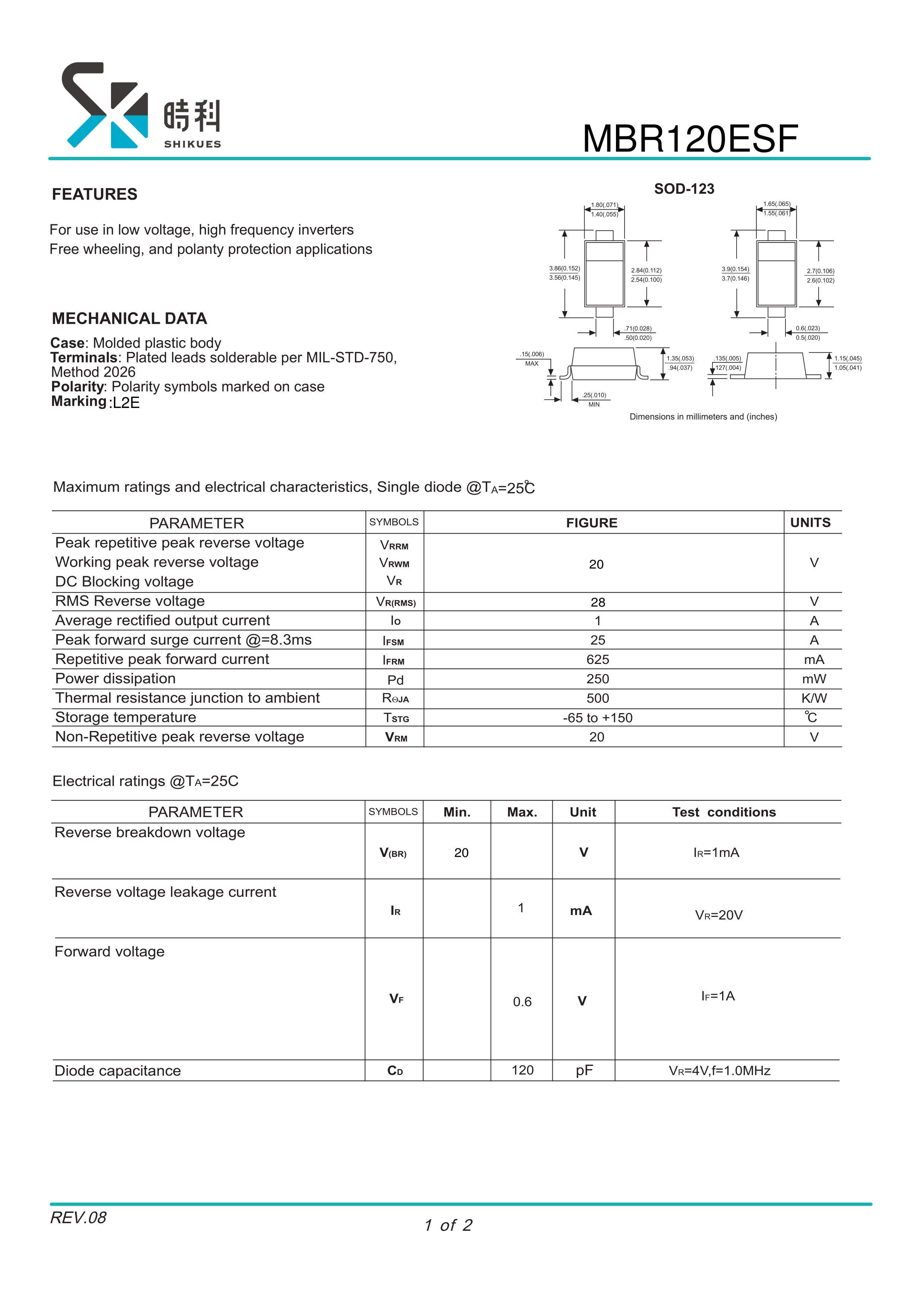MBR120ESF数据手册SOD-123封装SHIKUES(时科)PDF规格书,中英文下载