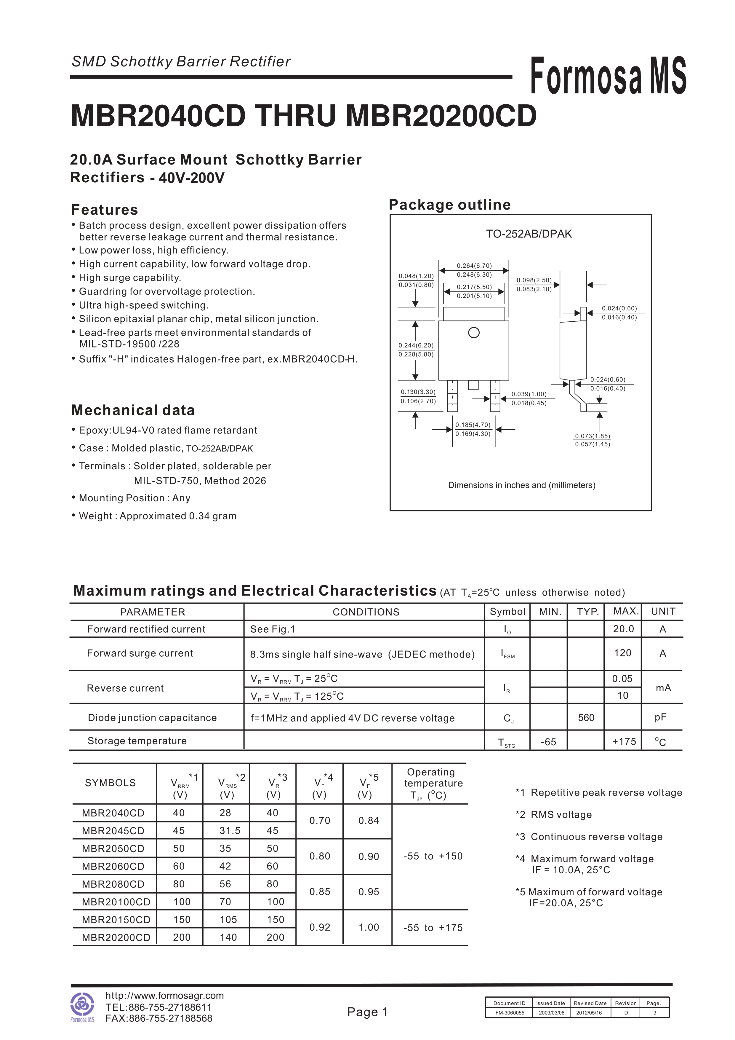 MBR20100CD数据手册TO-252AB封装AnBon(台湾安邦)PDF规格书,中英文下载
