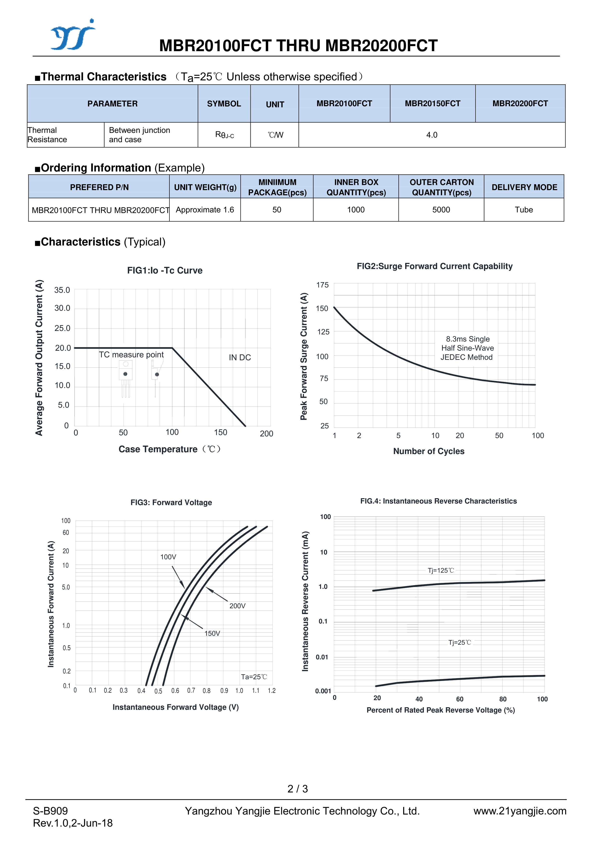 MBR20200FCT数据手册ITO-220AB封装YANGJIE(扬杰)PDF规格书,中英文下载